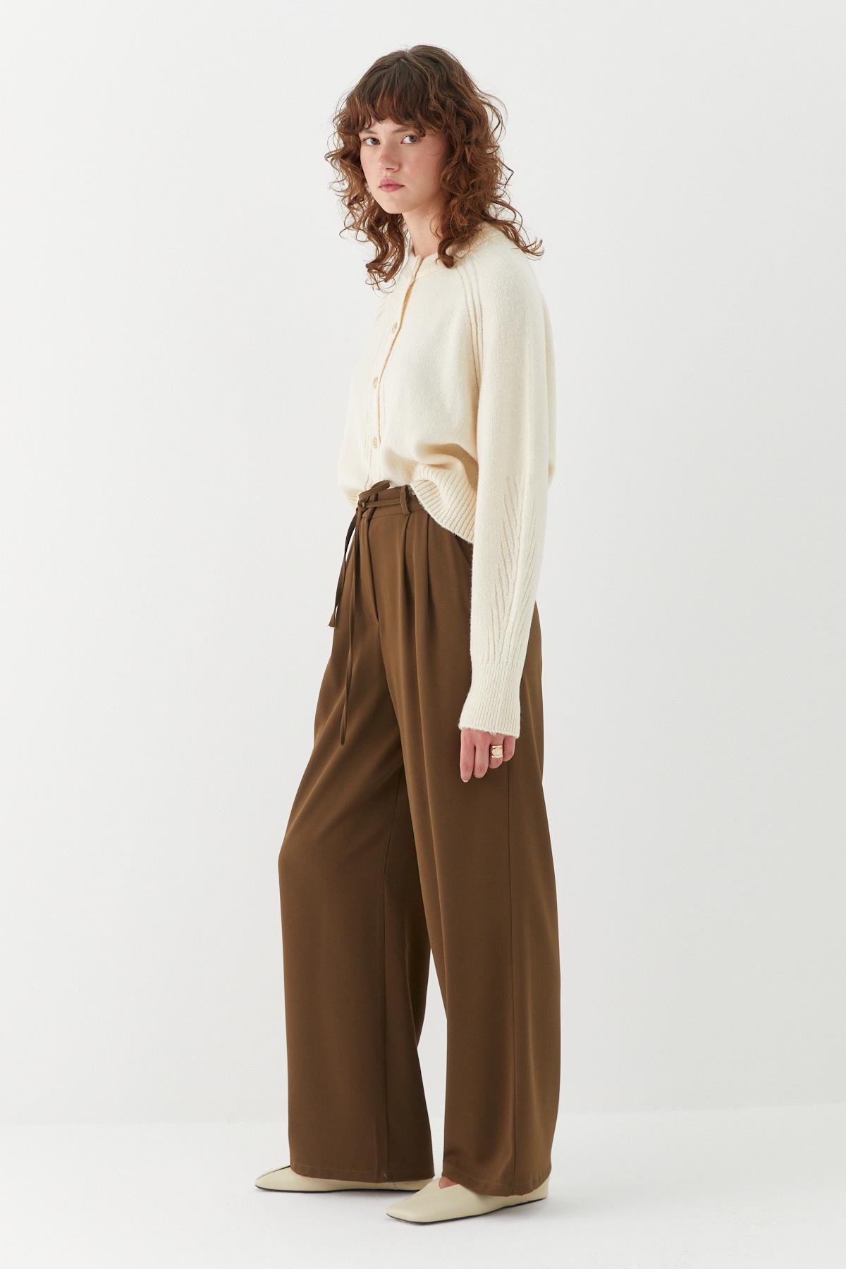 Bağcıklı Palazzo Pantolon Haki (EL3709_020)