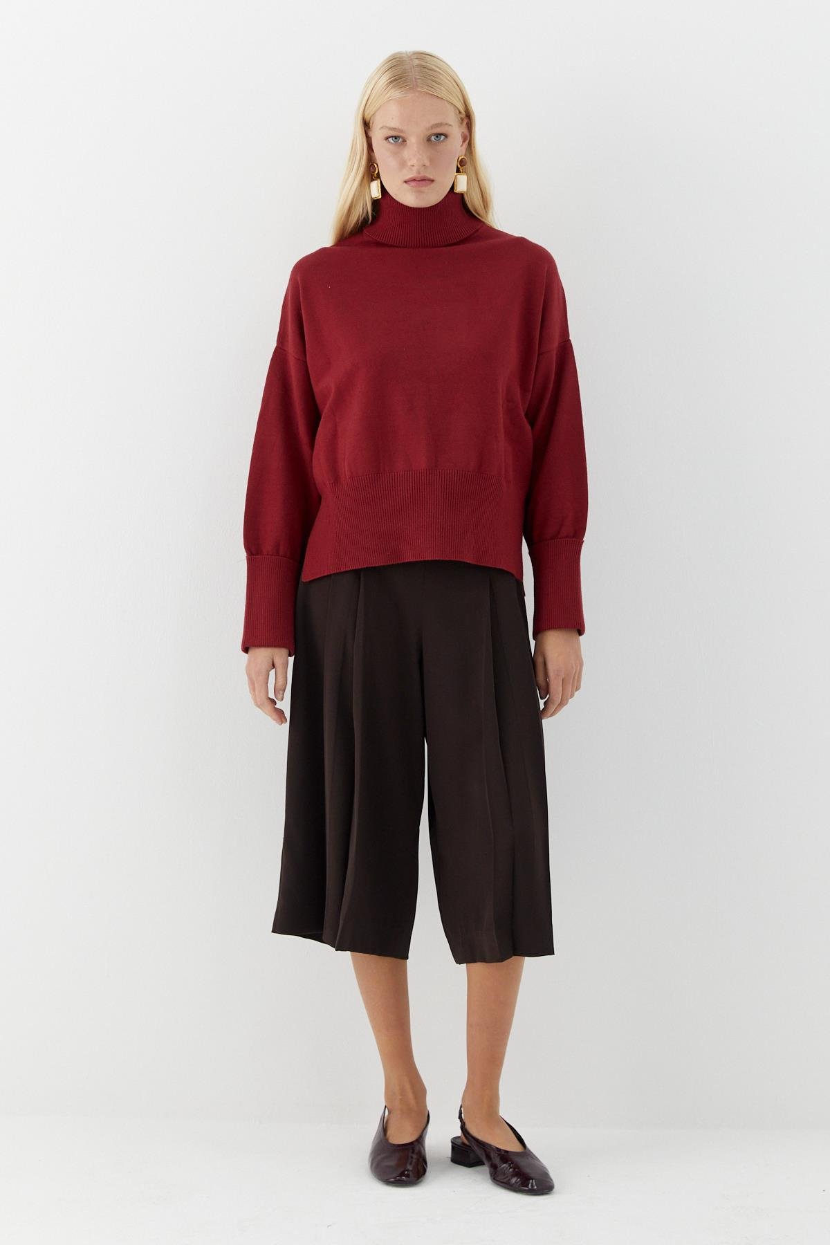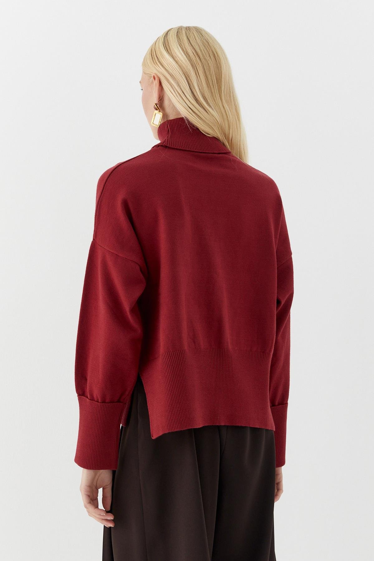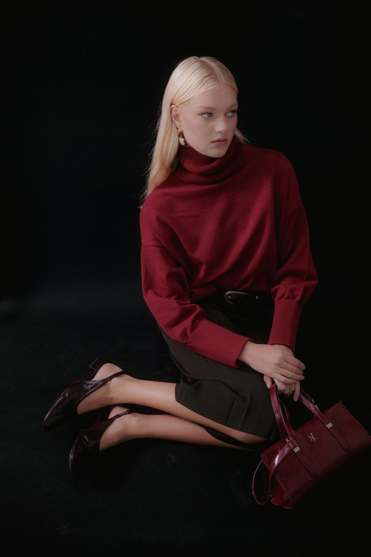 Balıkçı Yaka Oversize Triko Kazak Bordo (MLAW25KZK0012_033)