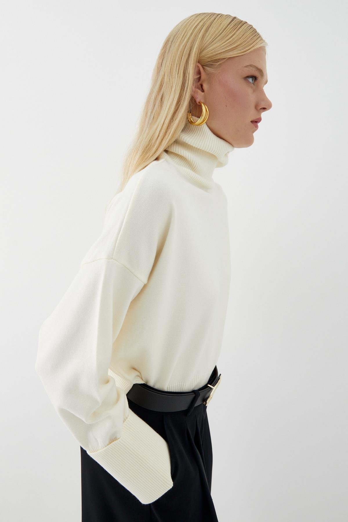 Balıkçı Yaka Oversize Triko Kazak Ekru (MLAW25KZK0012_019)