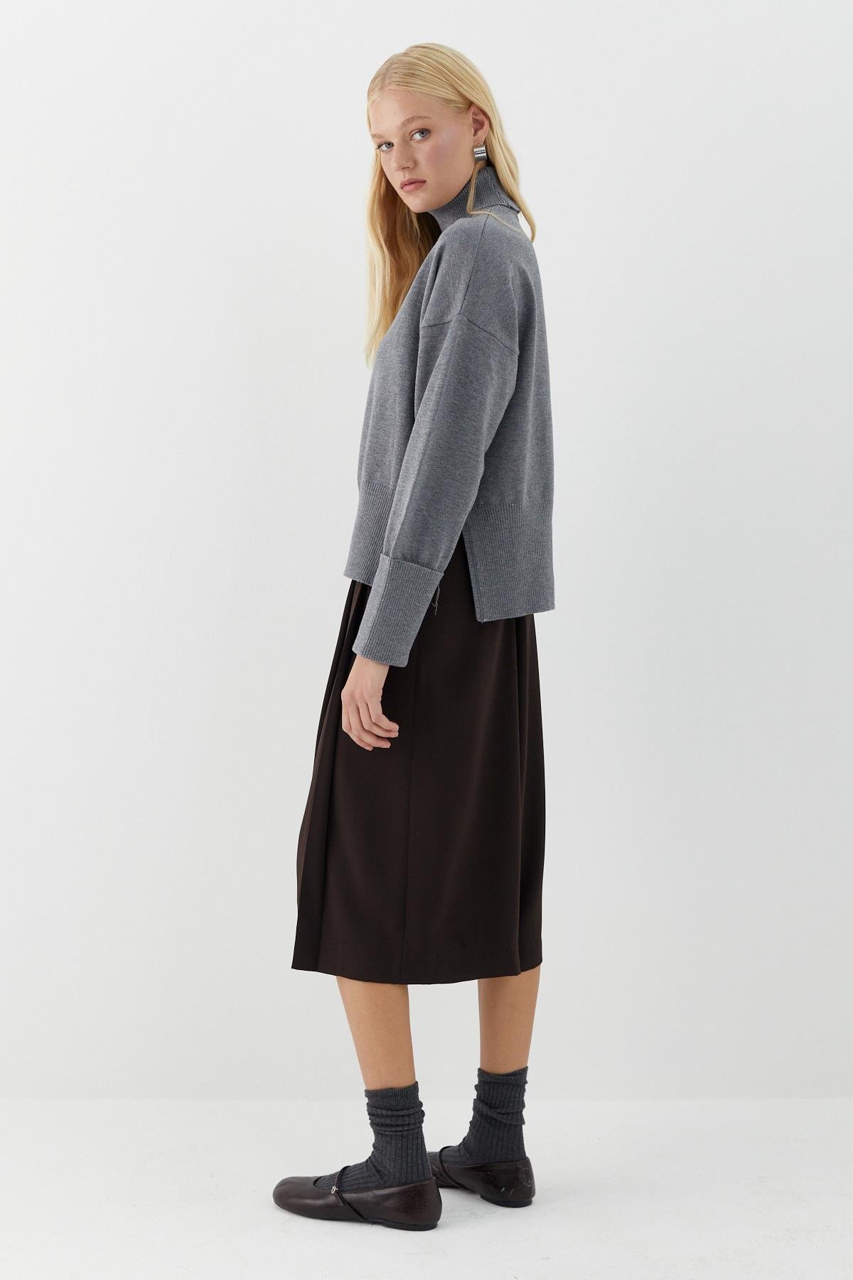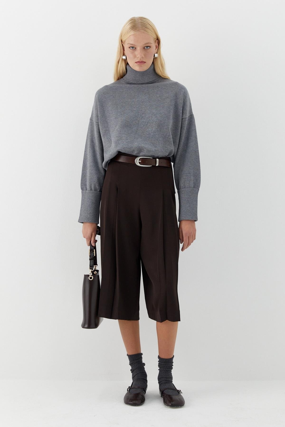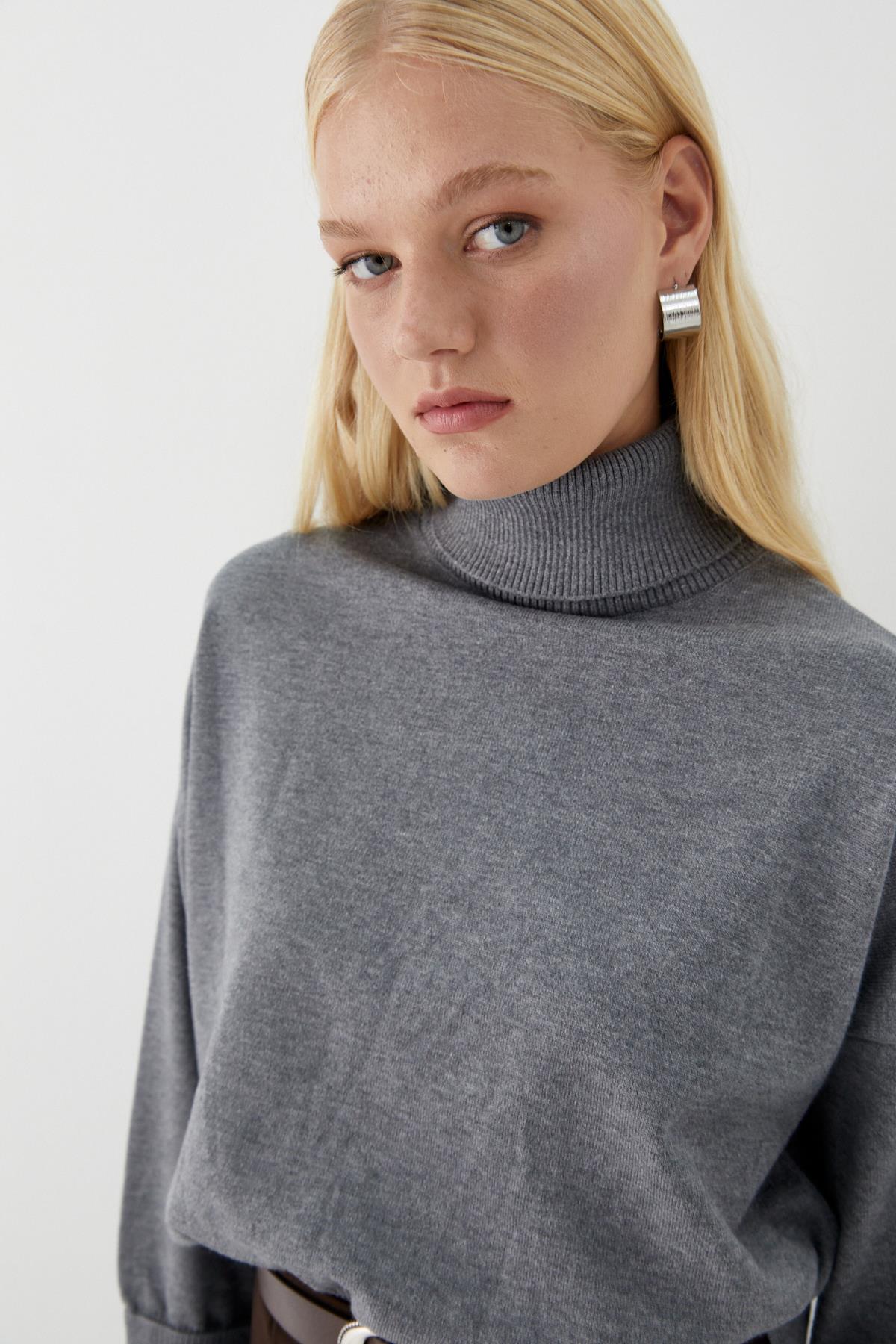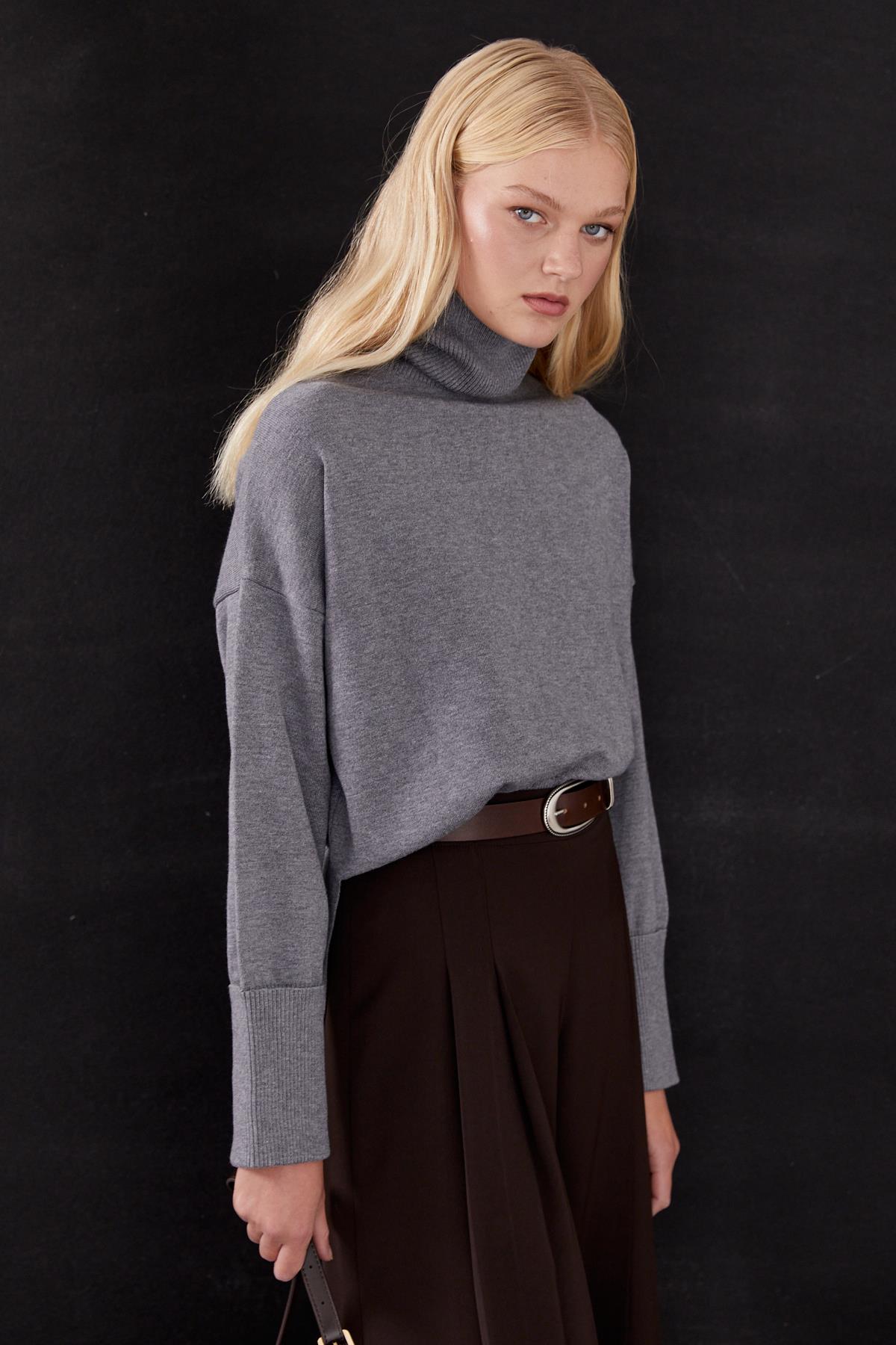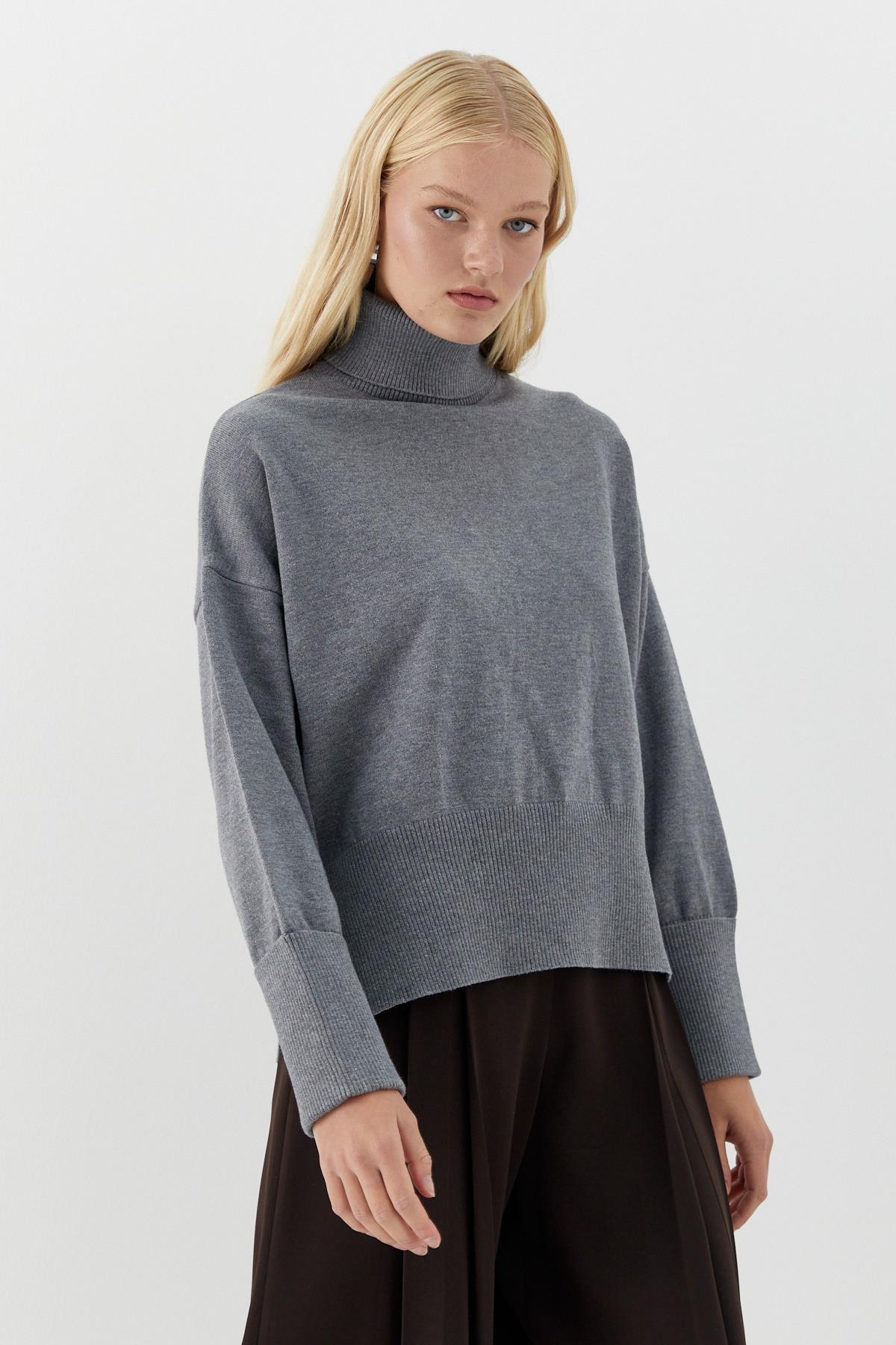 Balıkçı Yaka Oversize Triko Kazak Gri (MLAW25KZK0012_006)