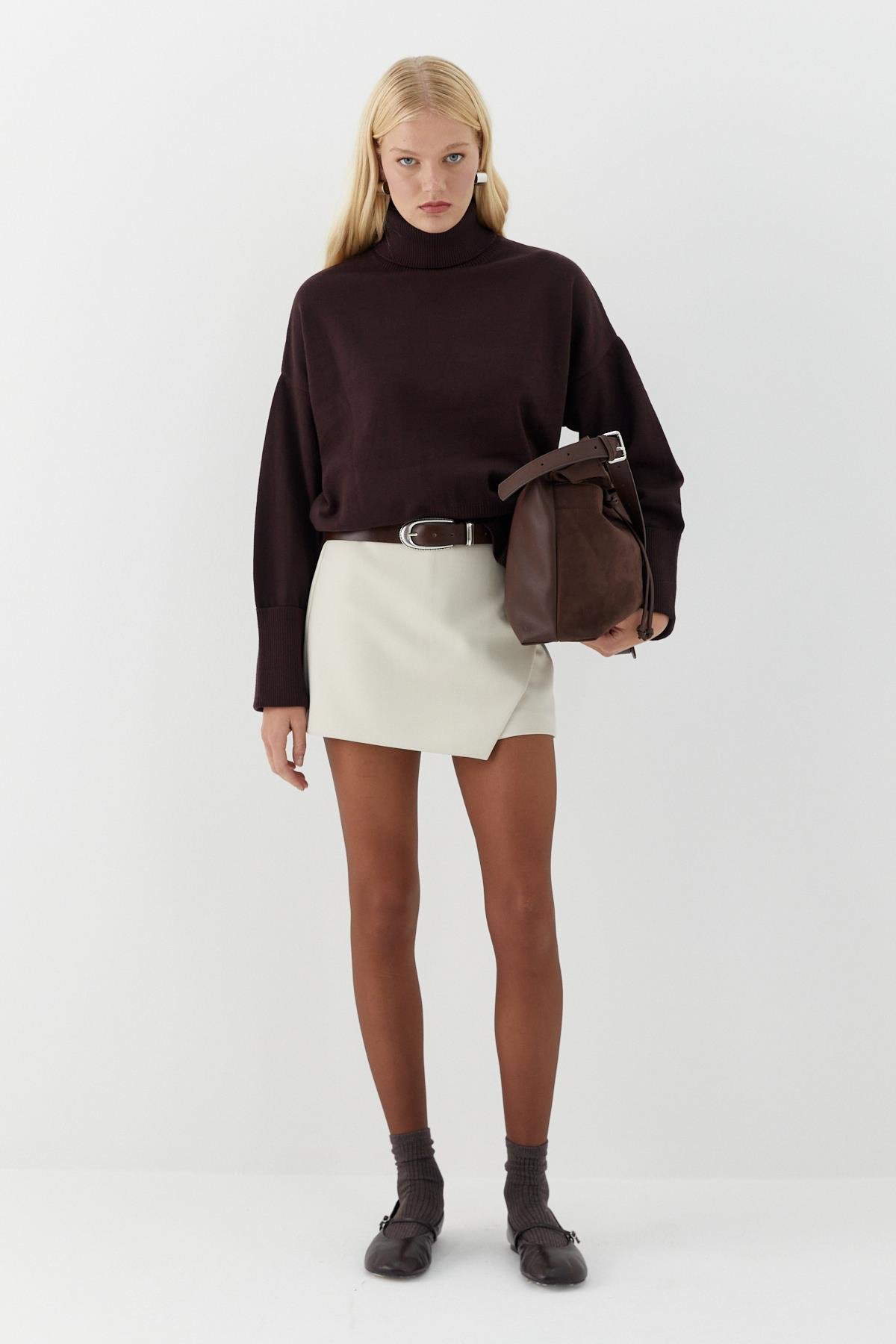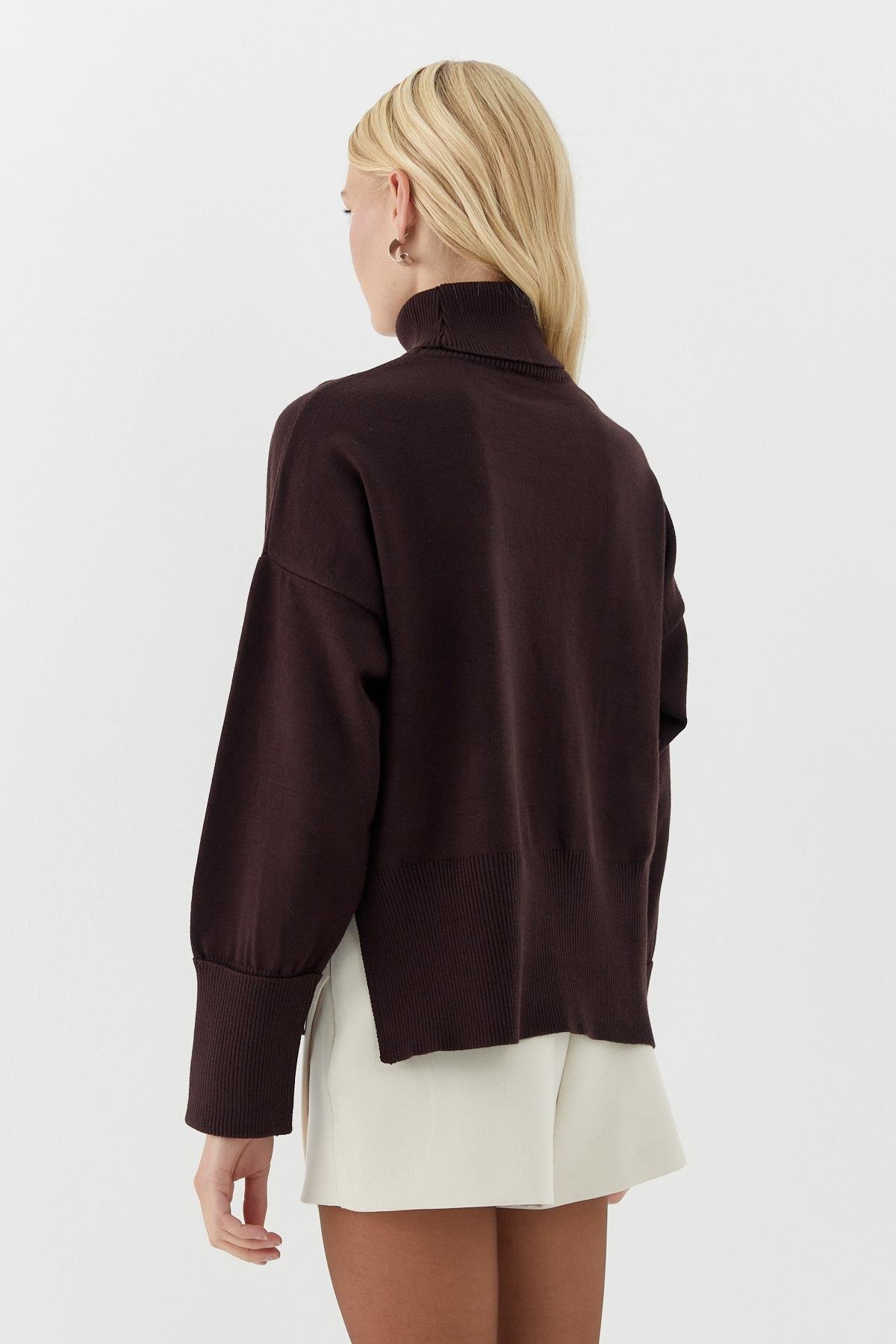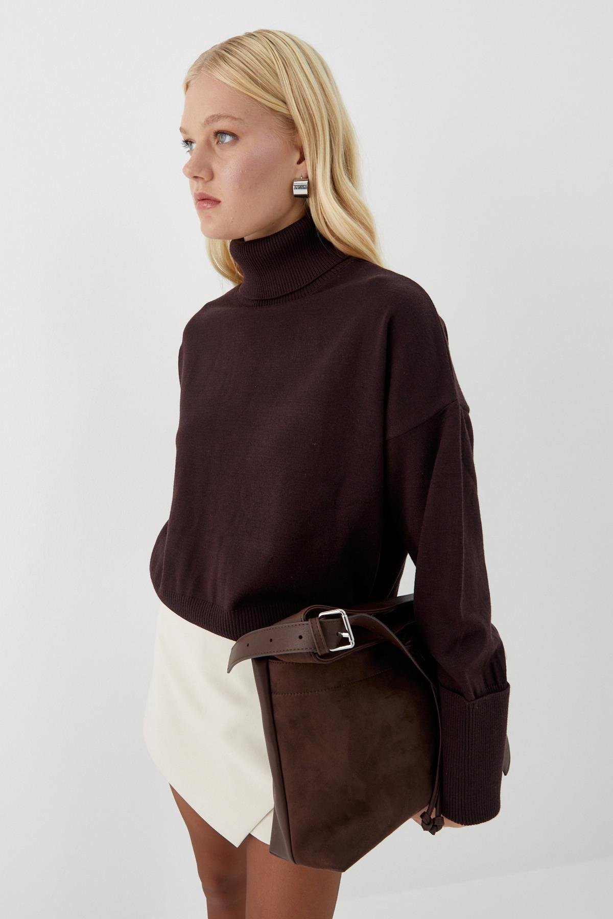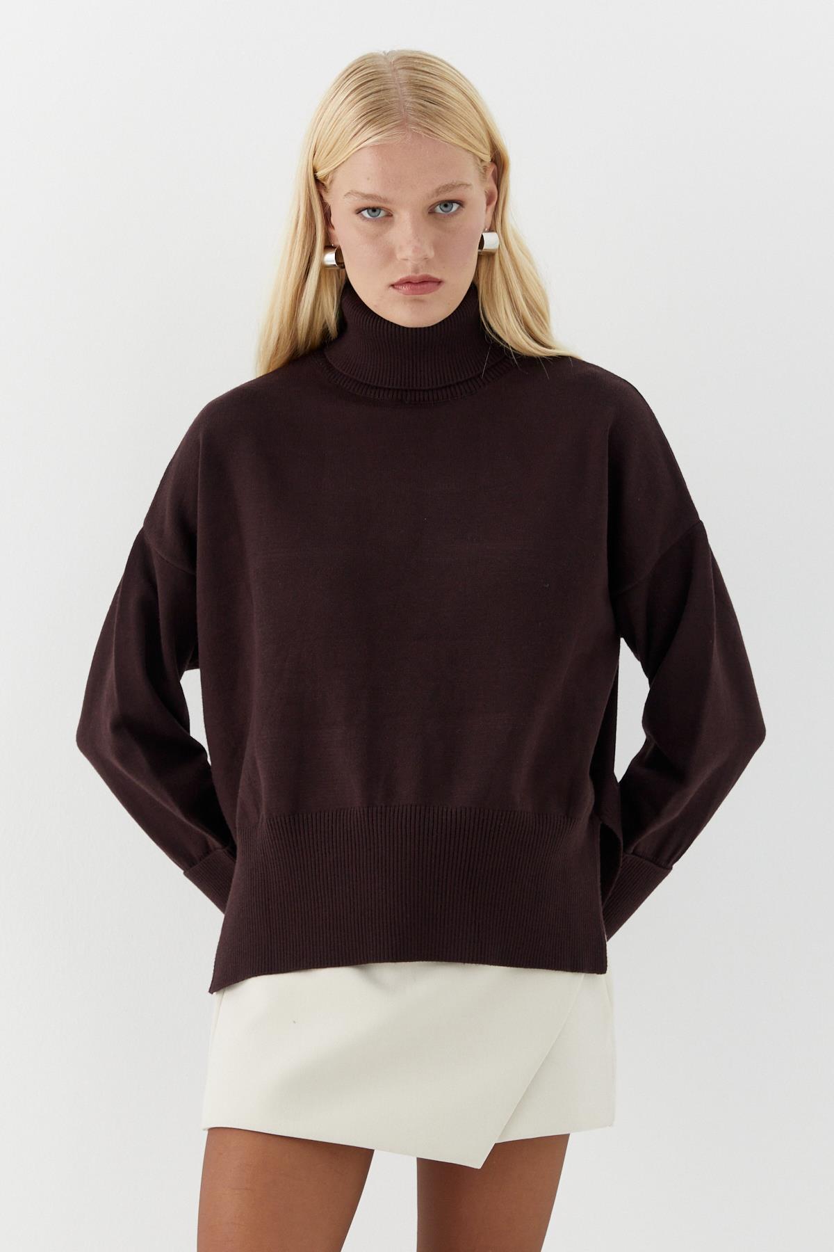 Balıkçı Yaka Oversize Triko Kazak Kahverengi (MLAW25KZK0012_022)