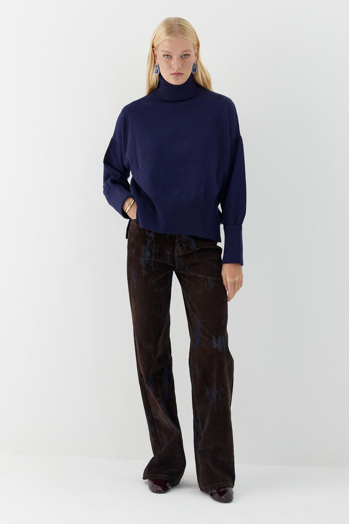 Balıkçı Yaka Oversize Triko Kazak Lacivert (MLAW25KZK0012_023)