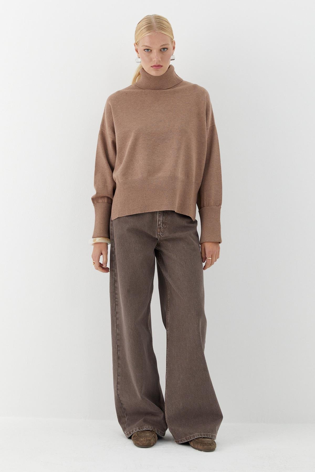 Balıkçı Yaka Oversize Triko Kazak Vizon (MLAW25KZK0012_012)