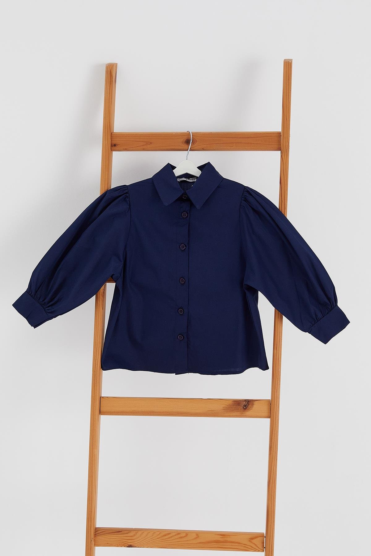 Balon Kol Çocuk Poplin Gömlek Lacivert (MLK006_023)