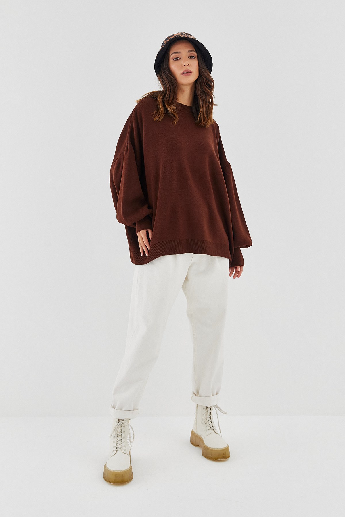 Balon Kol Triko Kazak Acı Kahve (ML1012_056)