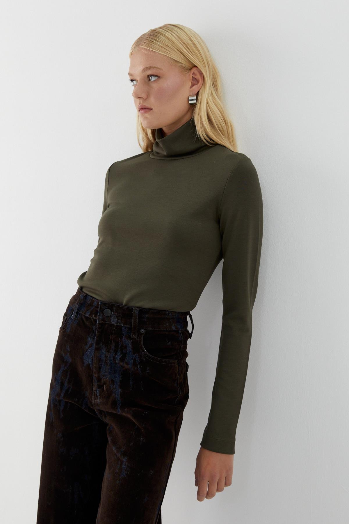 Balıkçı Yaka Uzun Kollu Body Haki (BGN0267_020)