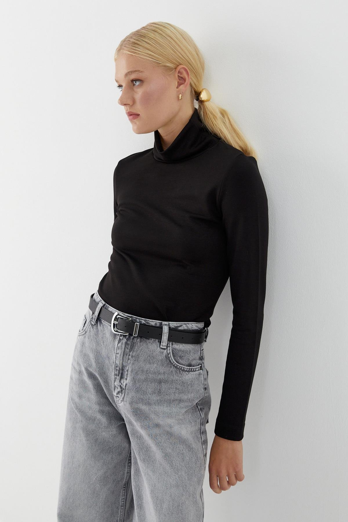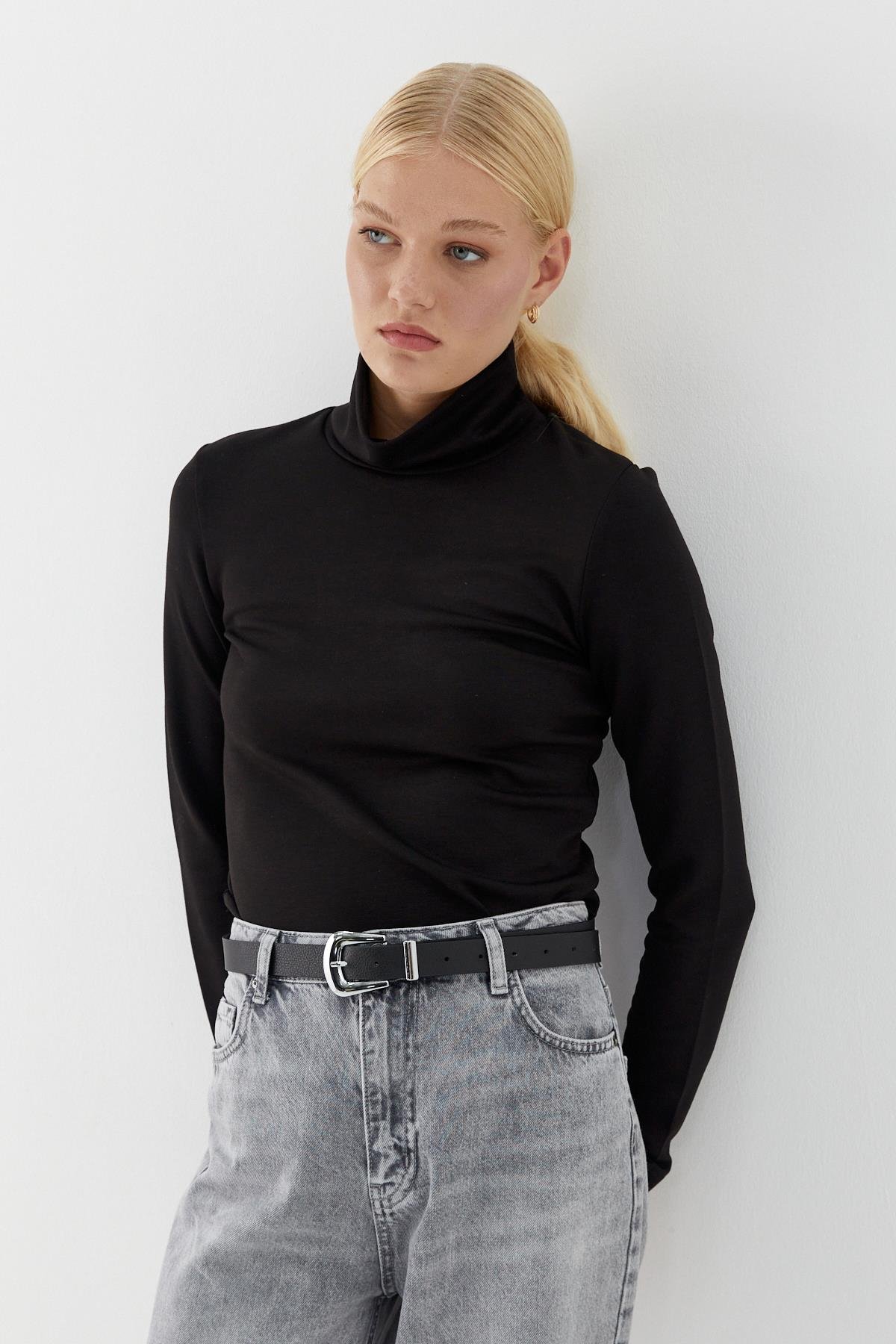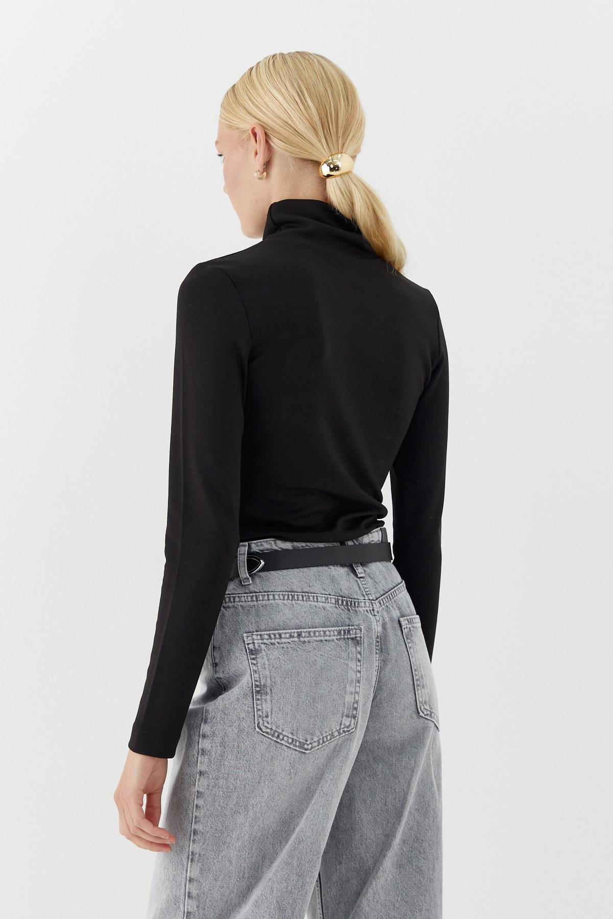 Balıkçı Yaka Uzun Kollu Body Siyah (BGN0267_001)