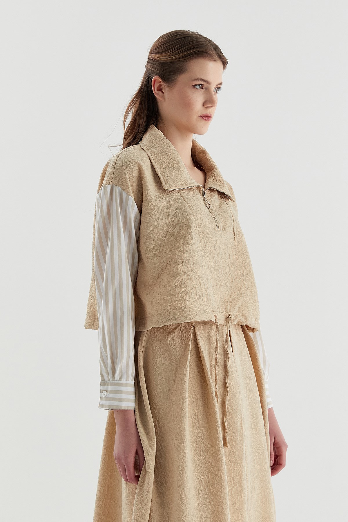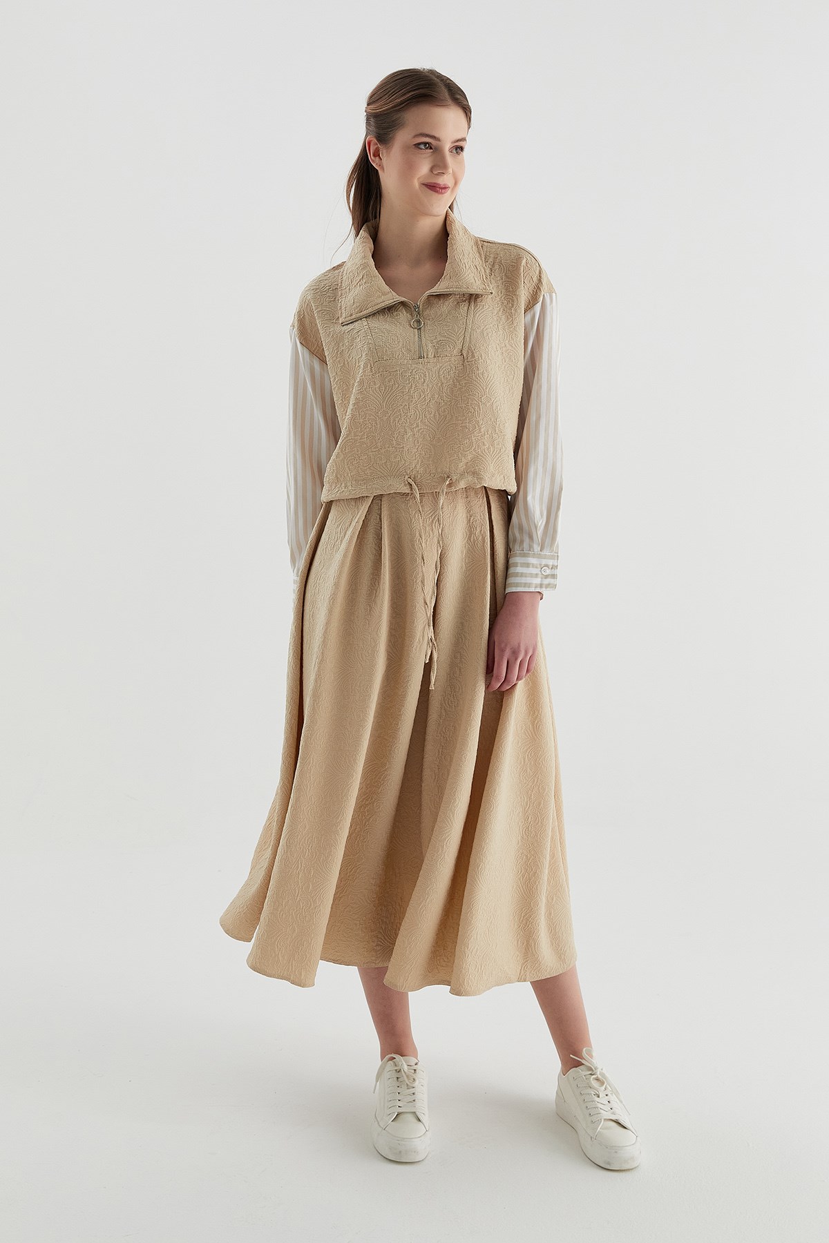 Mankenin üzerindeki 1 numara (S-36) bedendir. Boy:51cm Göğüs:57cm Kol:50cm