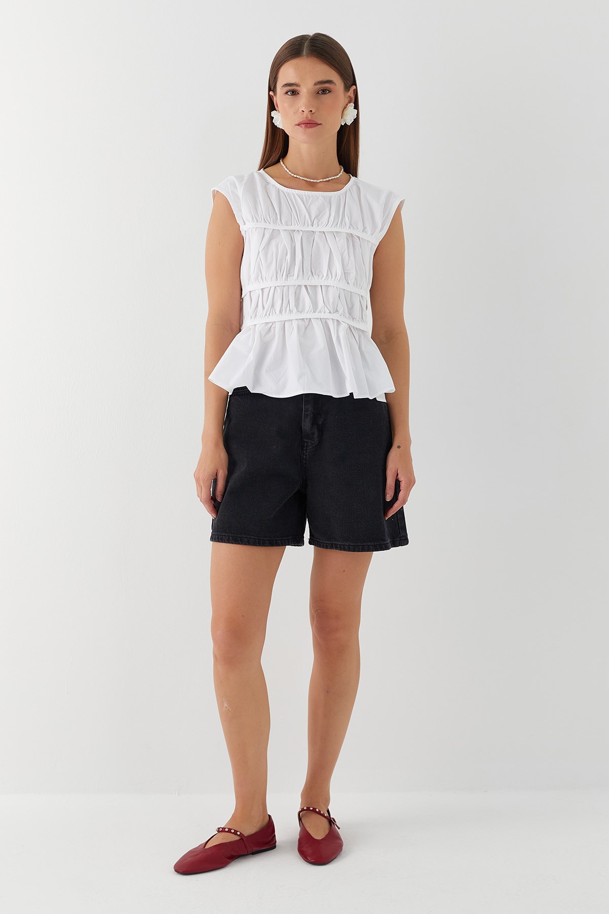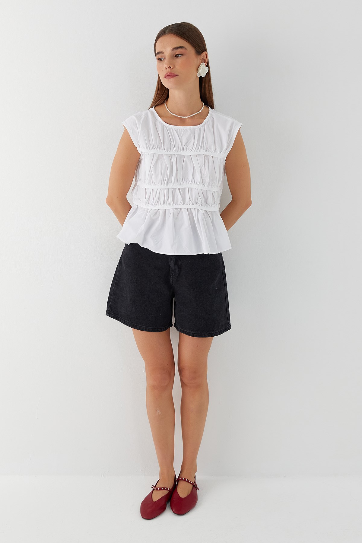 Büzgülü Bluz Beyaz (HT4179_005)