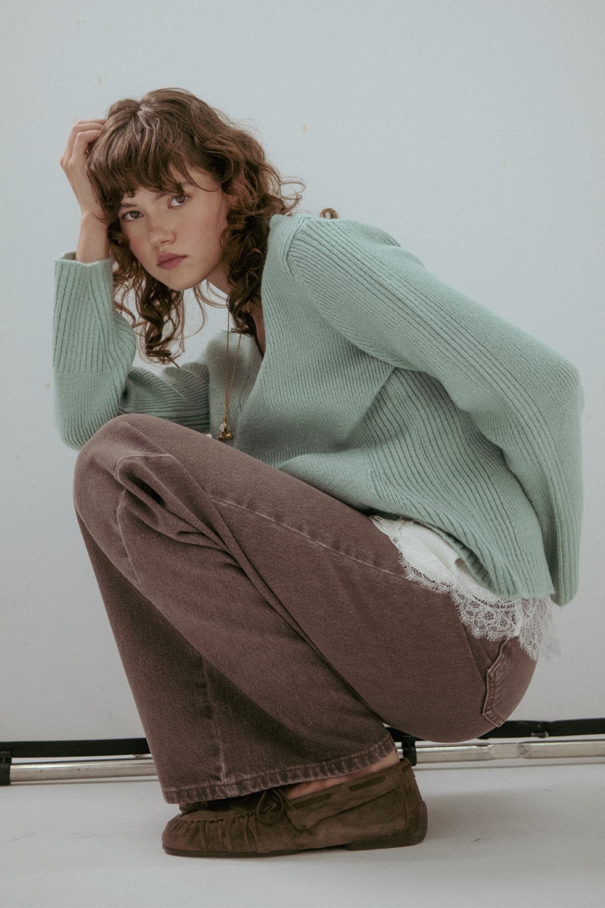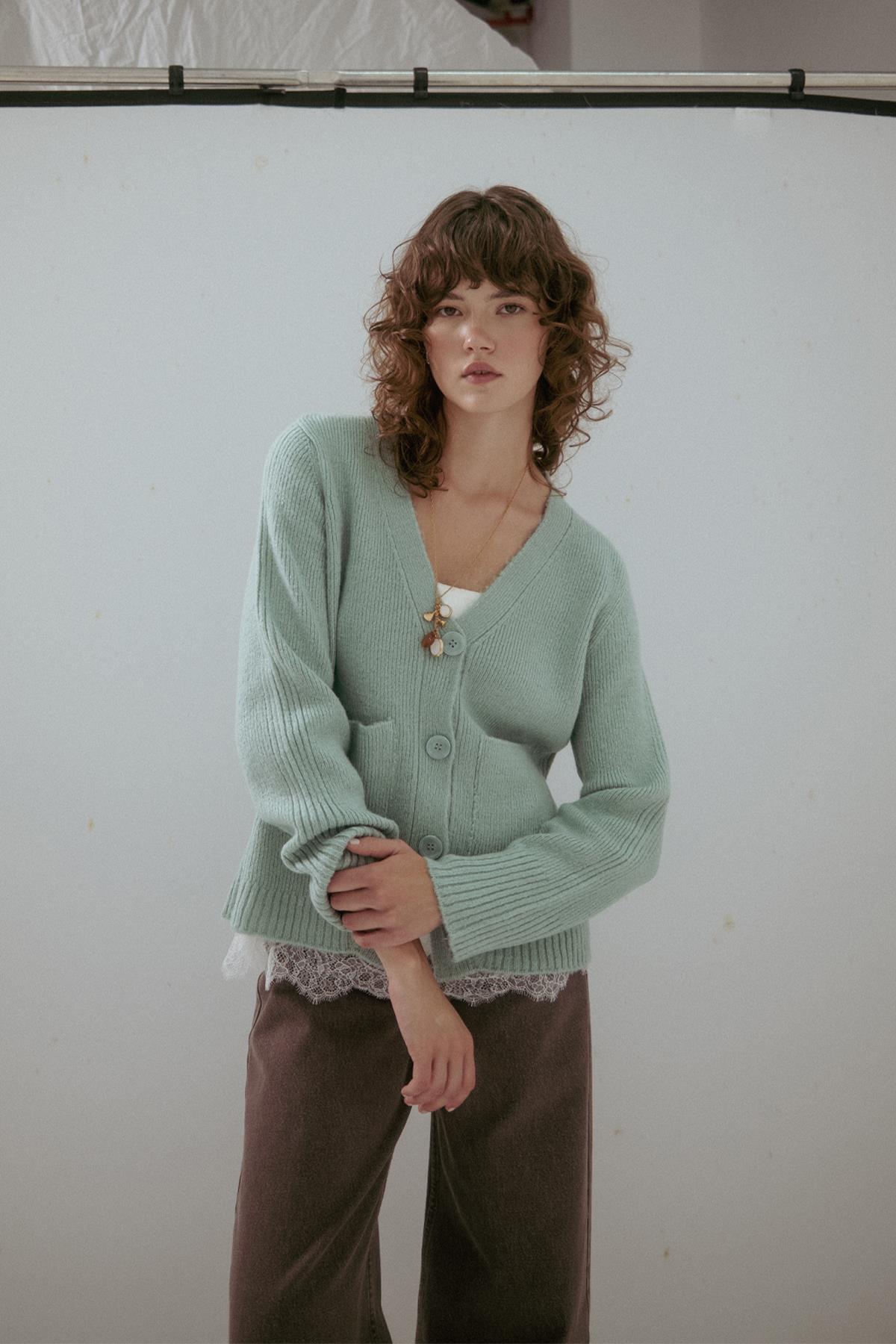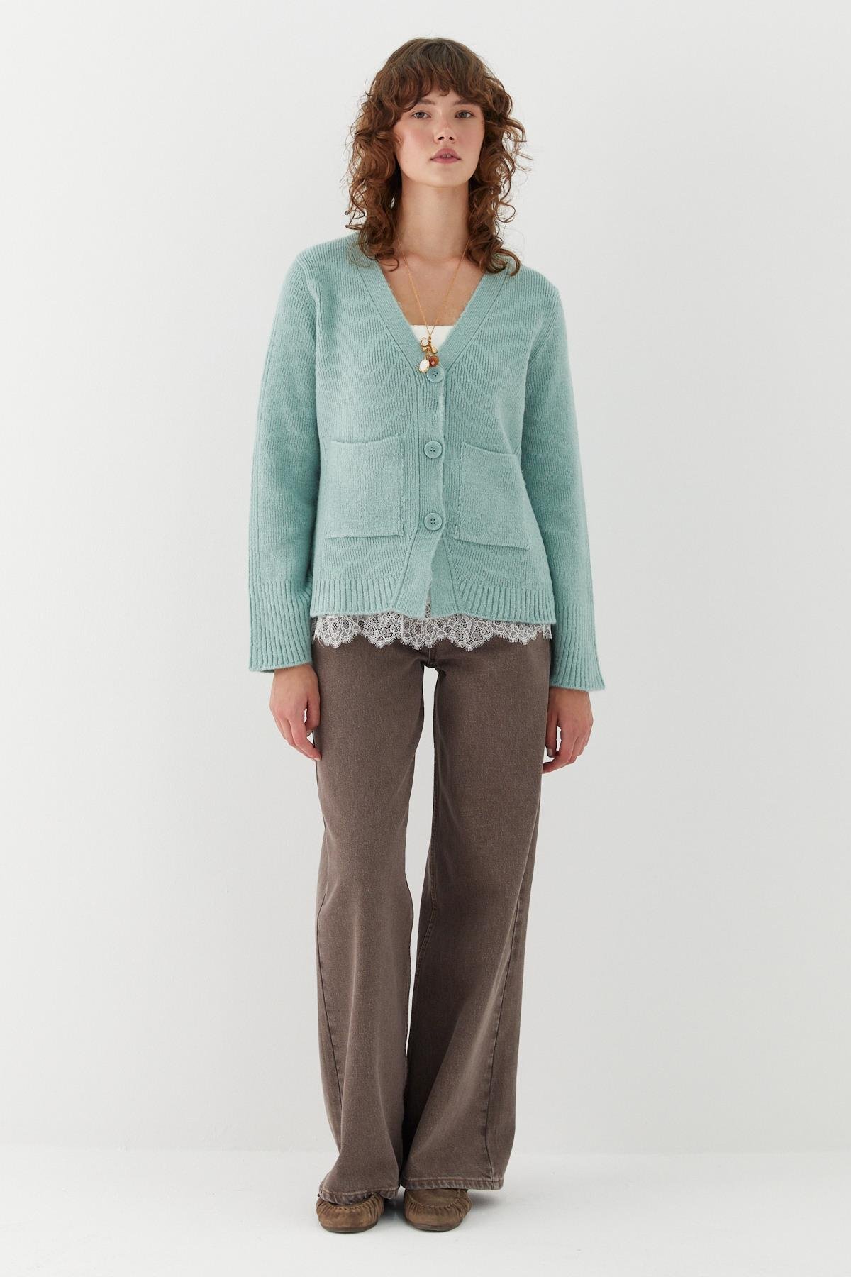Cep Detaylı V Yaka Triko Hırka Mint (MLAW25HRK0010_002)