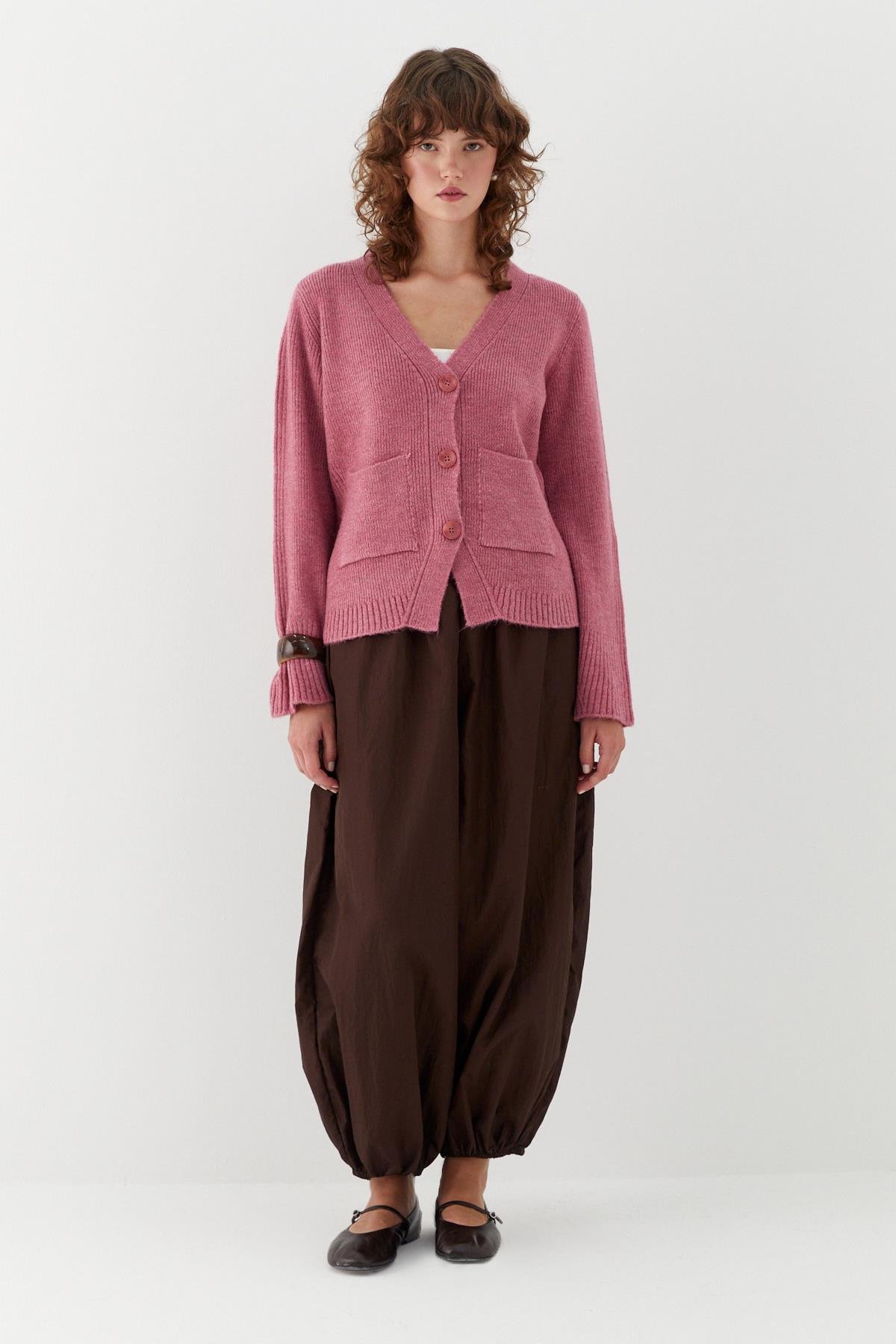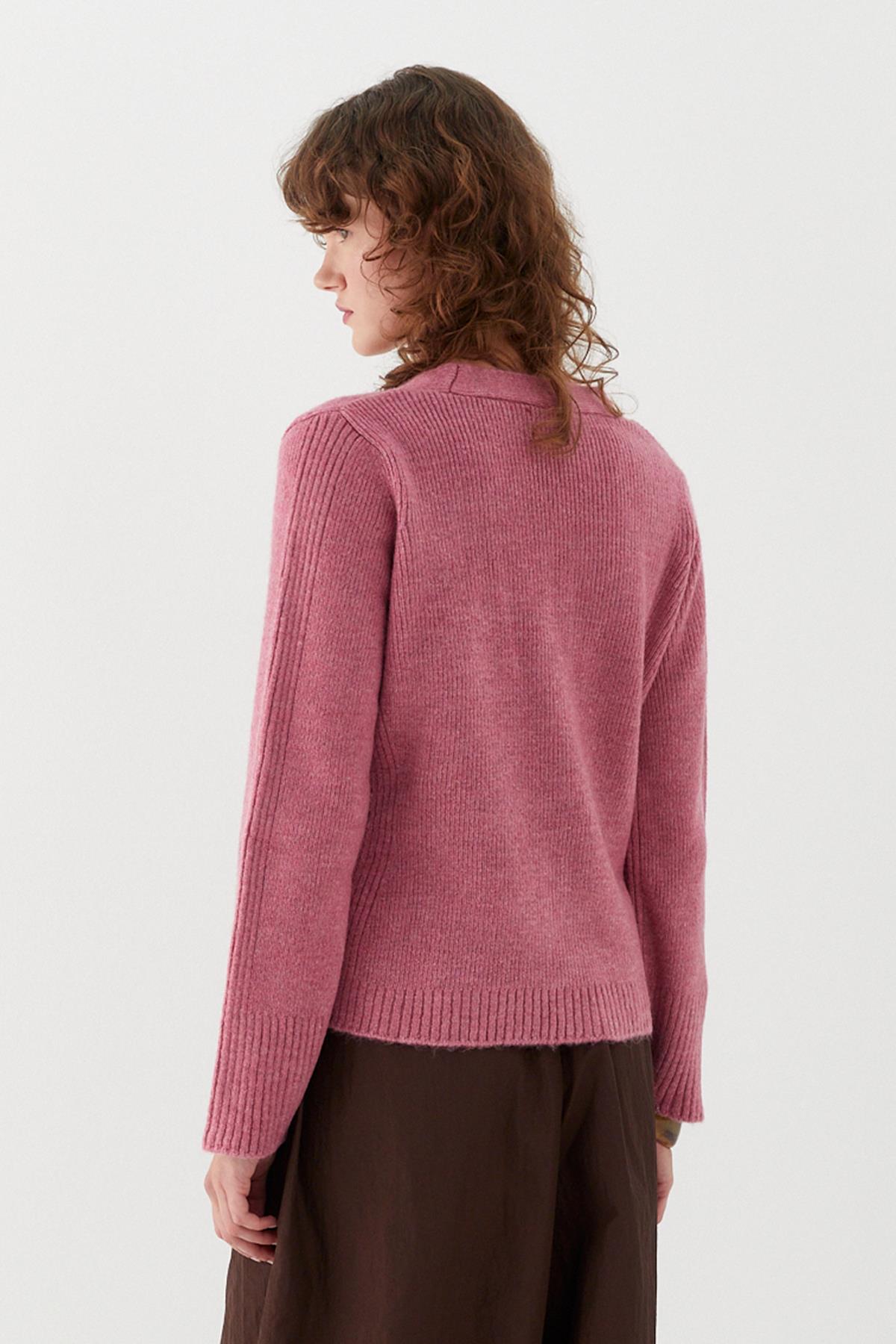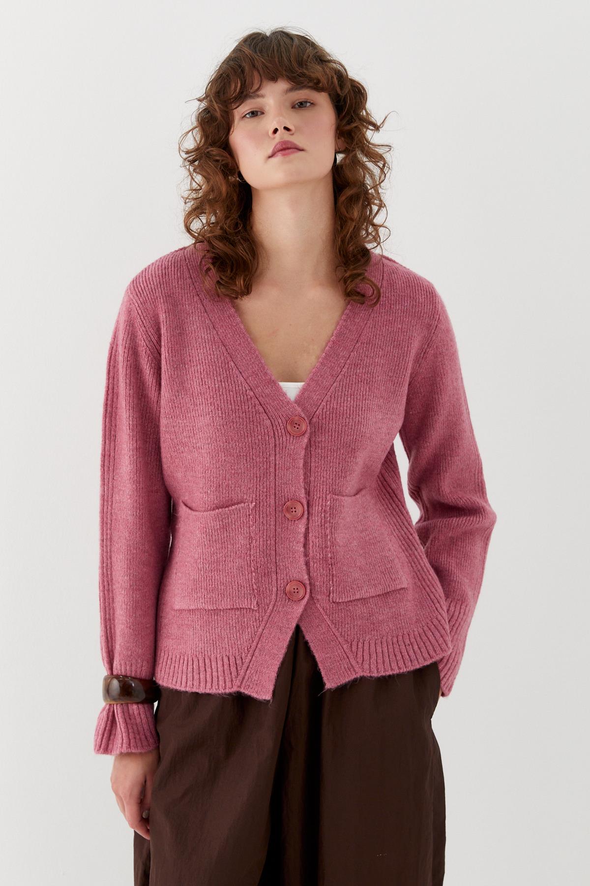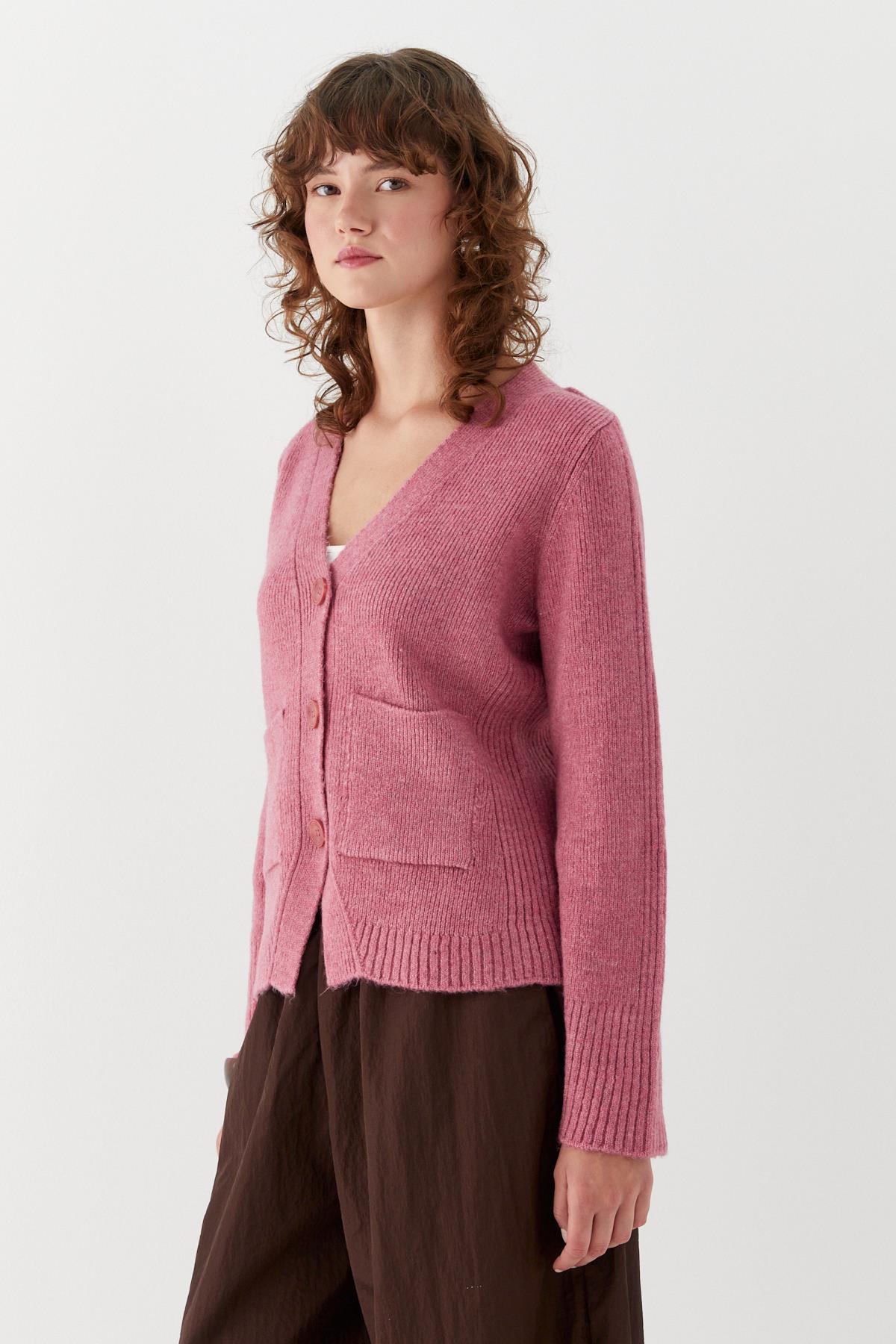 Cep Detaylı V Yaka Triko Hırka Pembe (MLAW25HRK0010_024)