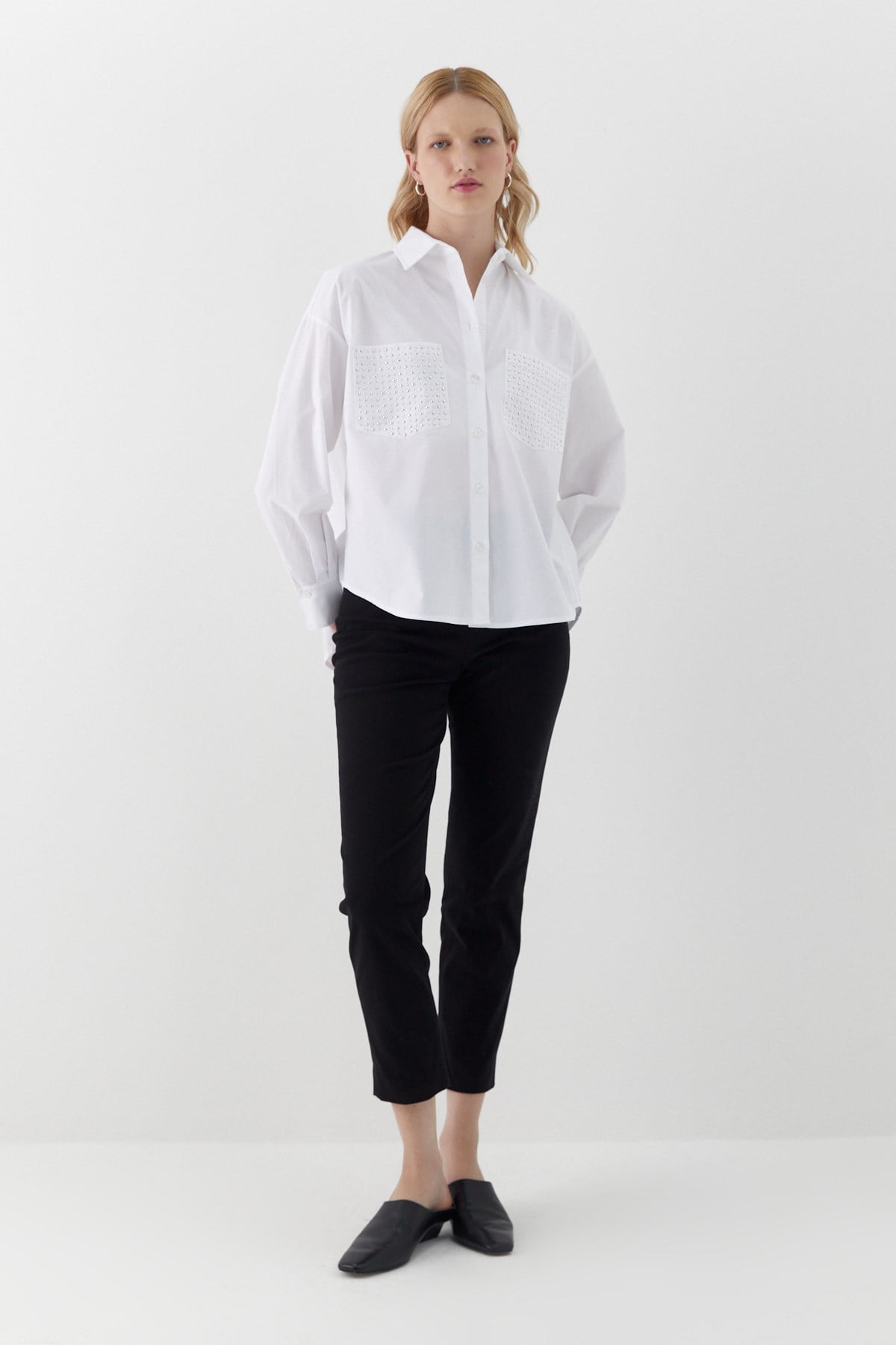 Cepleri Taş Detaylı Gömlek Beyaz (MLSS26GML0008_005)