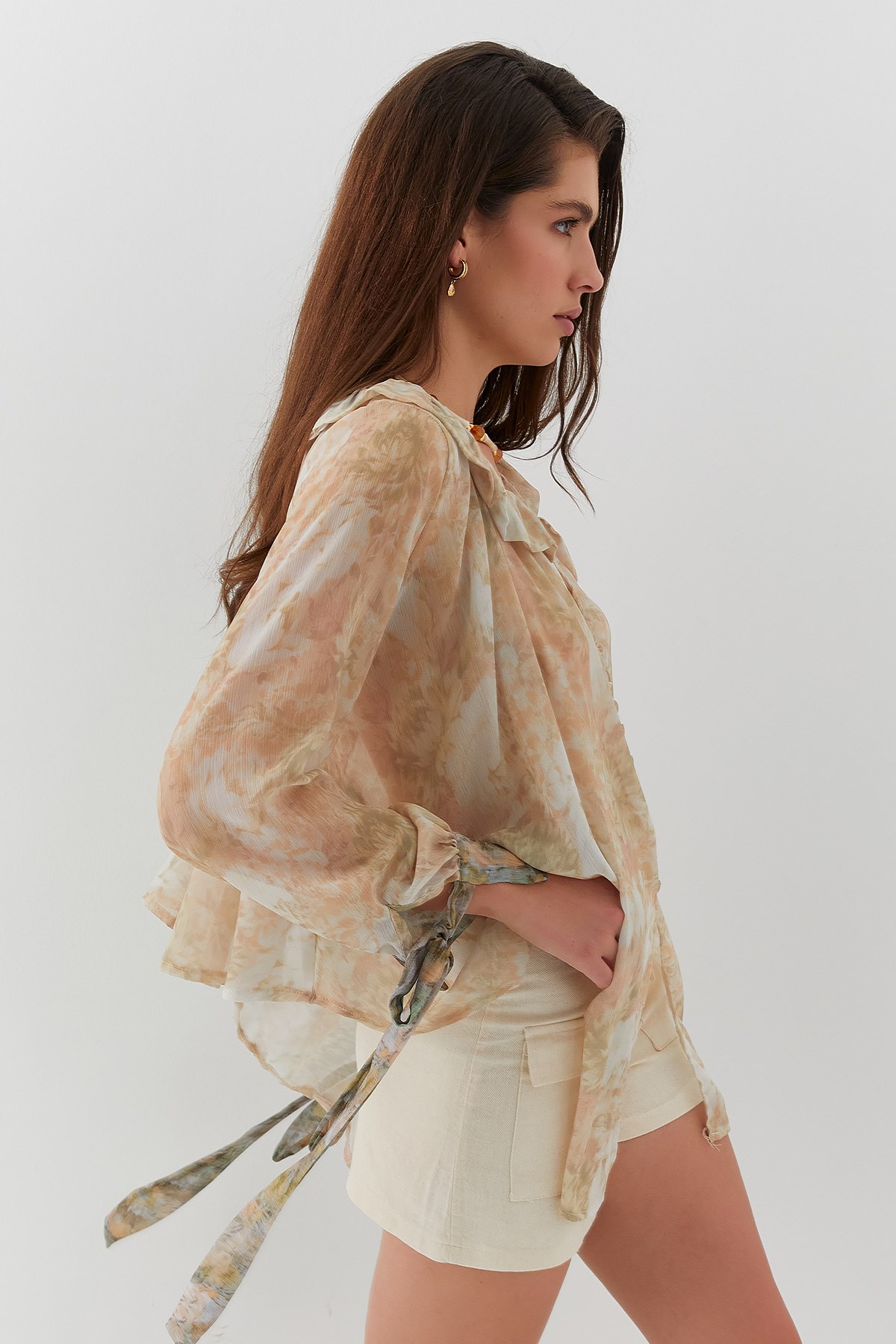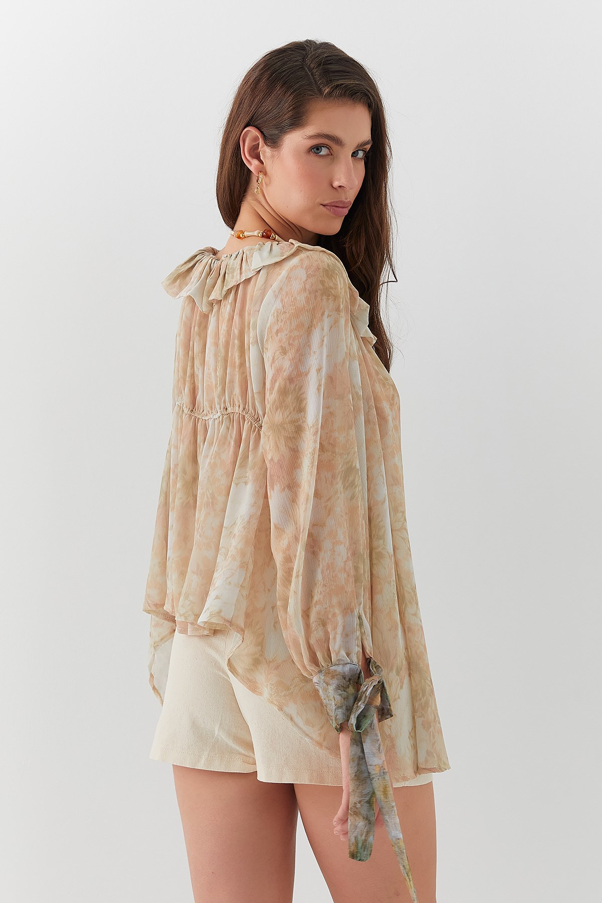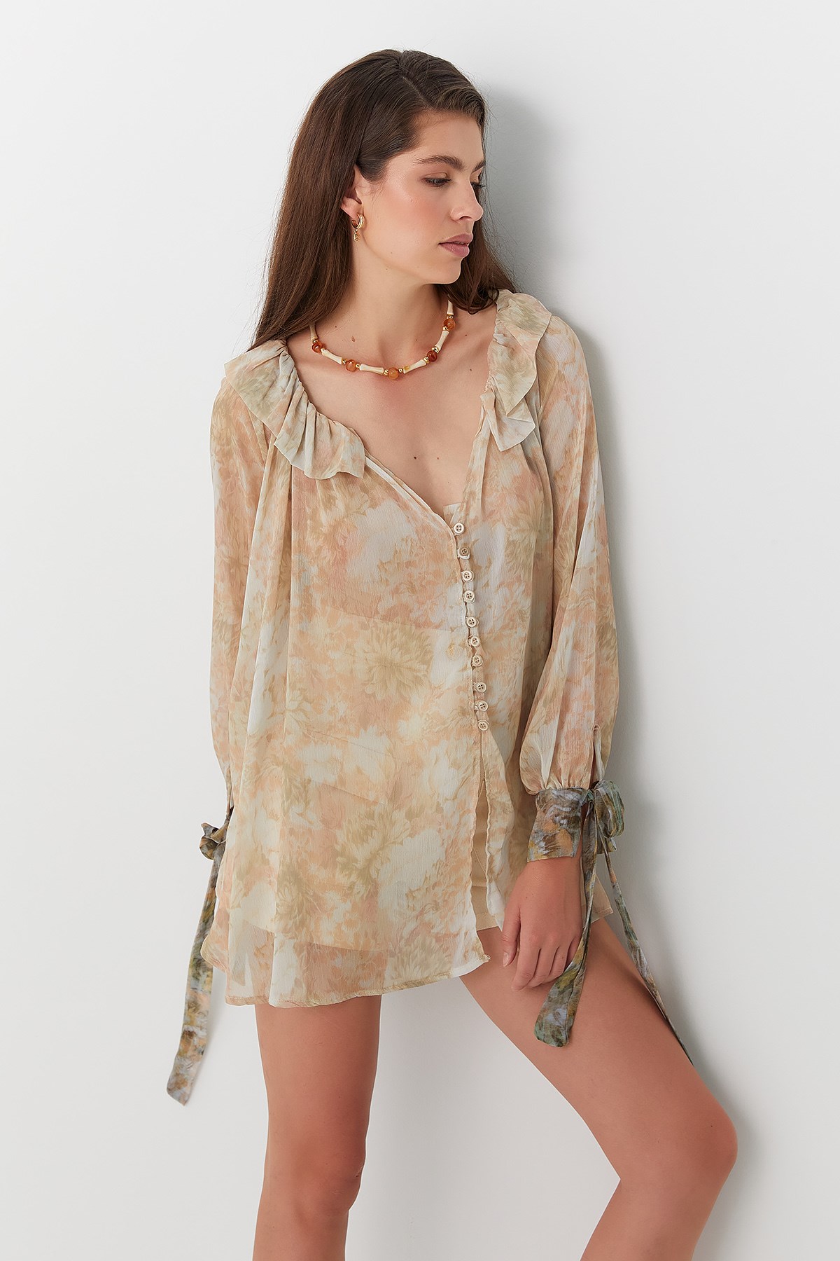 Desenli Şifon Gömlek Bej (MSY4083_004)