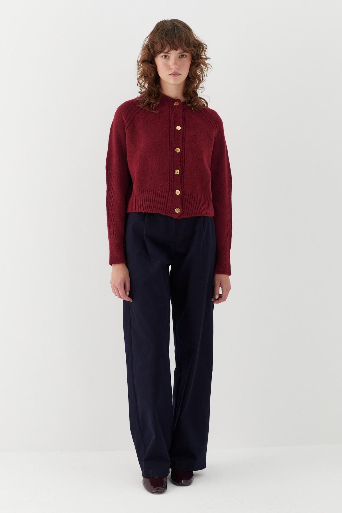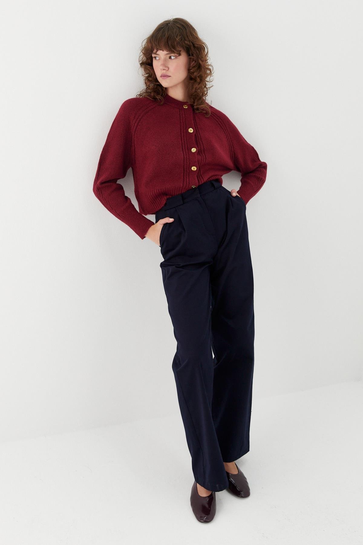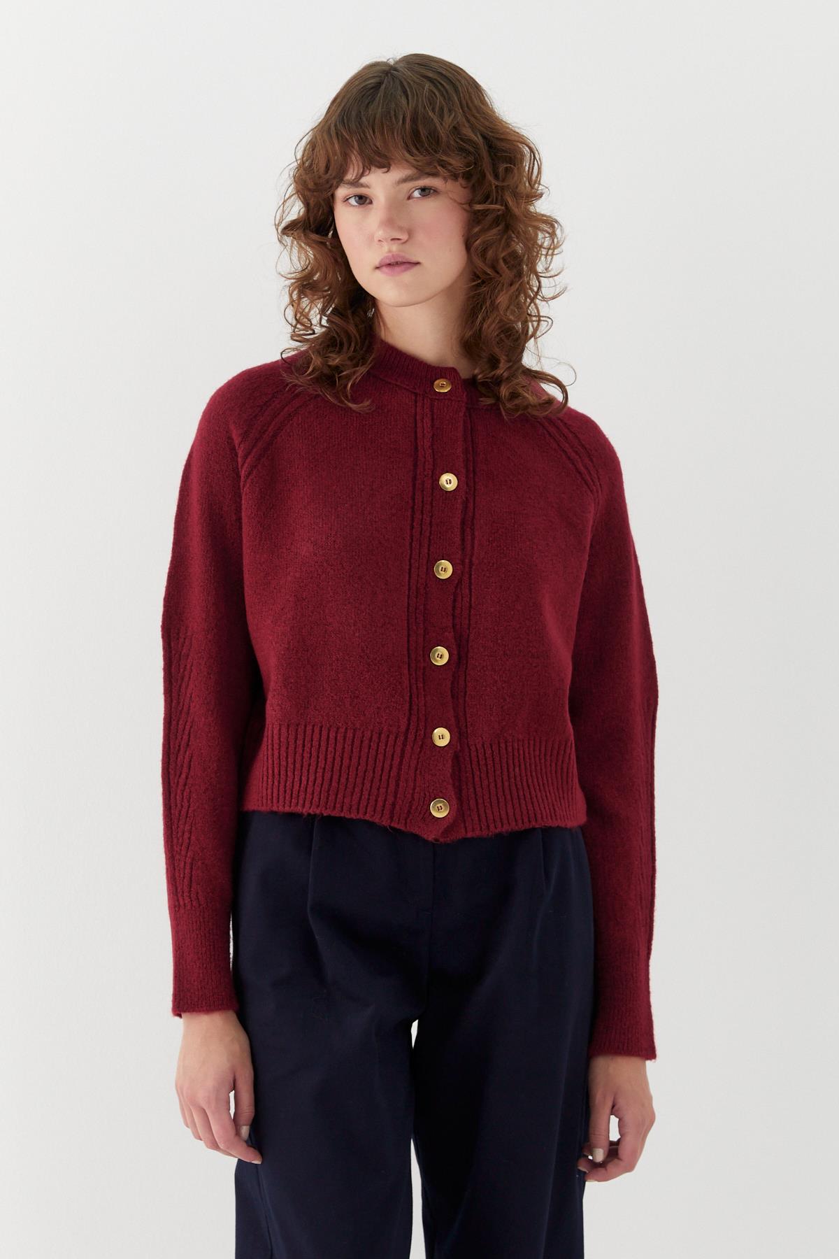 Dikiş Detaylı Triko Hırka Bordo (MLAW25HRK0008_033)