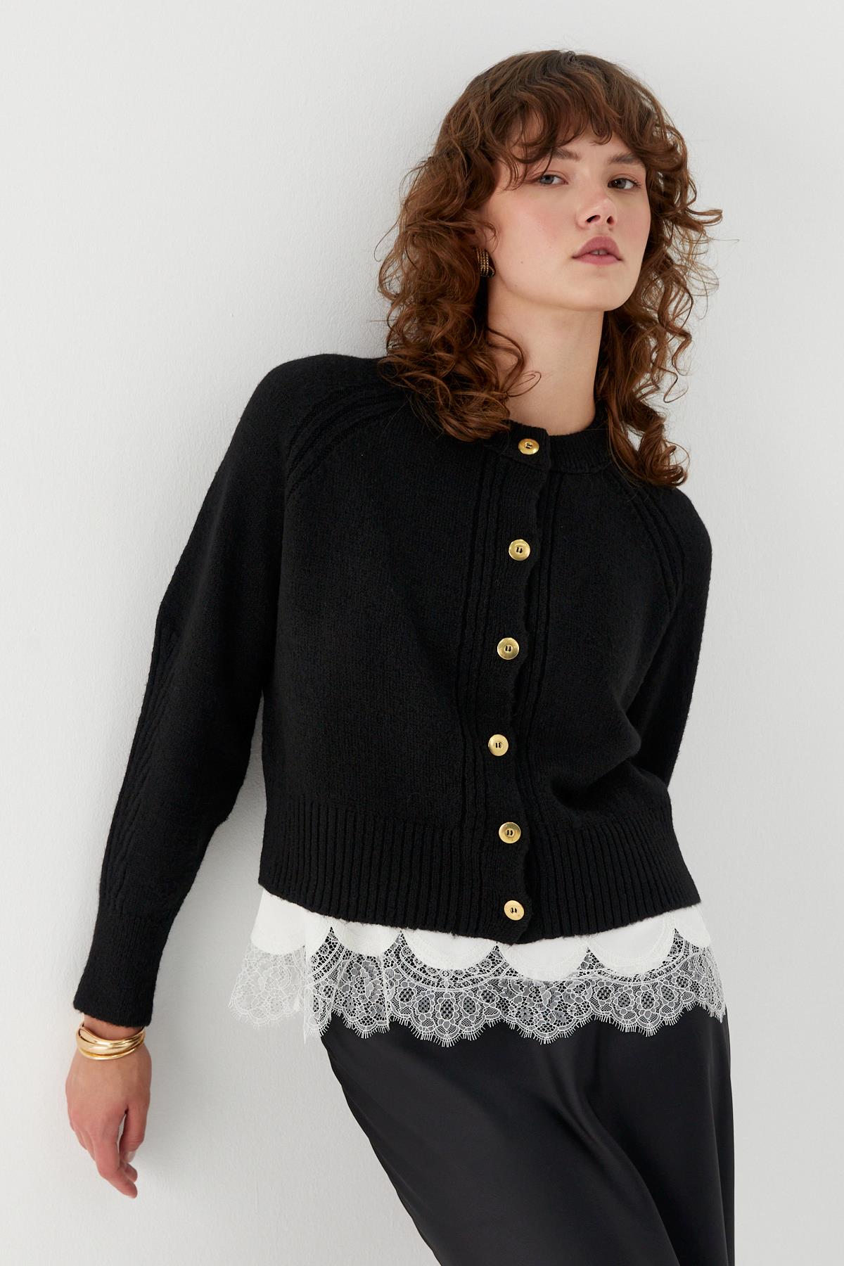 Dikiş Detaylı Triko Hırka Siyah (MLAW25HRK0008_001)