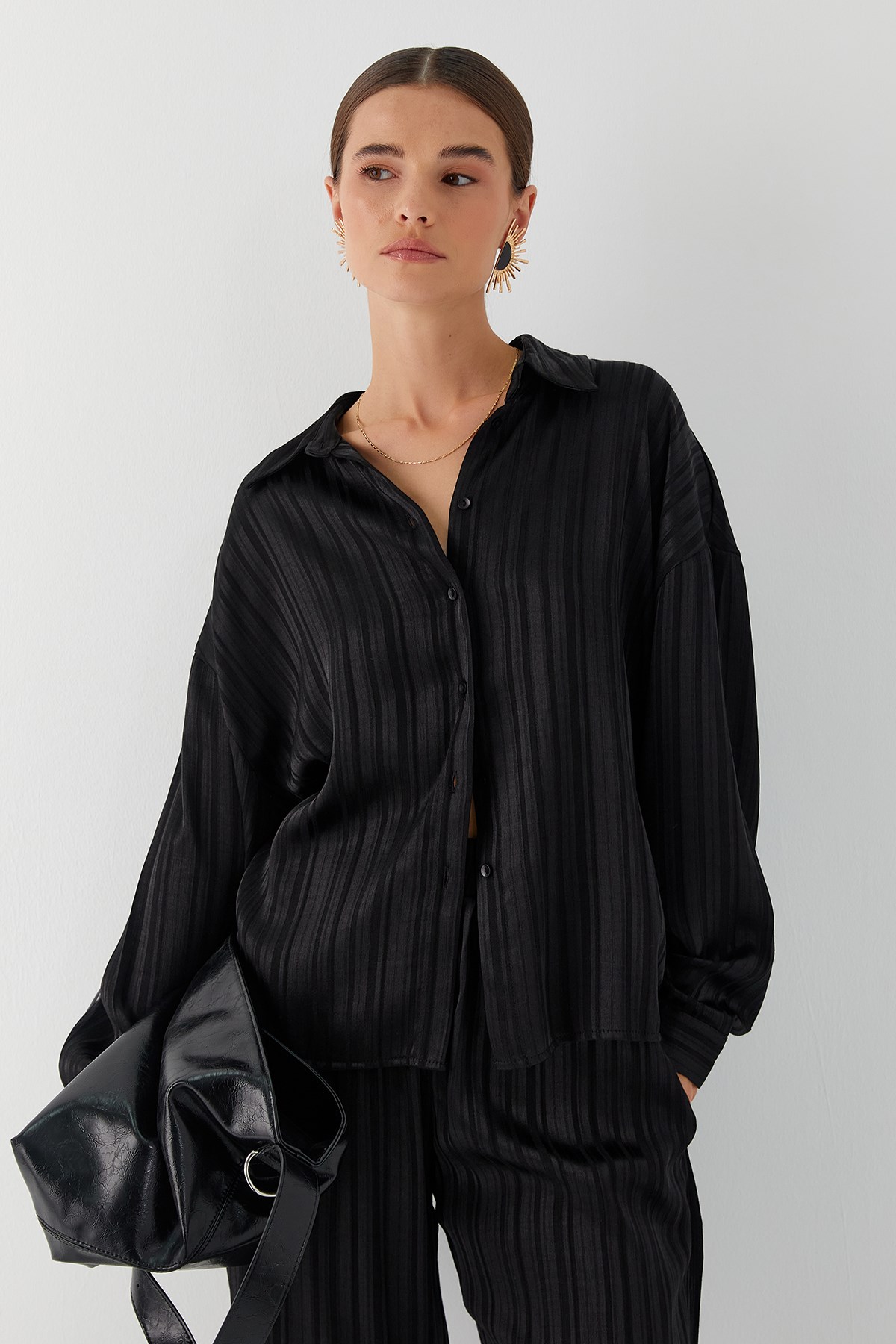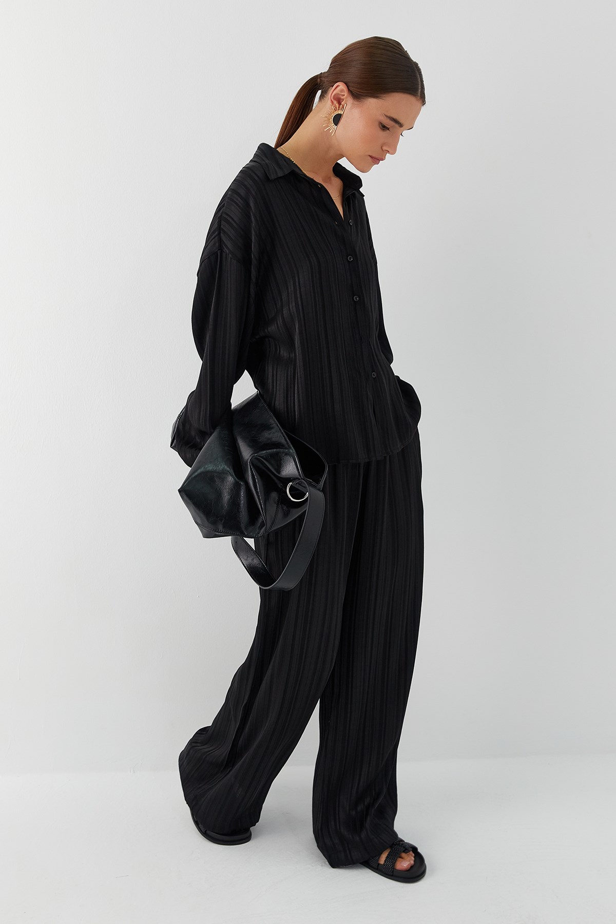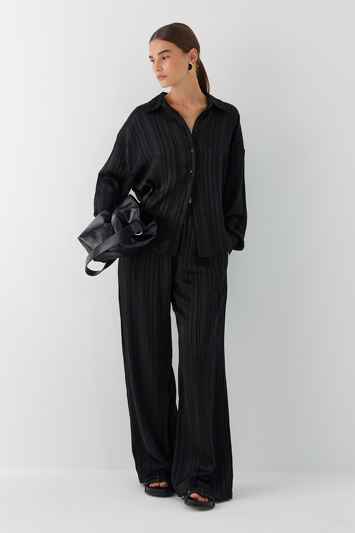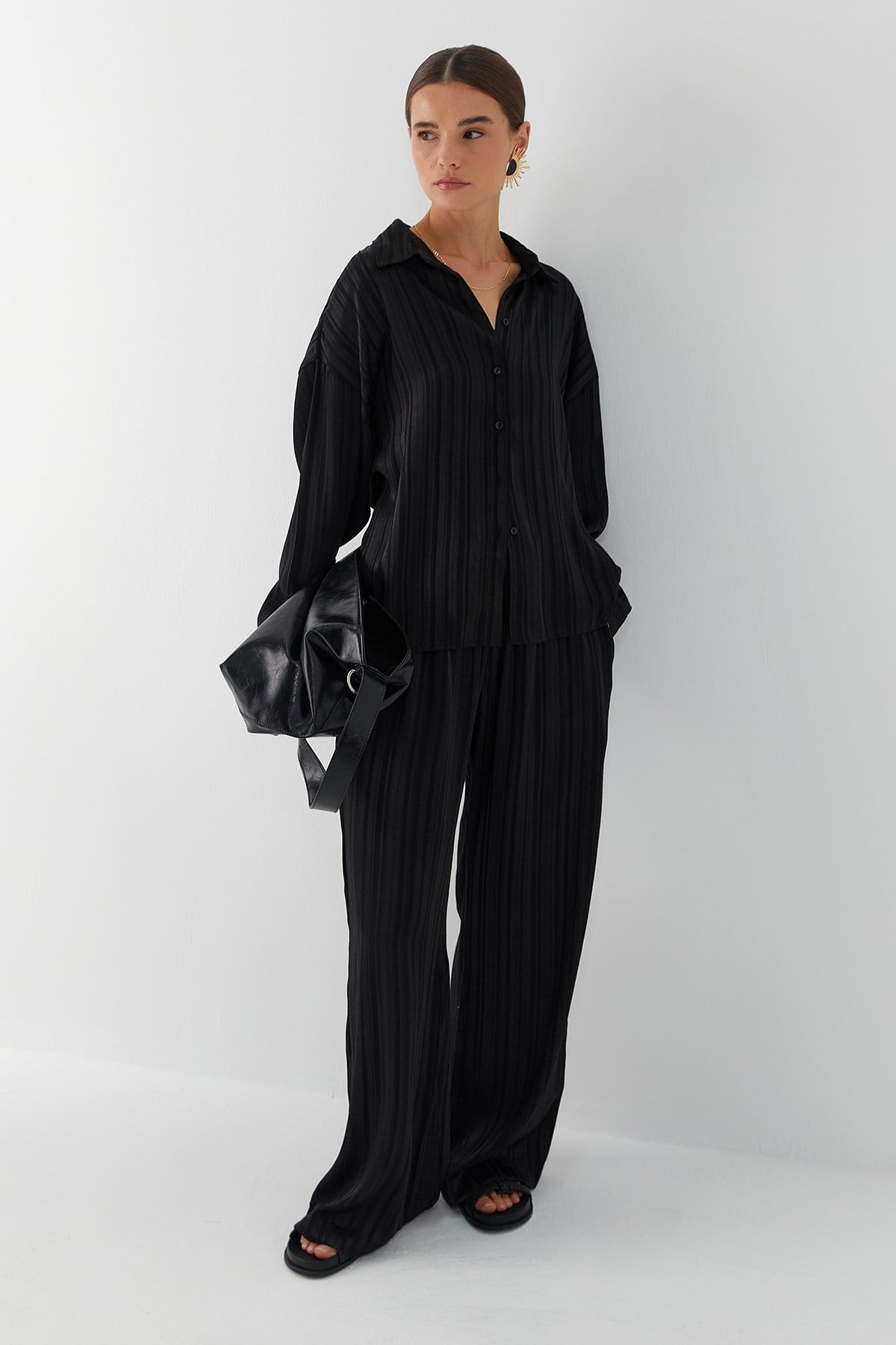 Dökümlü Oversize Takım Siyah (FN9021_001)