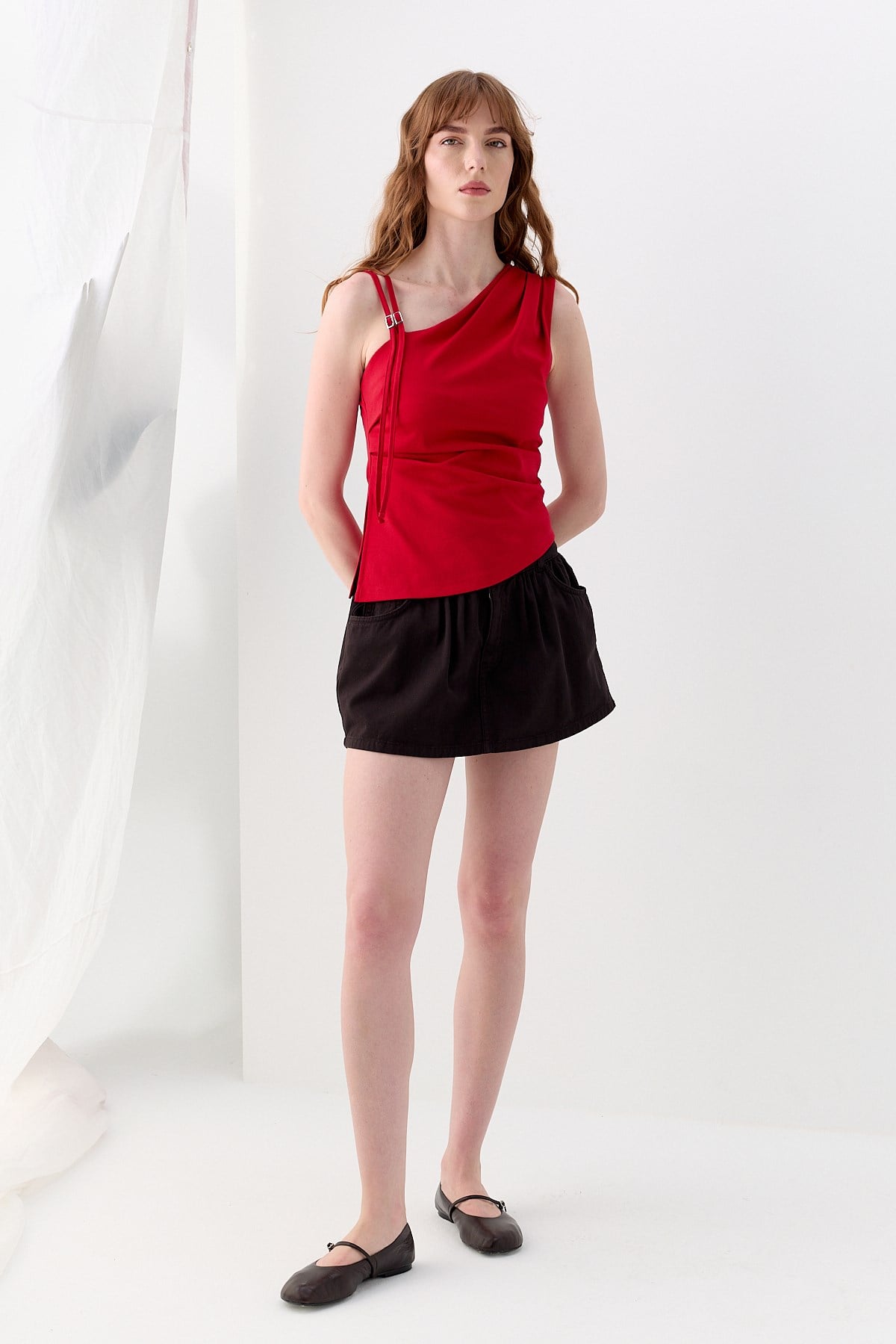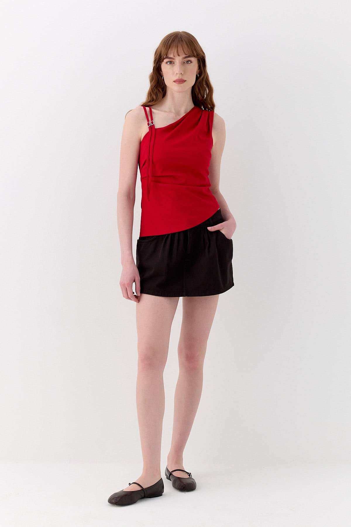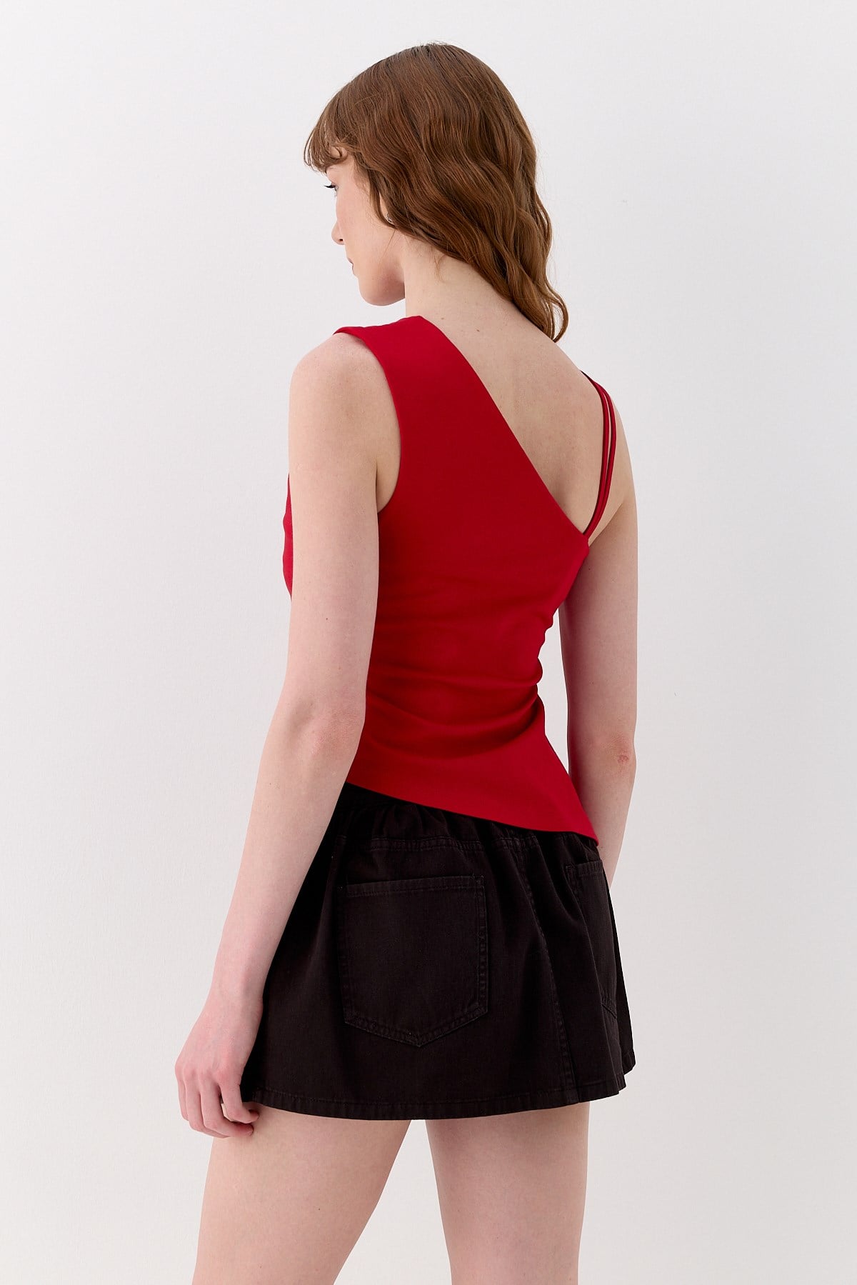 Drapeli Tek Omuz İnterlok Bluz Kırmızı (MLSS26BLZ0039_010)