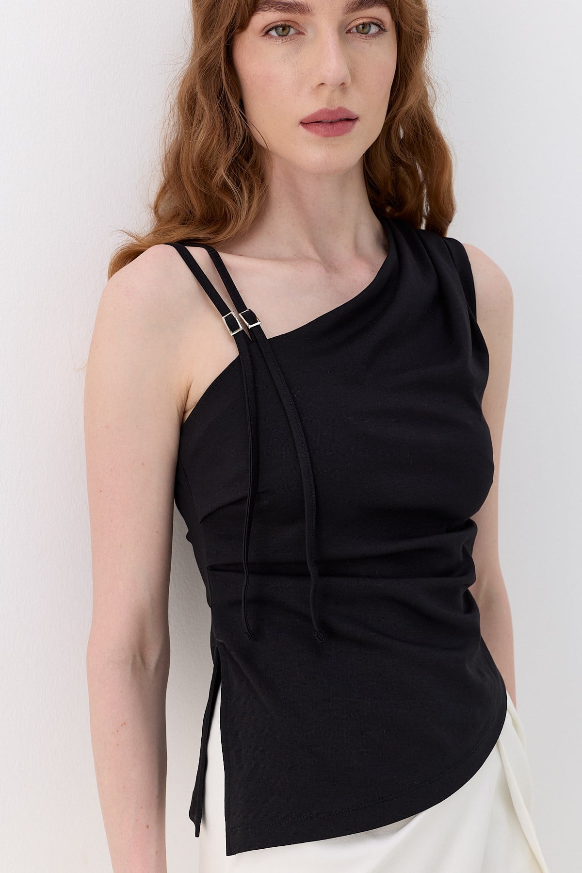 Drapeli Tek Omuz İnterlok Bluz Ekru Drapeli Tek Omuz İnterlok Bluz Kırmızı Drapeli Tek Omuz İnterlok Bluz Siyah