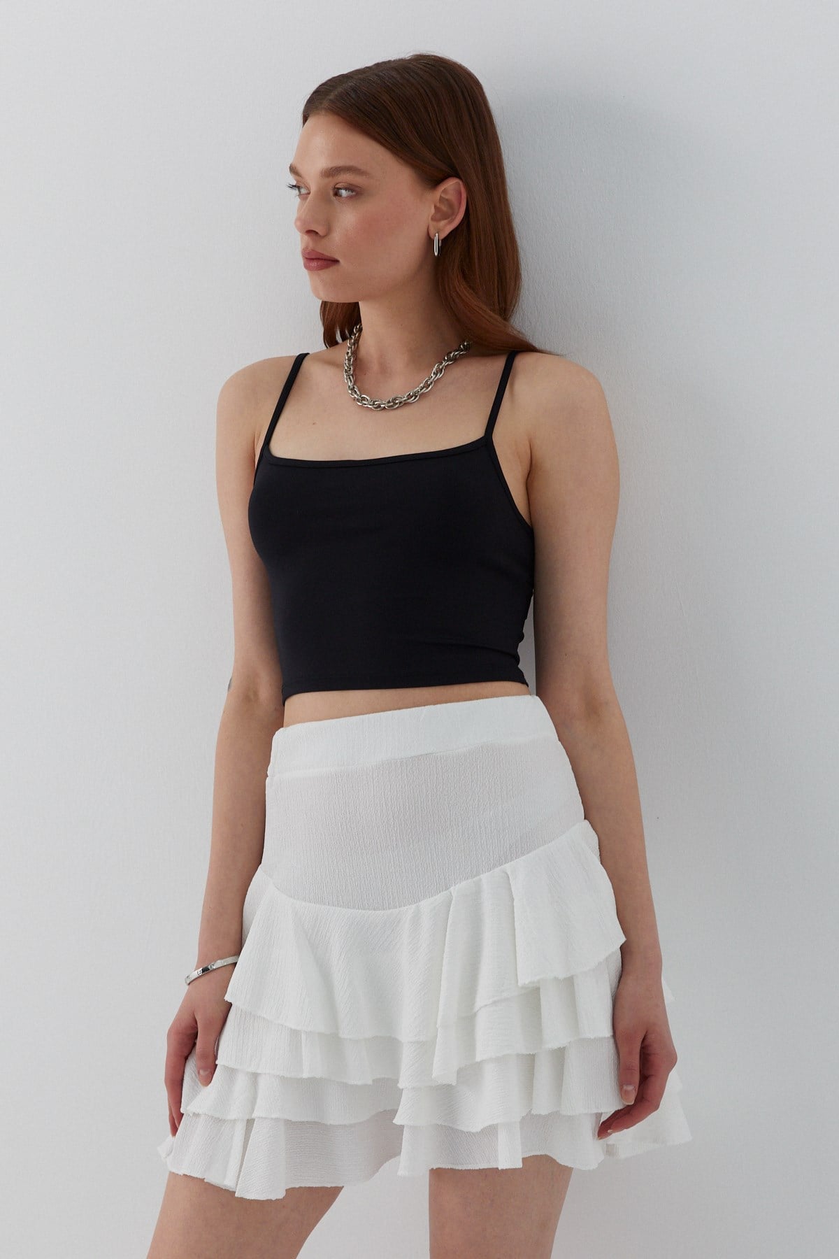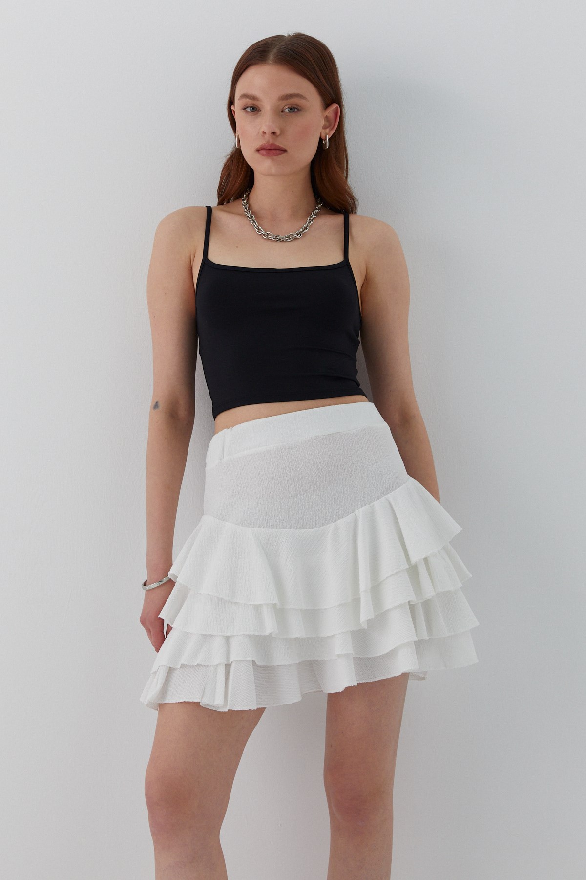 Fırfırlı Kısa Etek Ekru Fırfırlı Kısa Etek Siyah