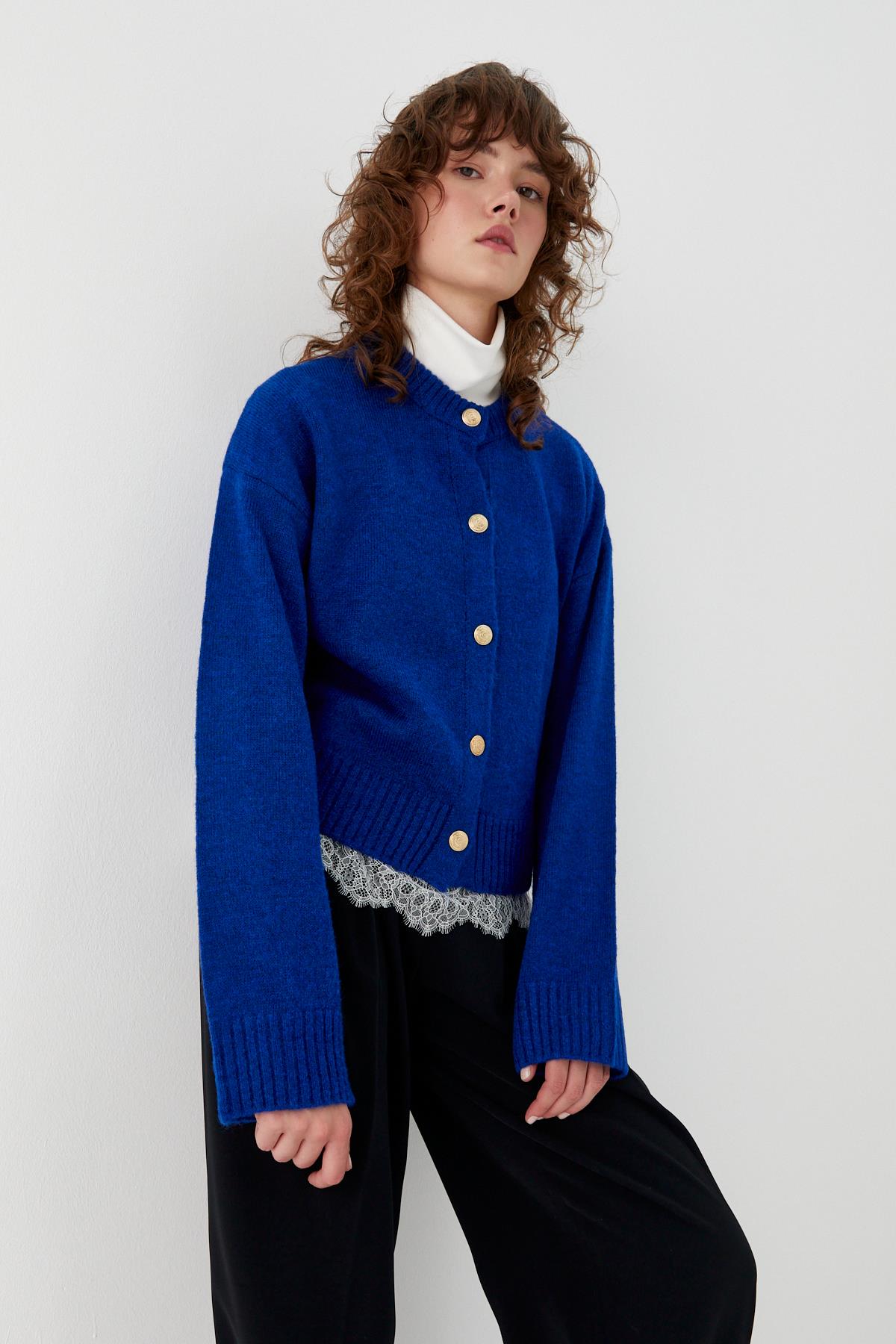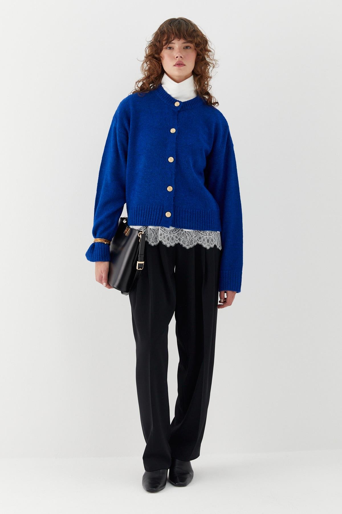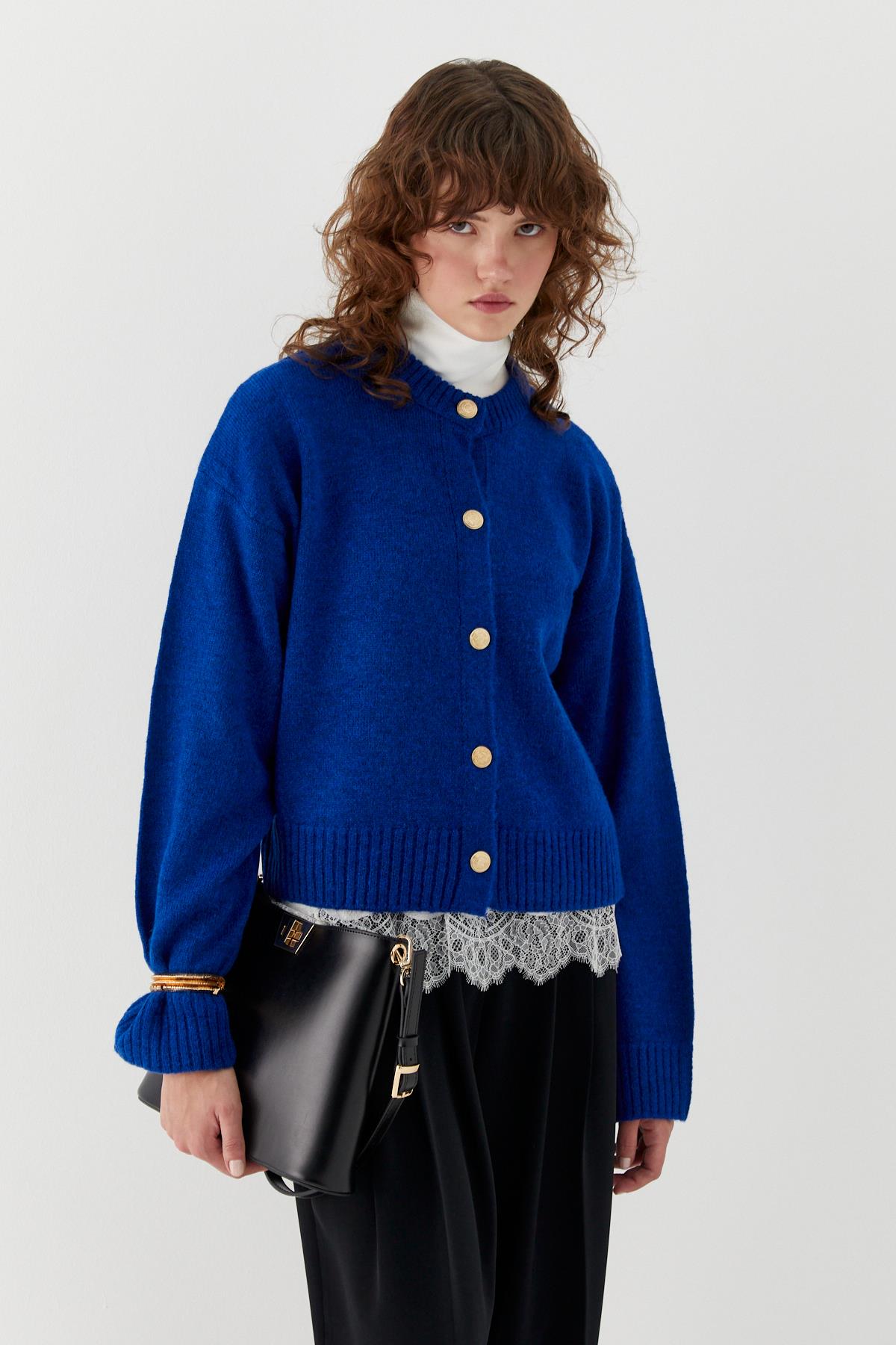 Gold Düğmeli Triko Hırka Saks Mavisi (MLAW25HRK0011_045)