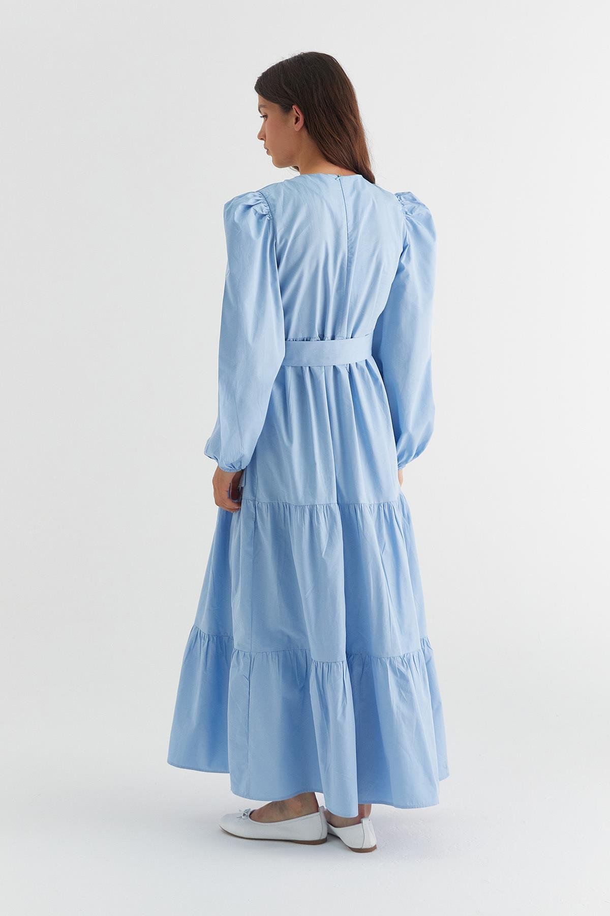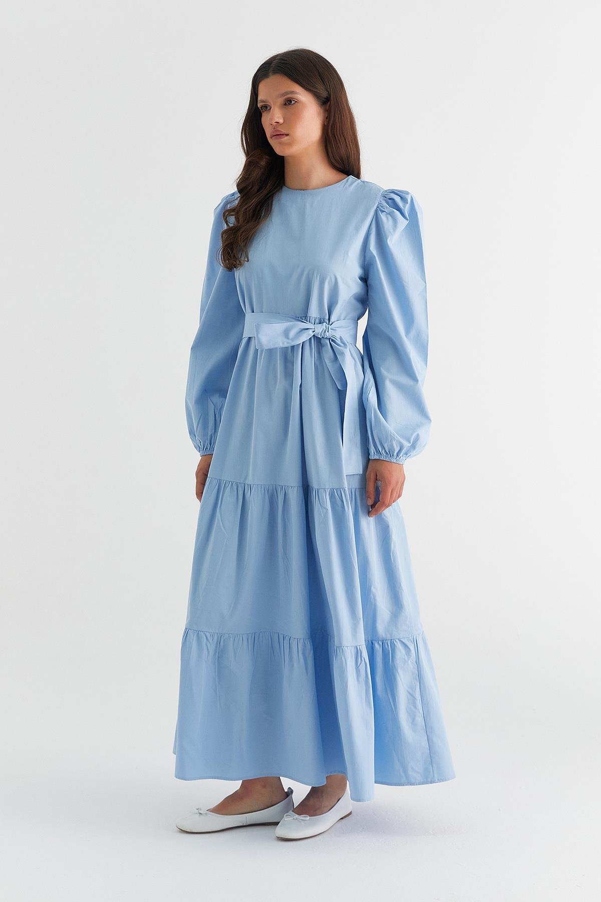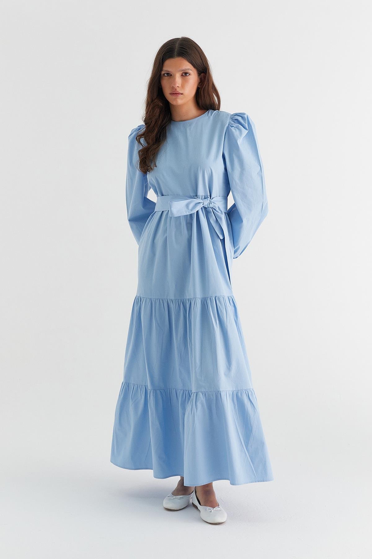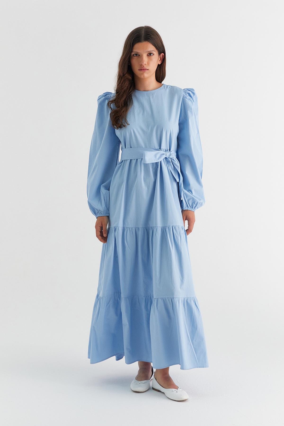 Heidi Balon Kol Kat Kat Elbise Açık Mavi (ML1057_044)