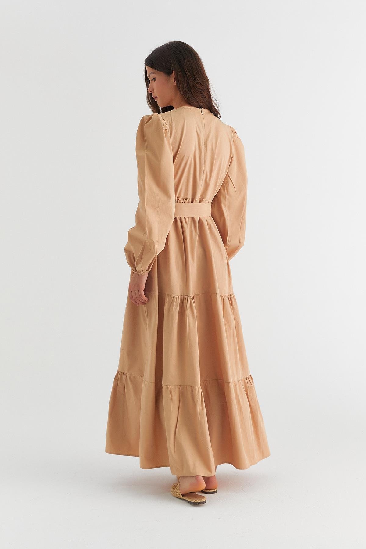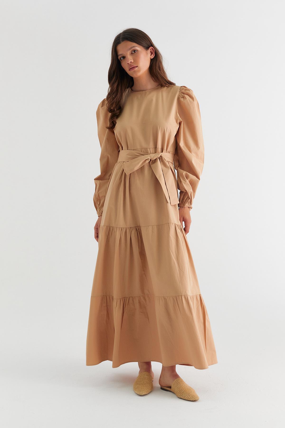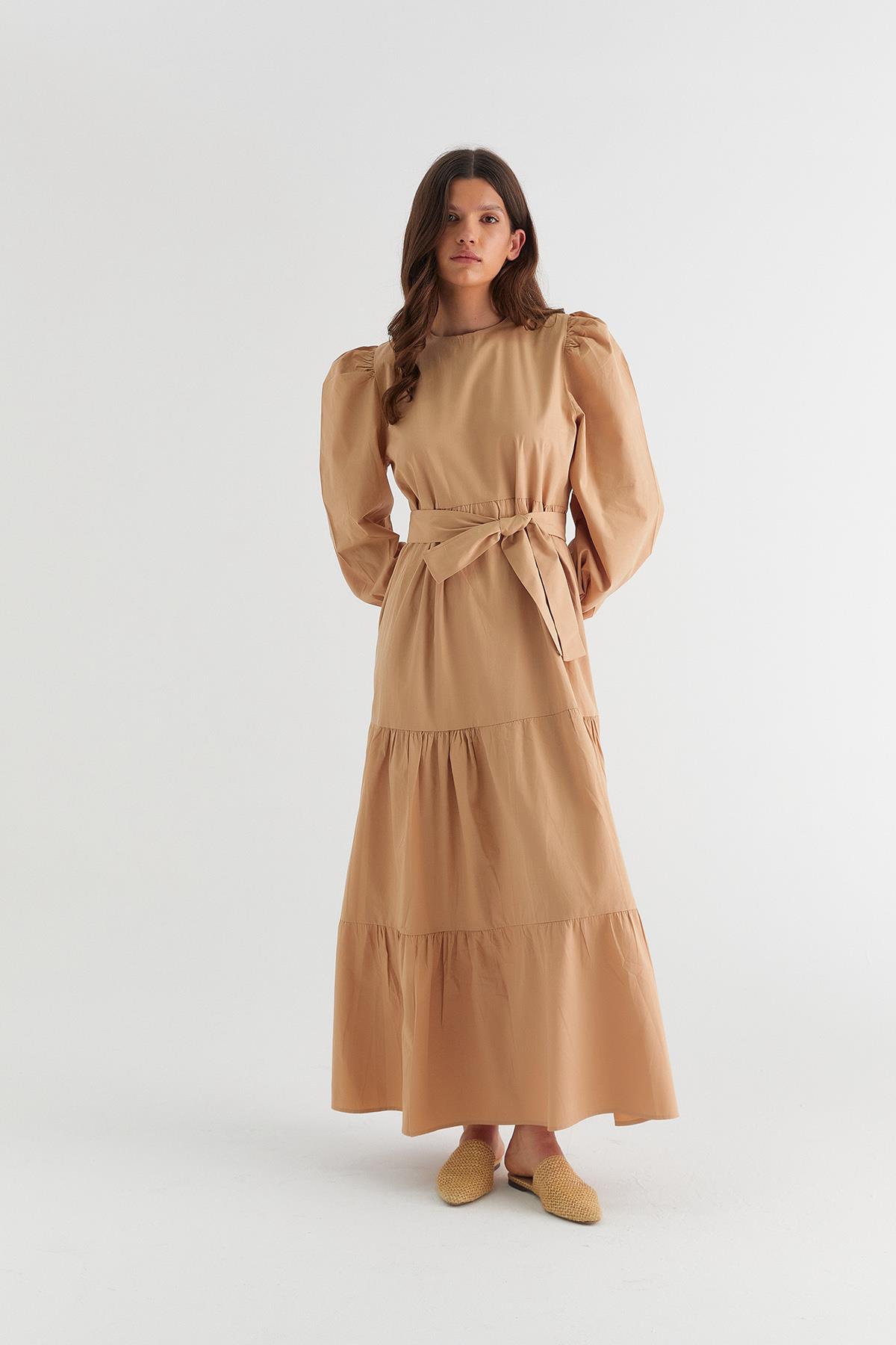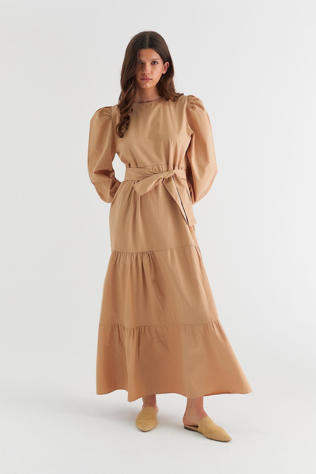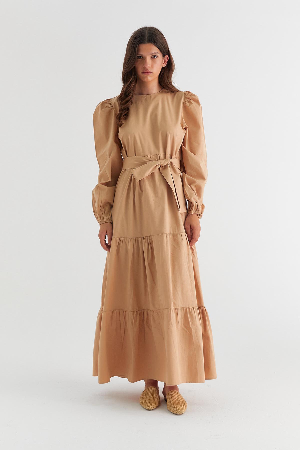 Heidi Balon Kol Kat Kat Elbise Camel (ML1057_021)