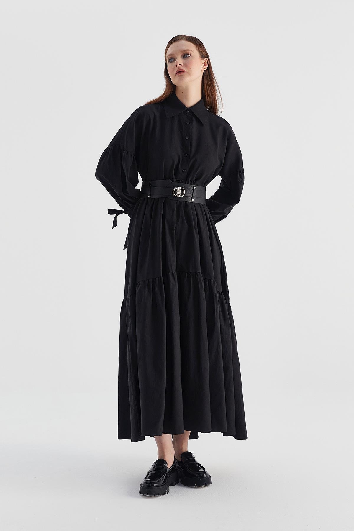 Kemerli Elbise Siyah (HN9727_001)