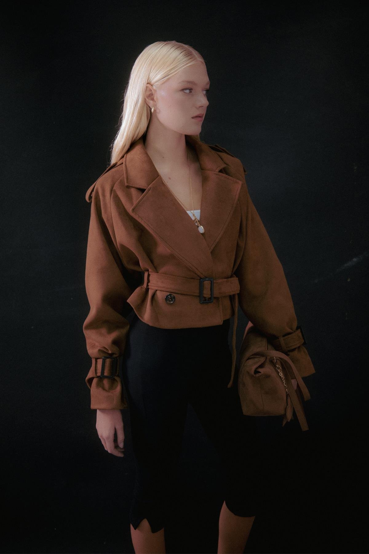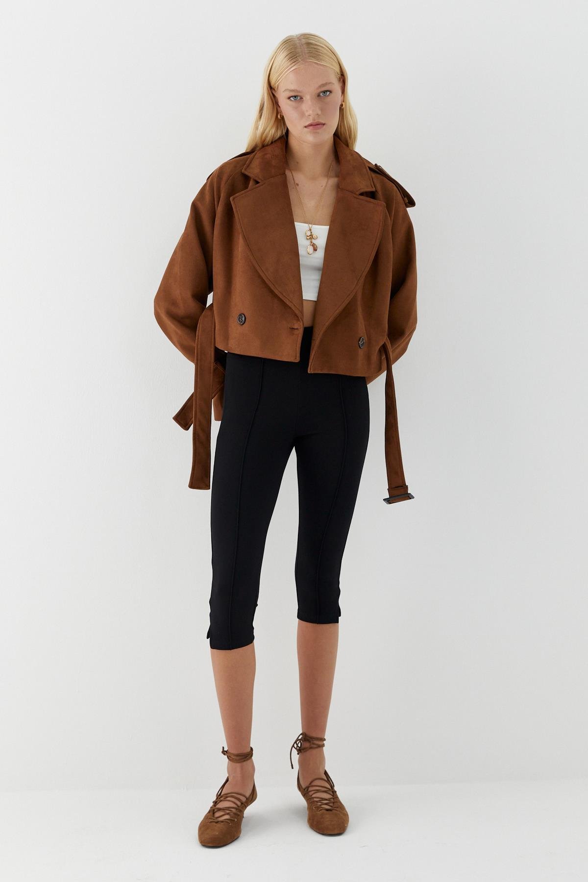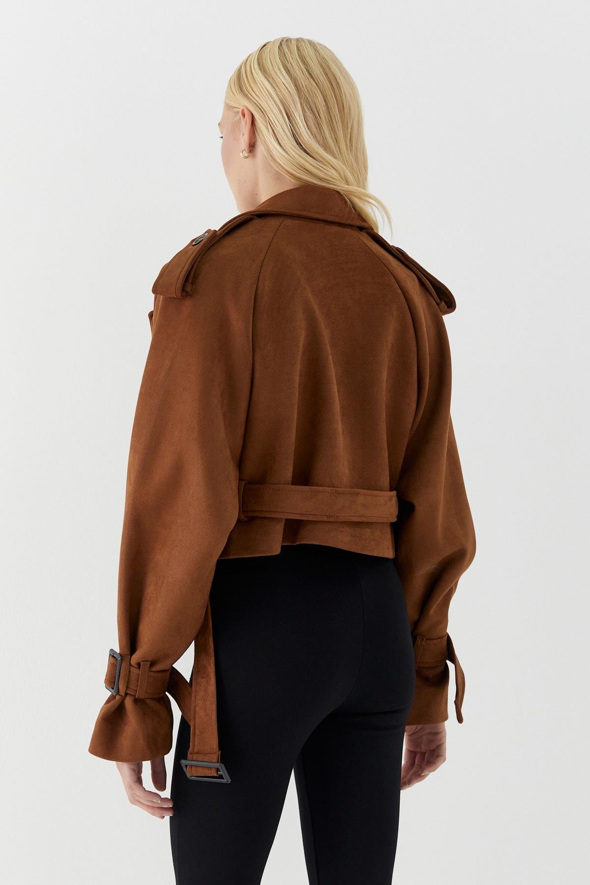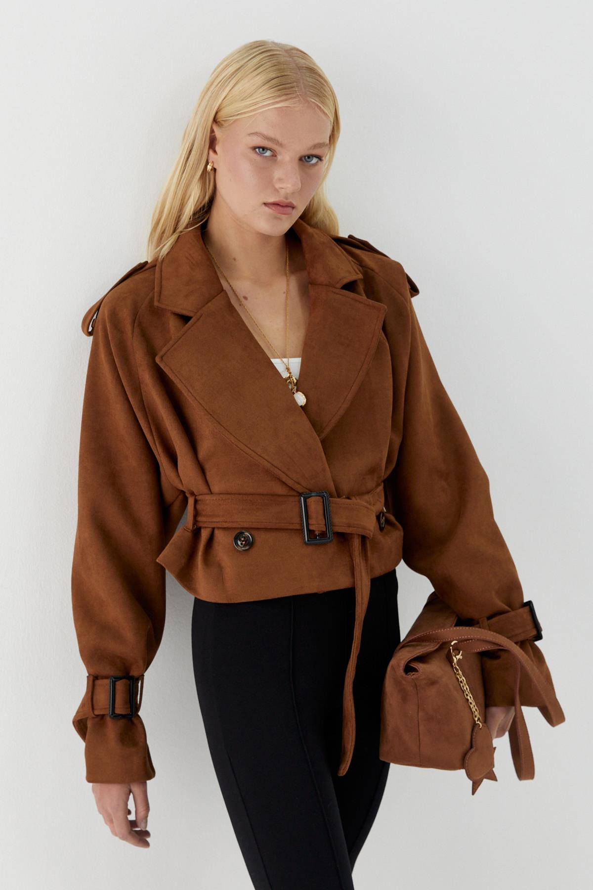 Kemerli Süet Kısa Ceket Kahverengi (HTF9250_022)