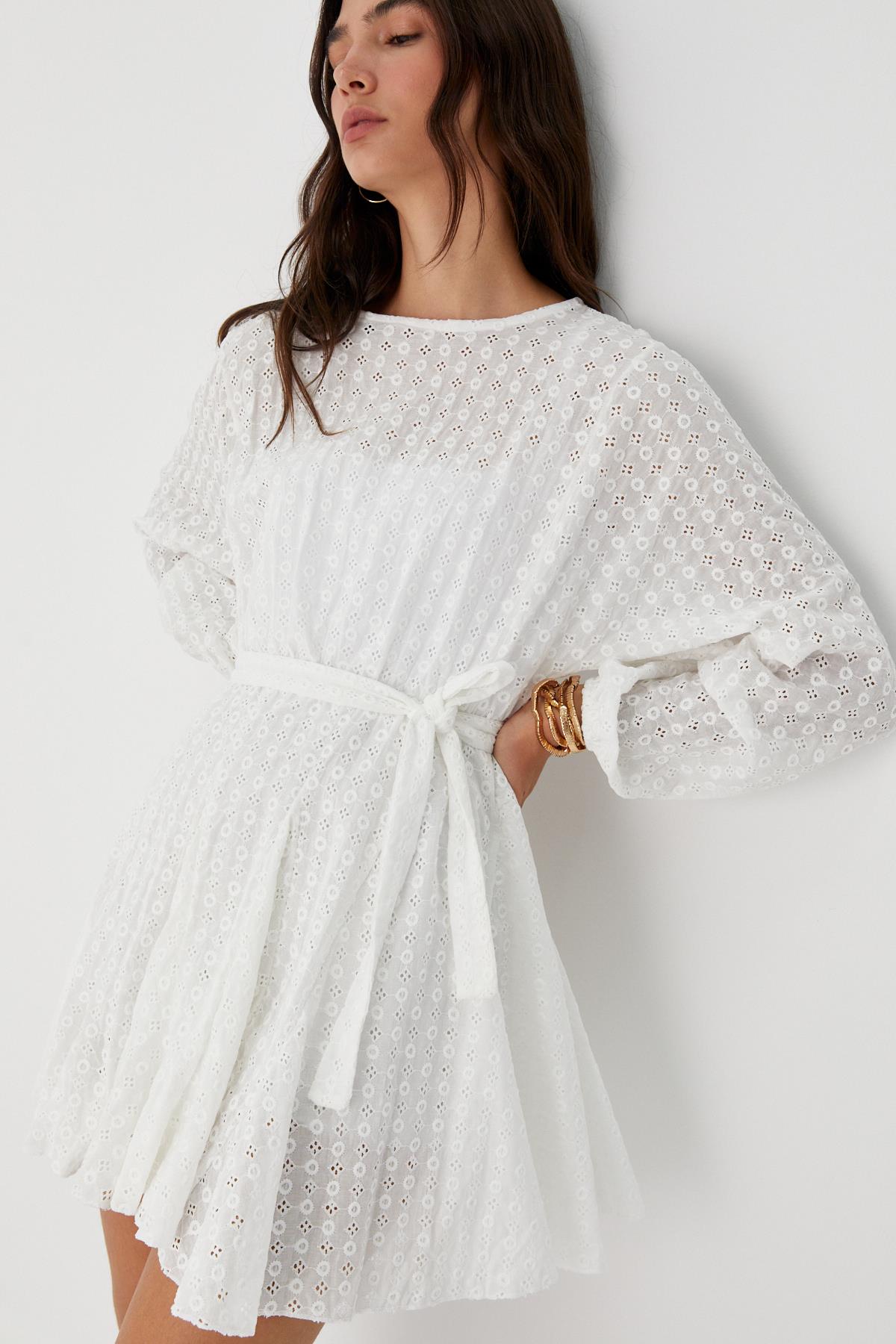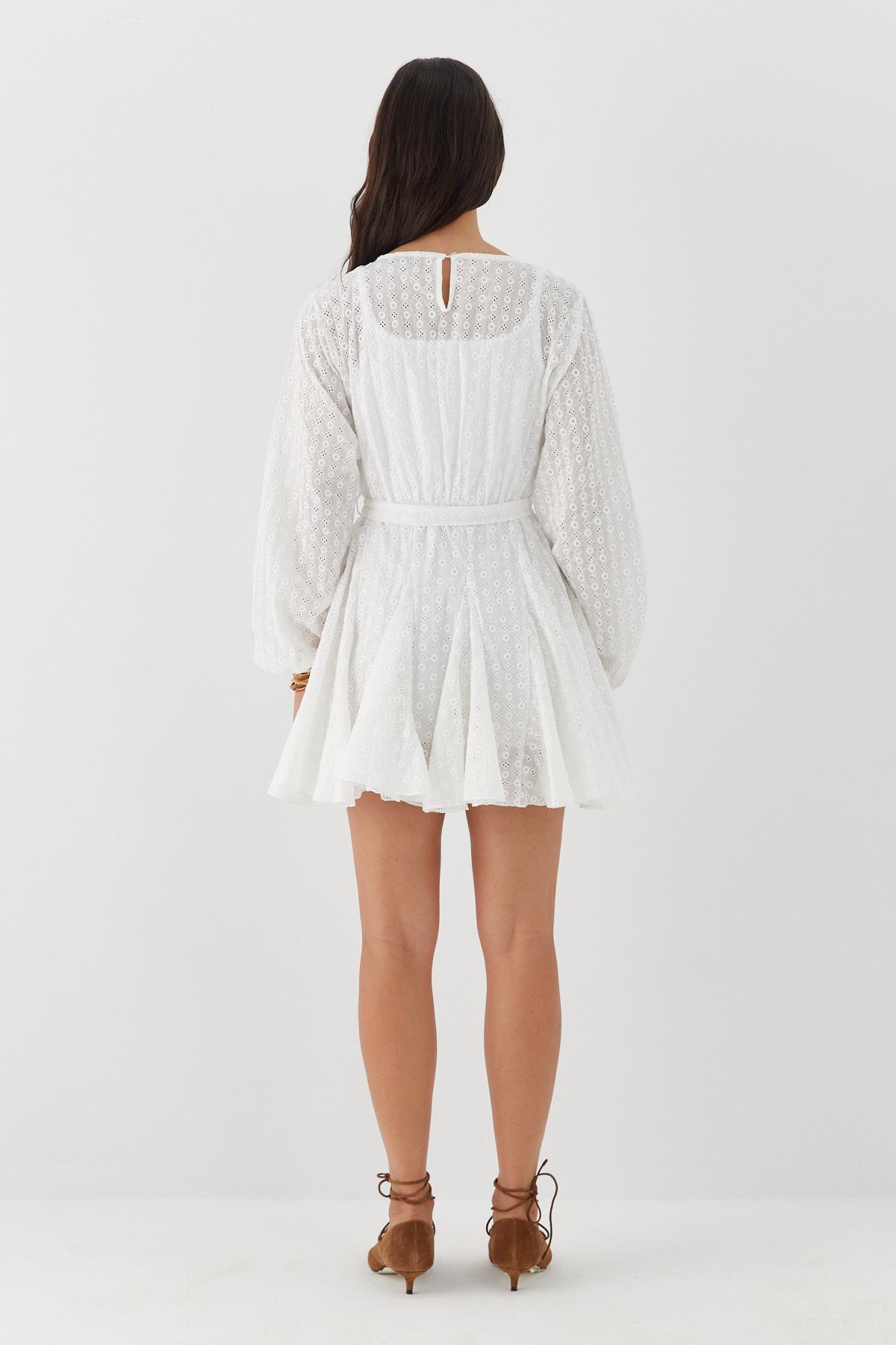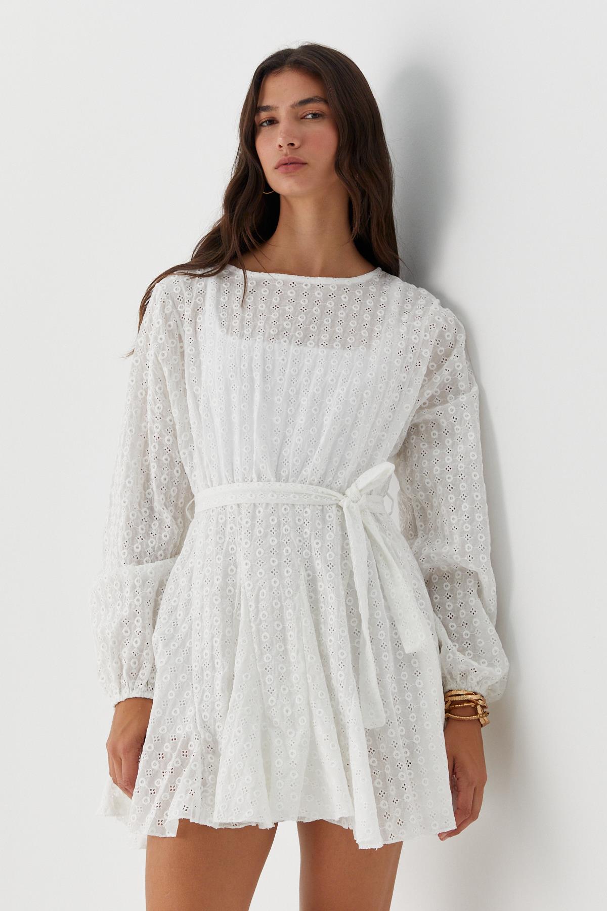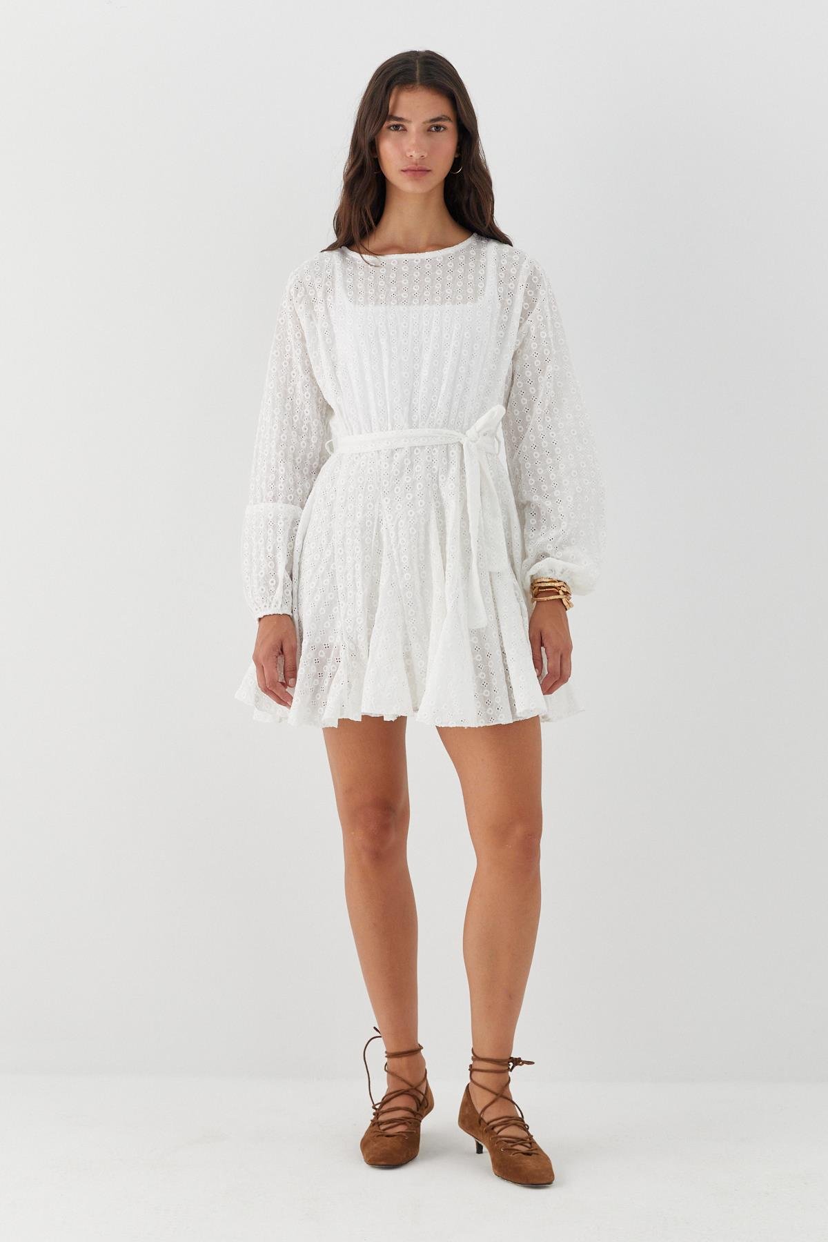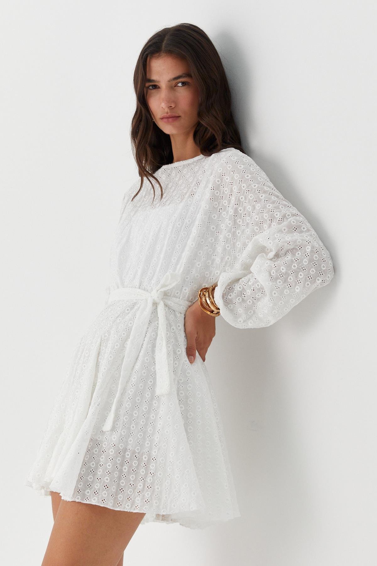 Kemerli Uzun Kollu Fisto Mini Elbise Beyaz (HTF4131_005)