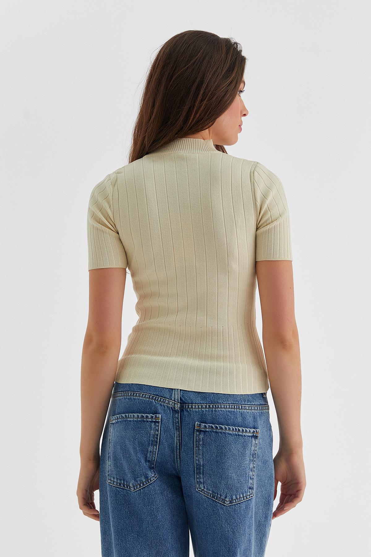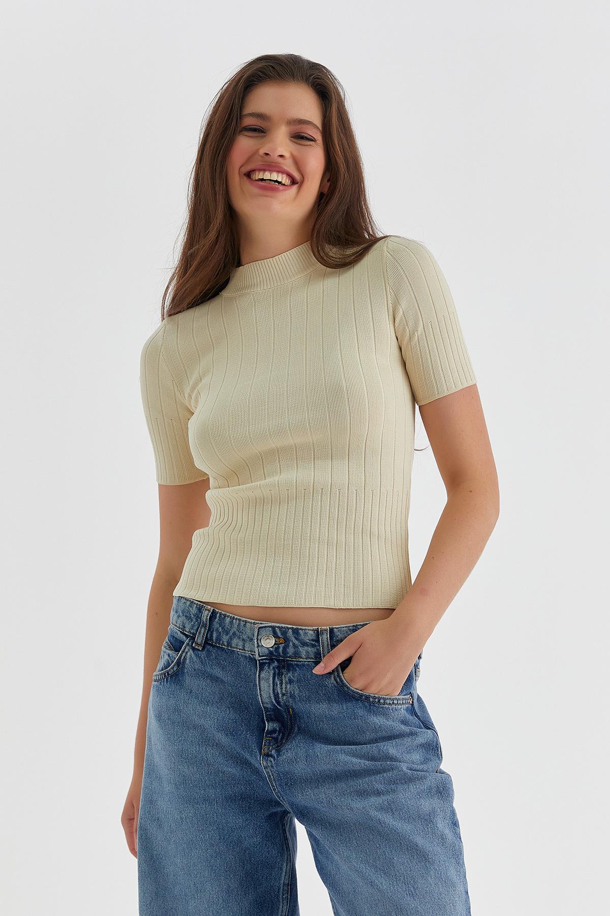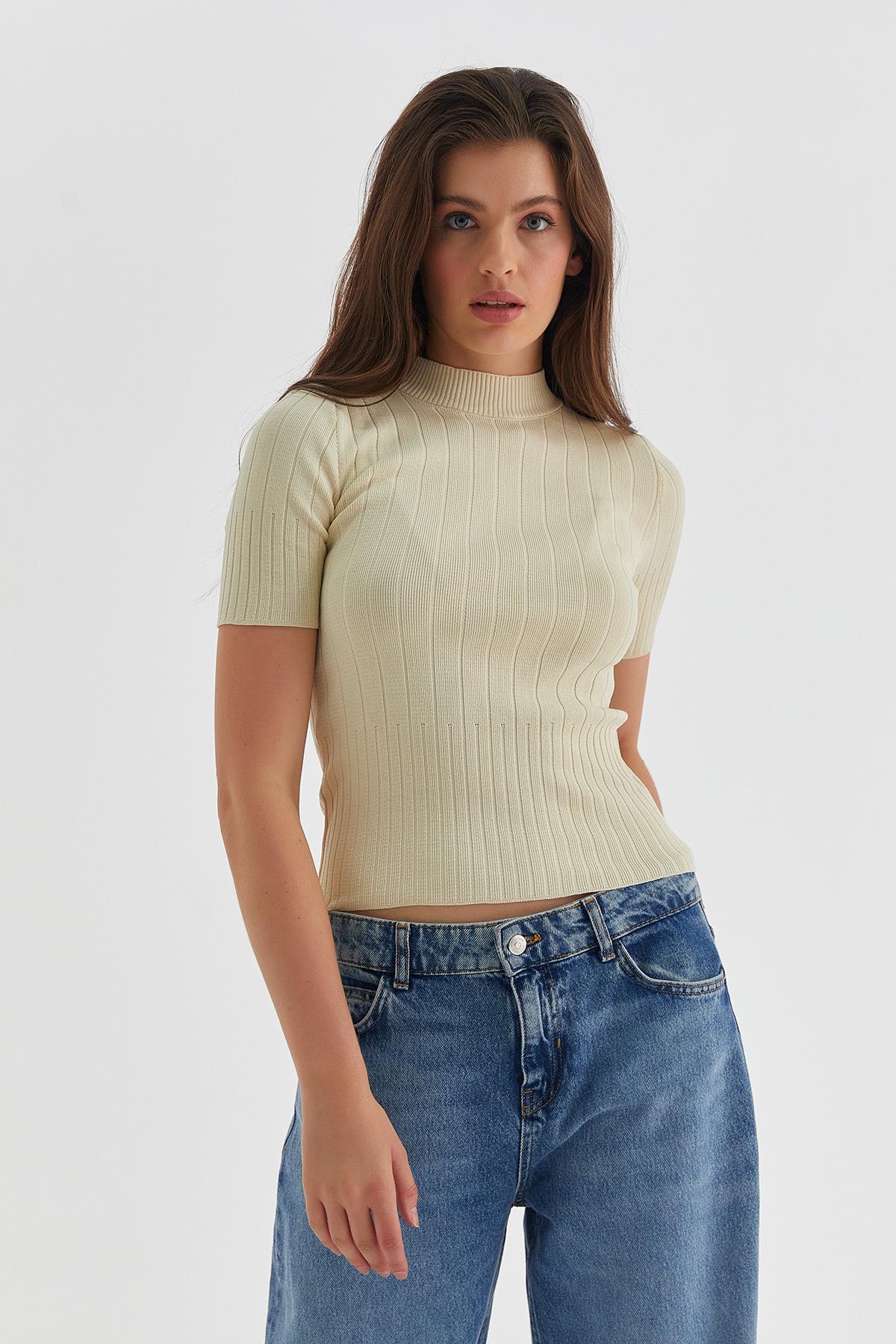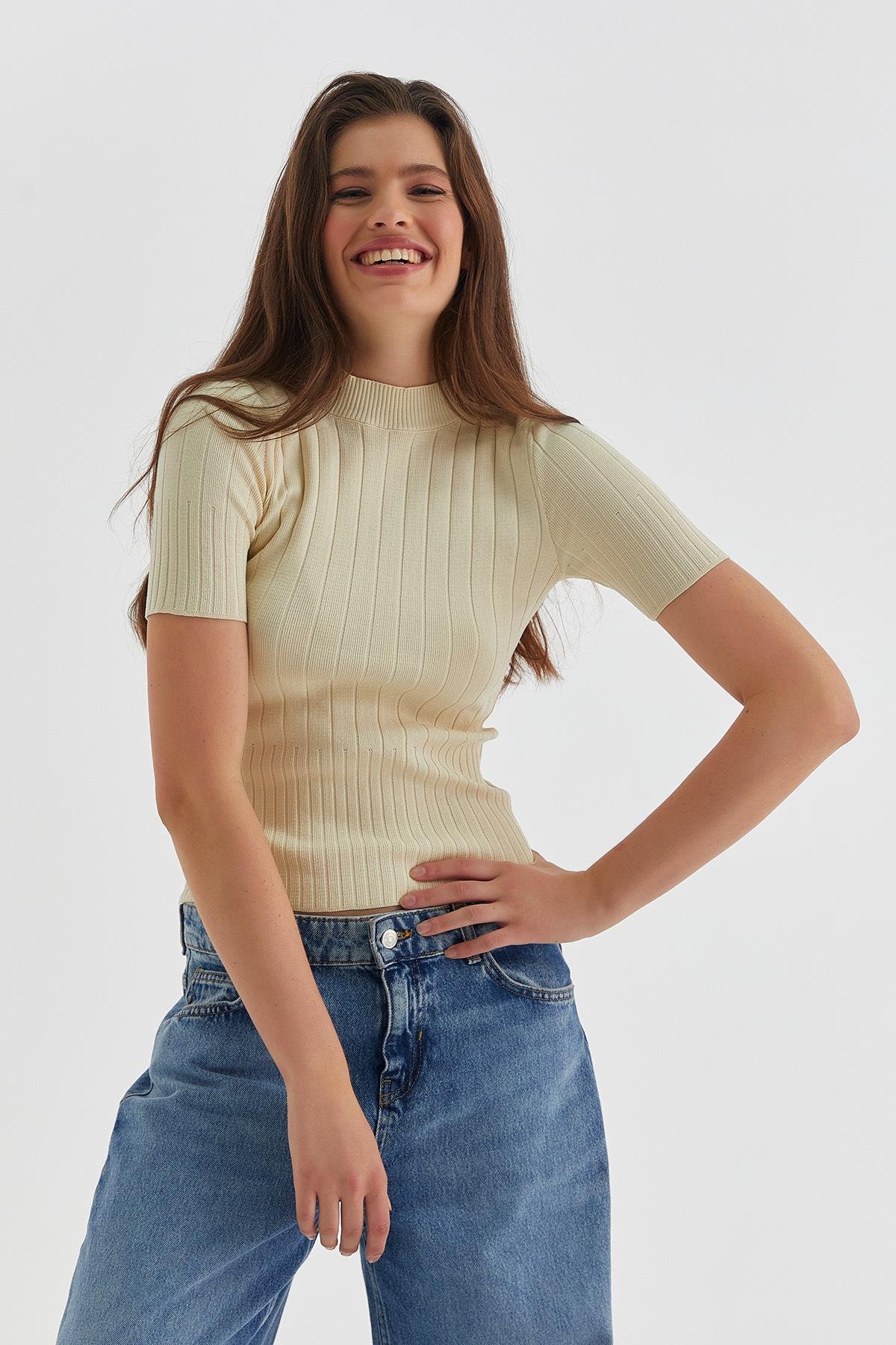 Kısa Kollu Fitilli Triko Kazak Krem (ML005_025)