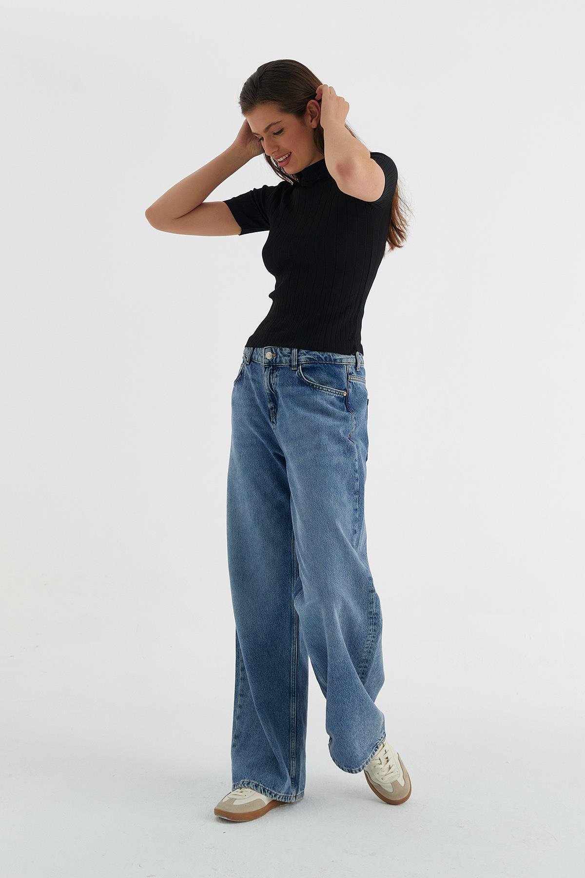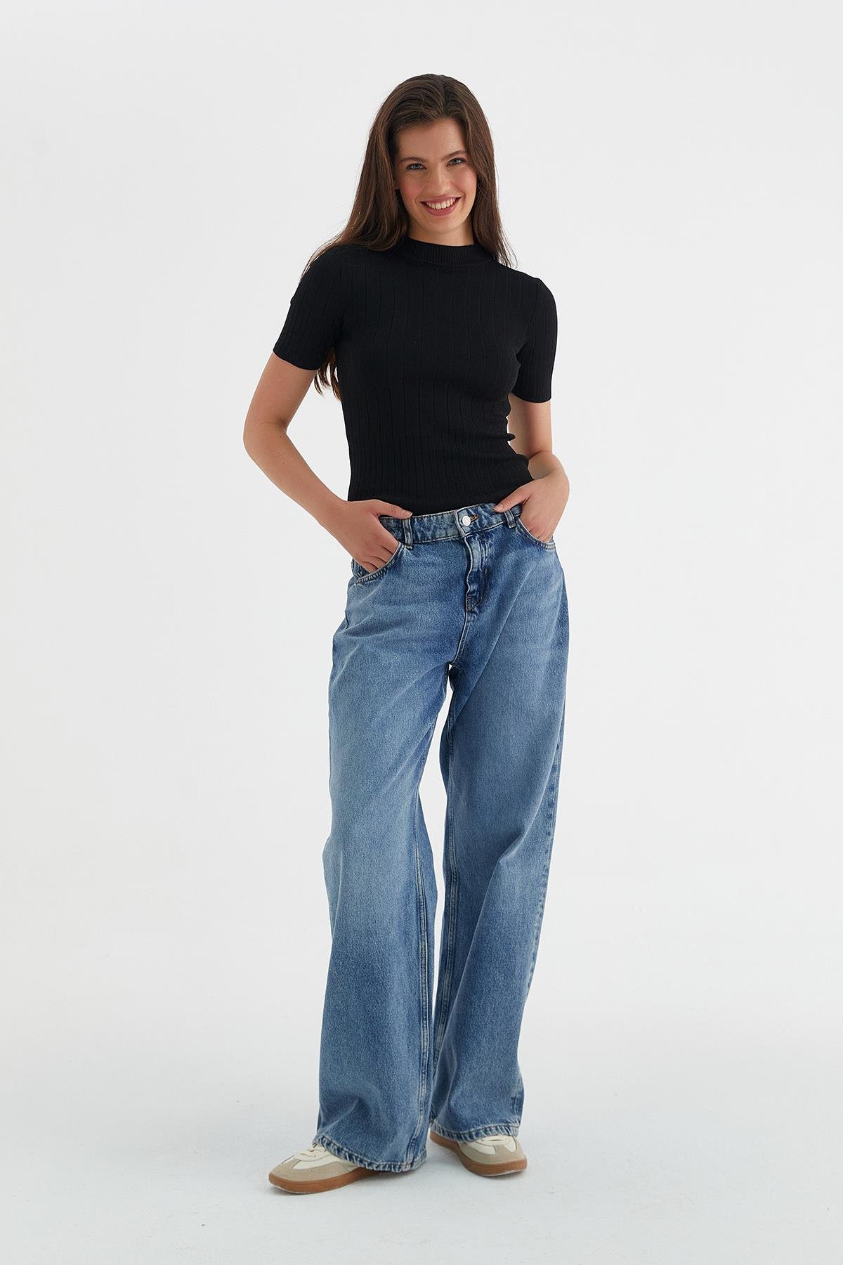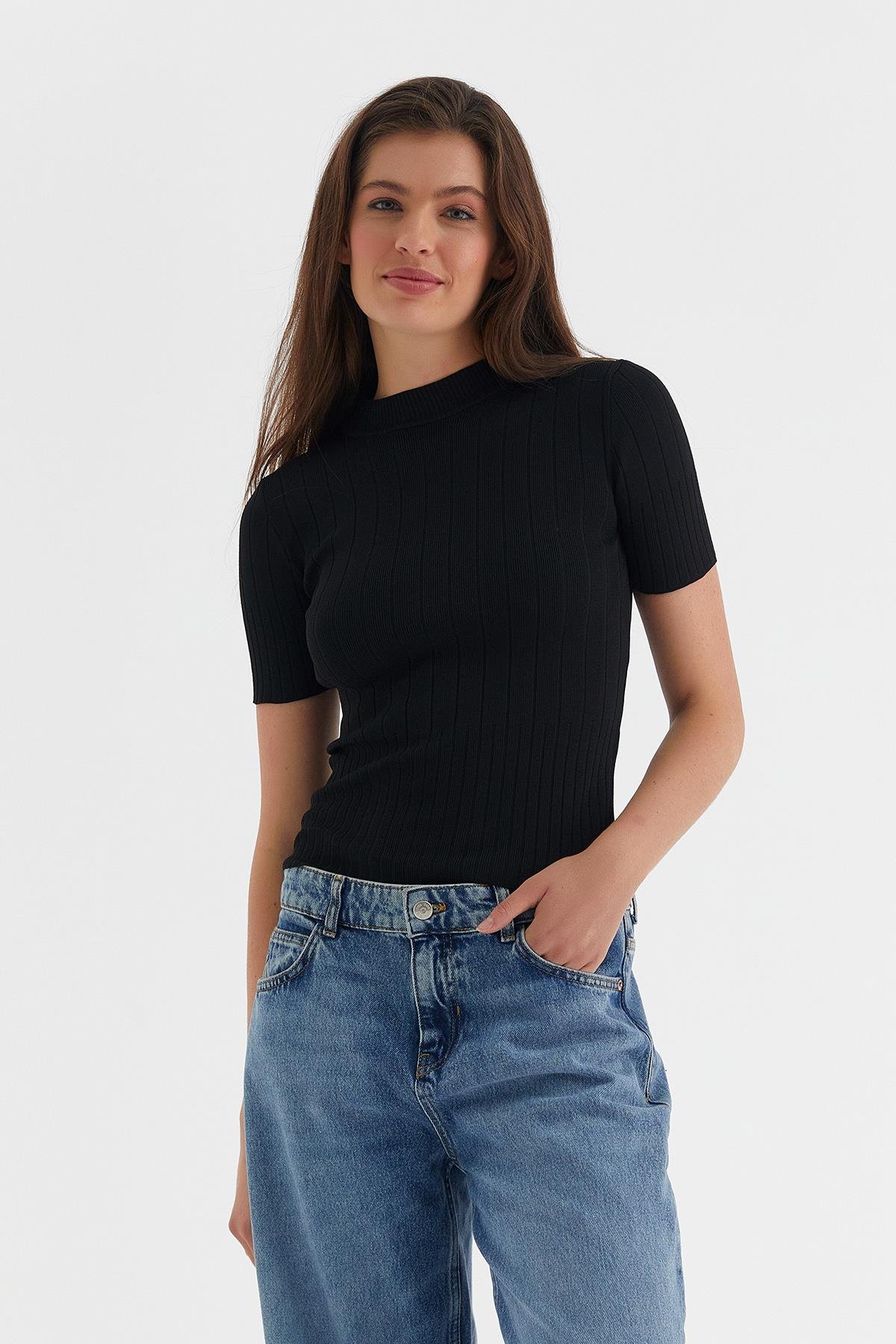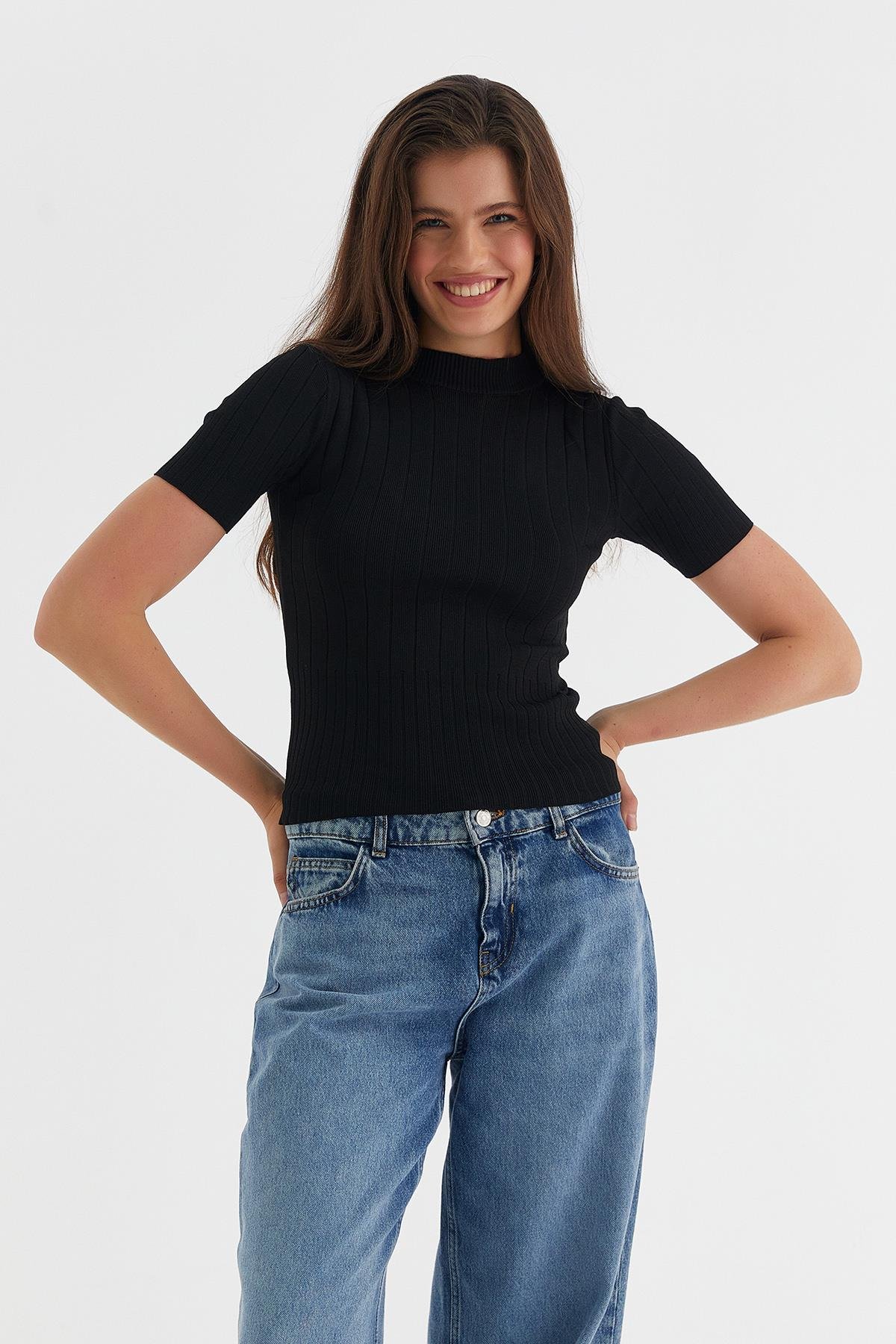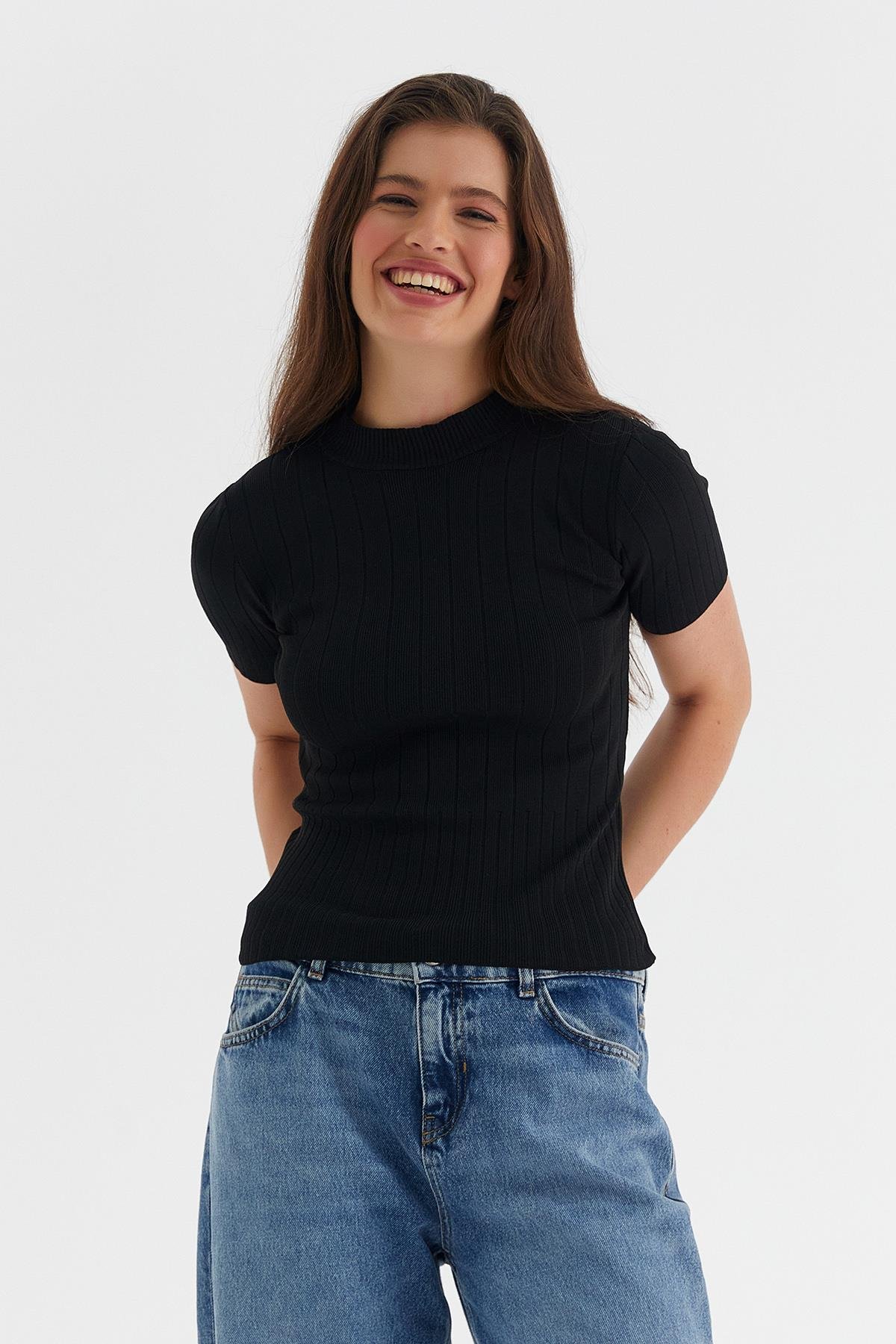 Kısa Kollu Fitilli Triko Kazak Siyah (ML005_001)