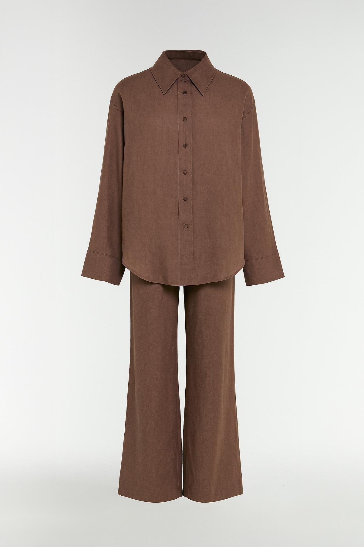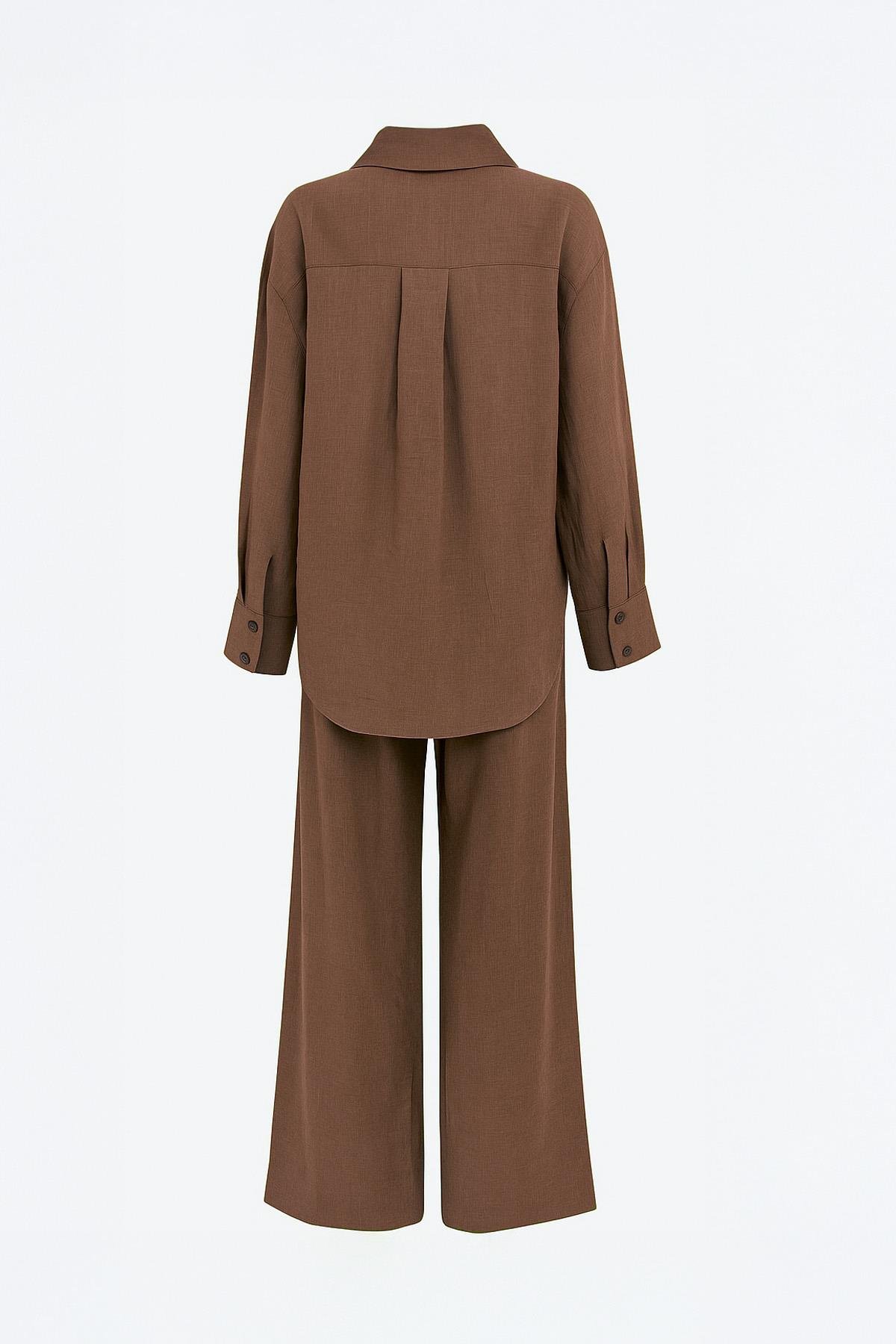 Kol Detaylı Gömlek Pantolon Takım Kahverengi (HTF2059_022)