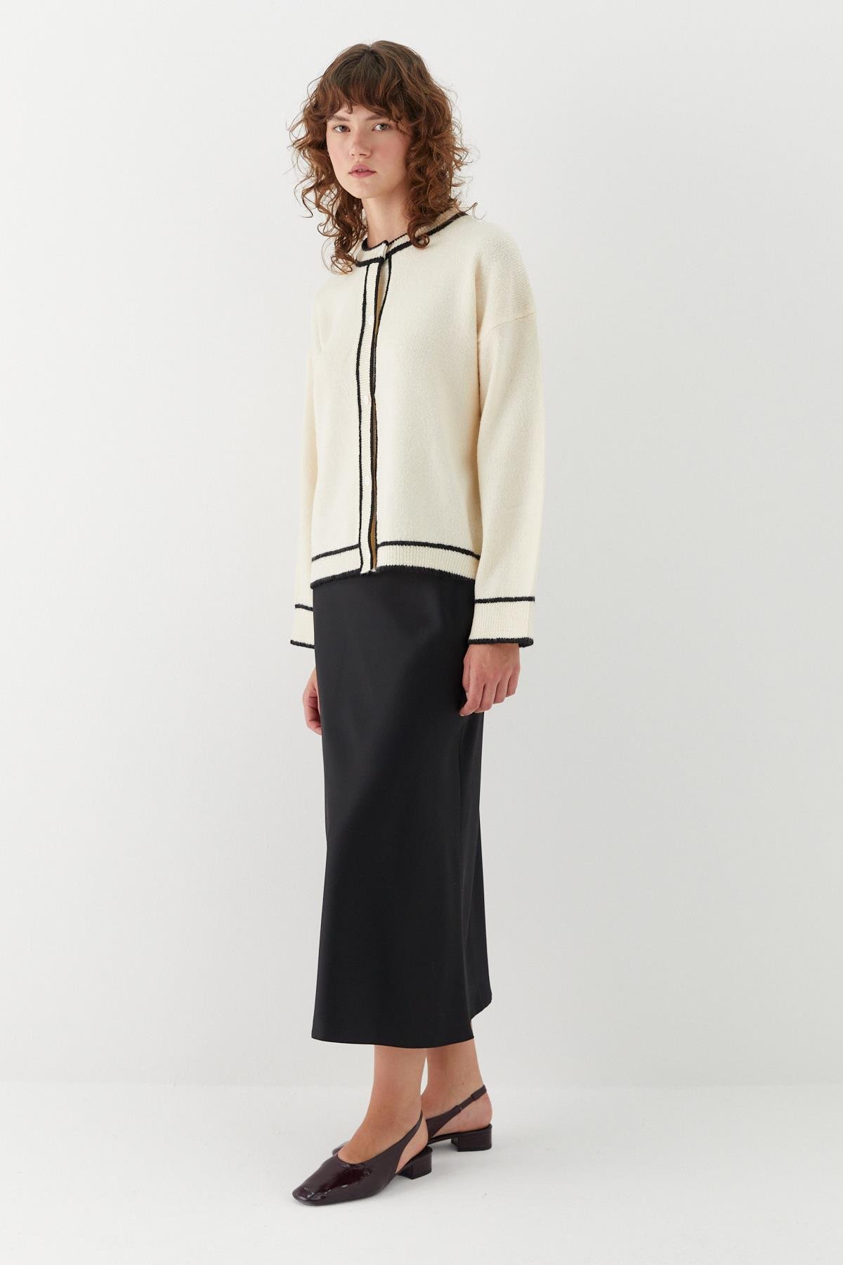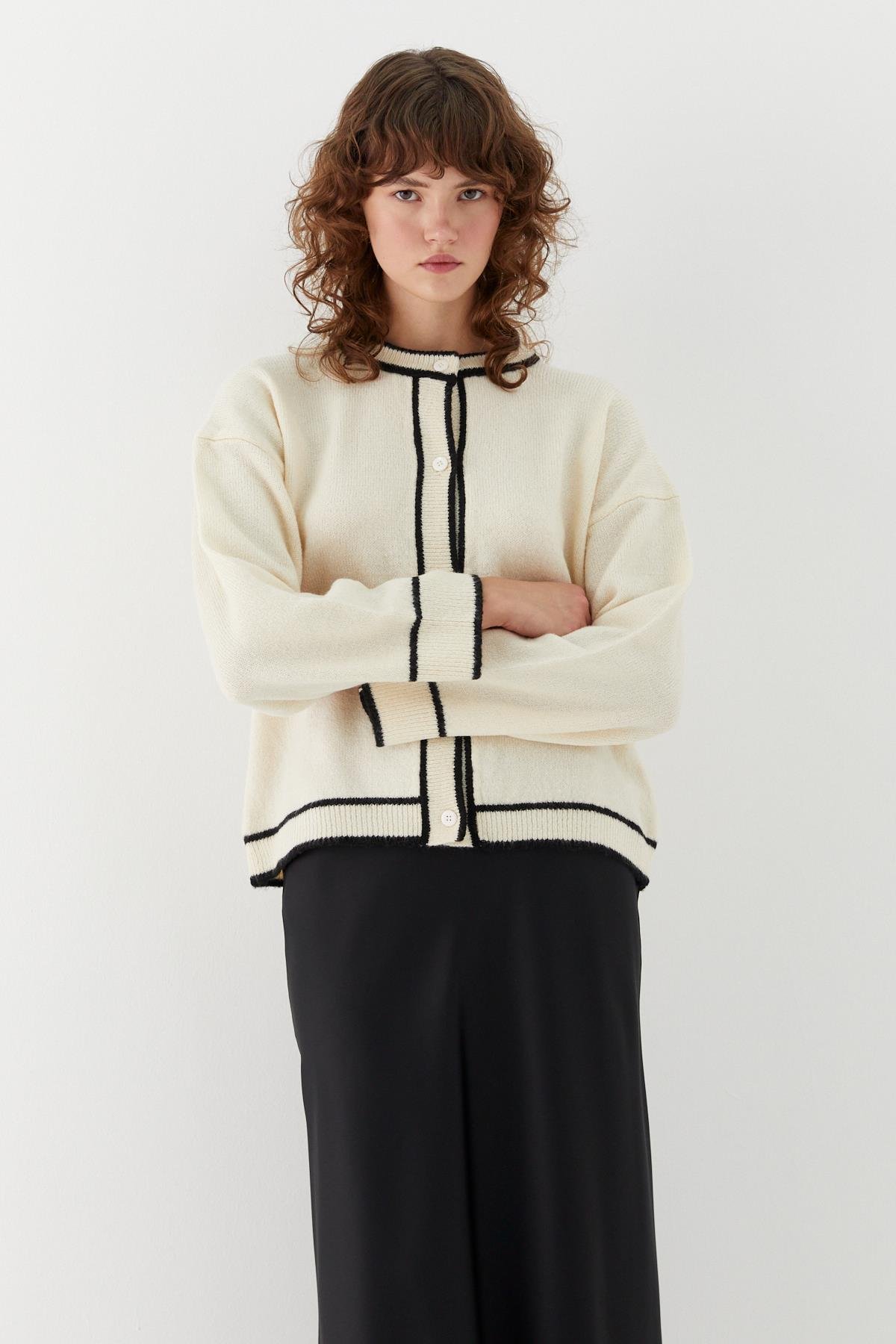 Kontrast Çizgili Şeritli Triko Hırka Krem (MLAW25HRK0006_025)