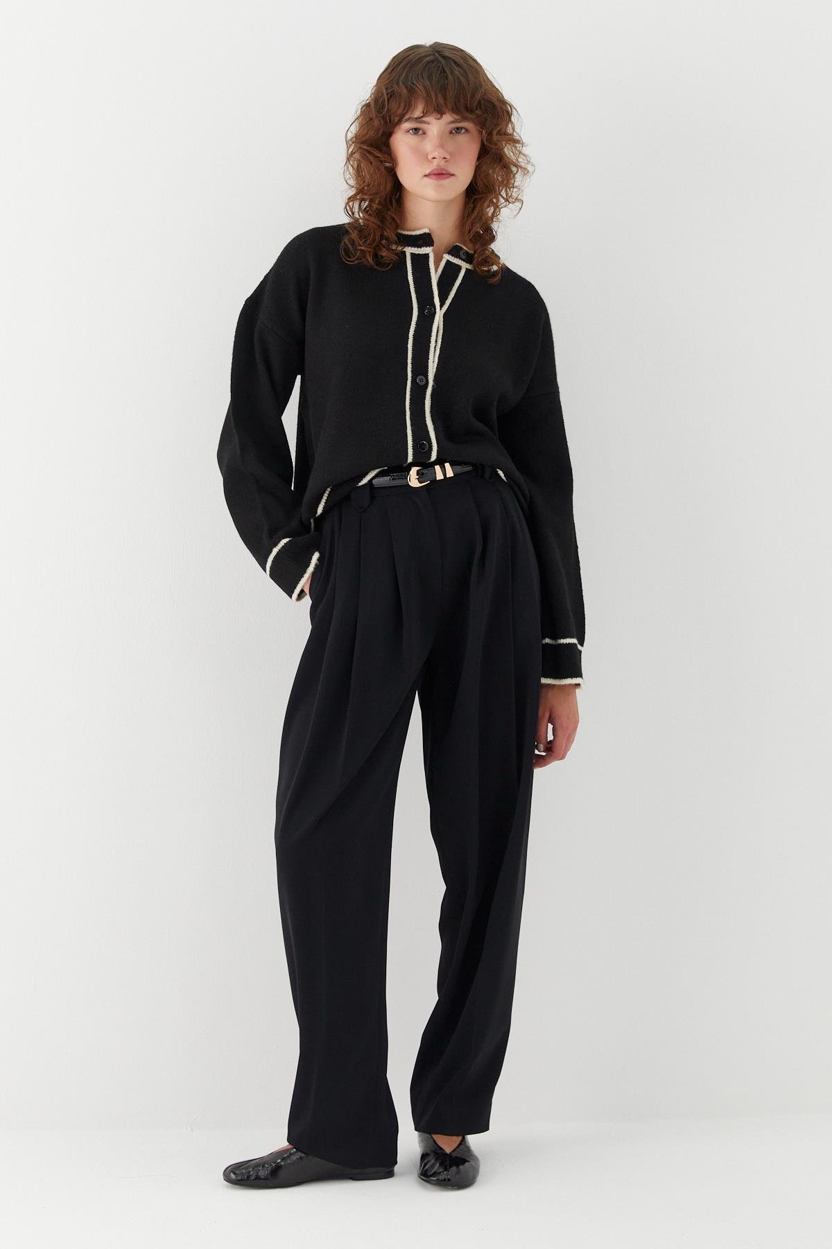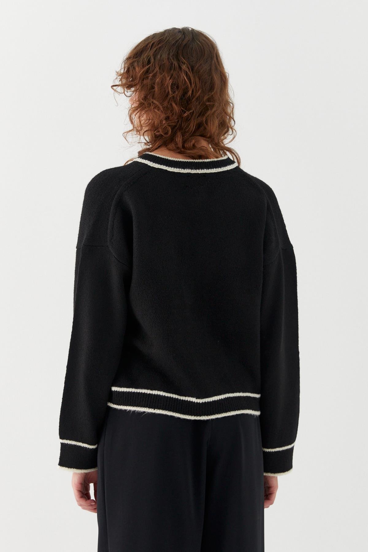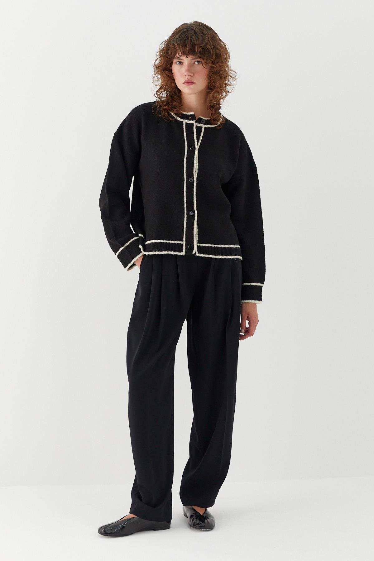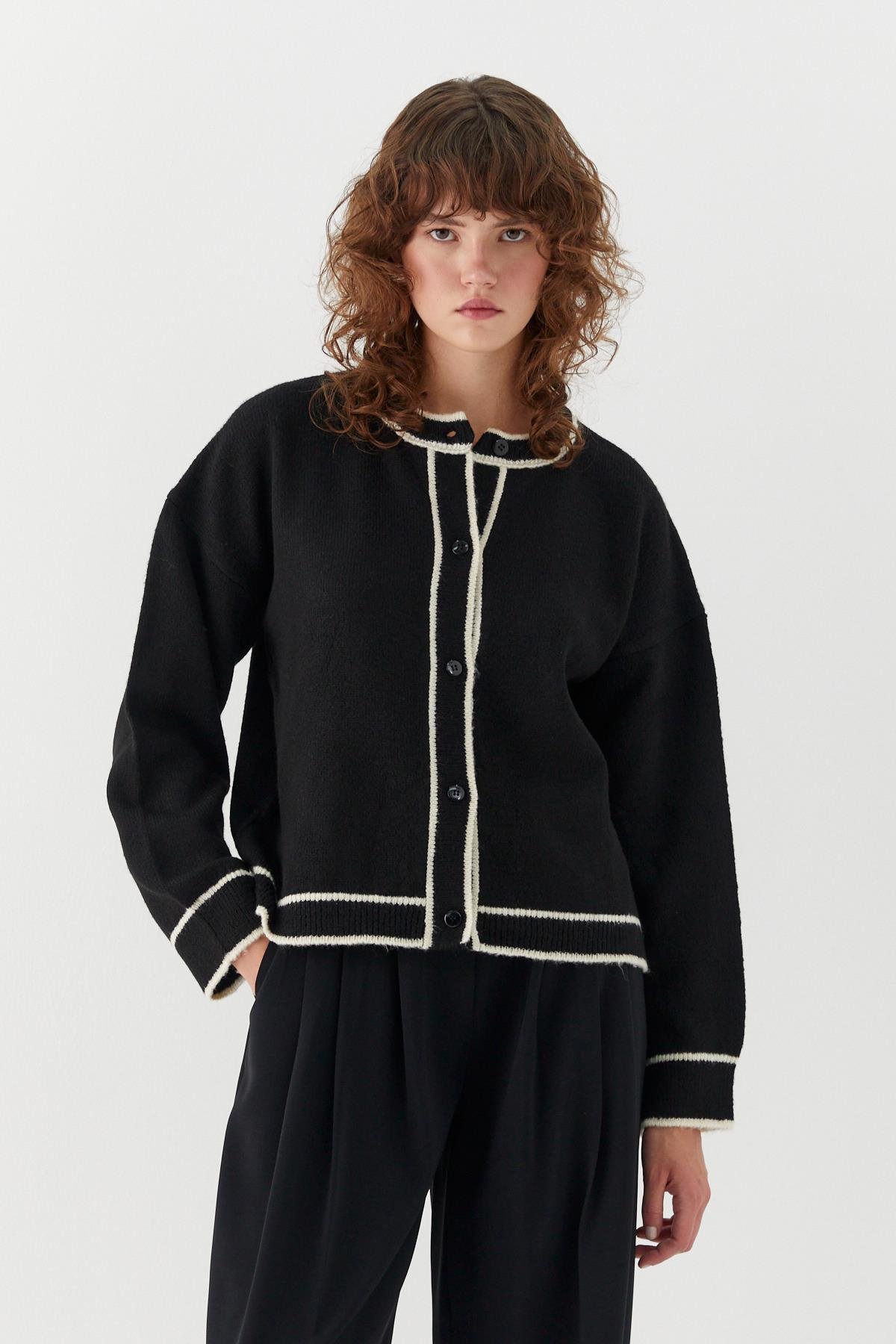 Kontrast Çizgili Şeritli Triko Hırka Siyah (MLAW25HRK0006_001)