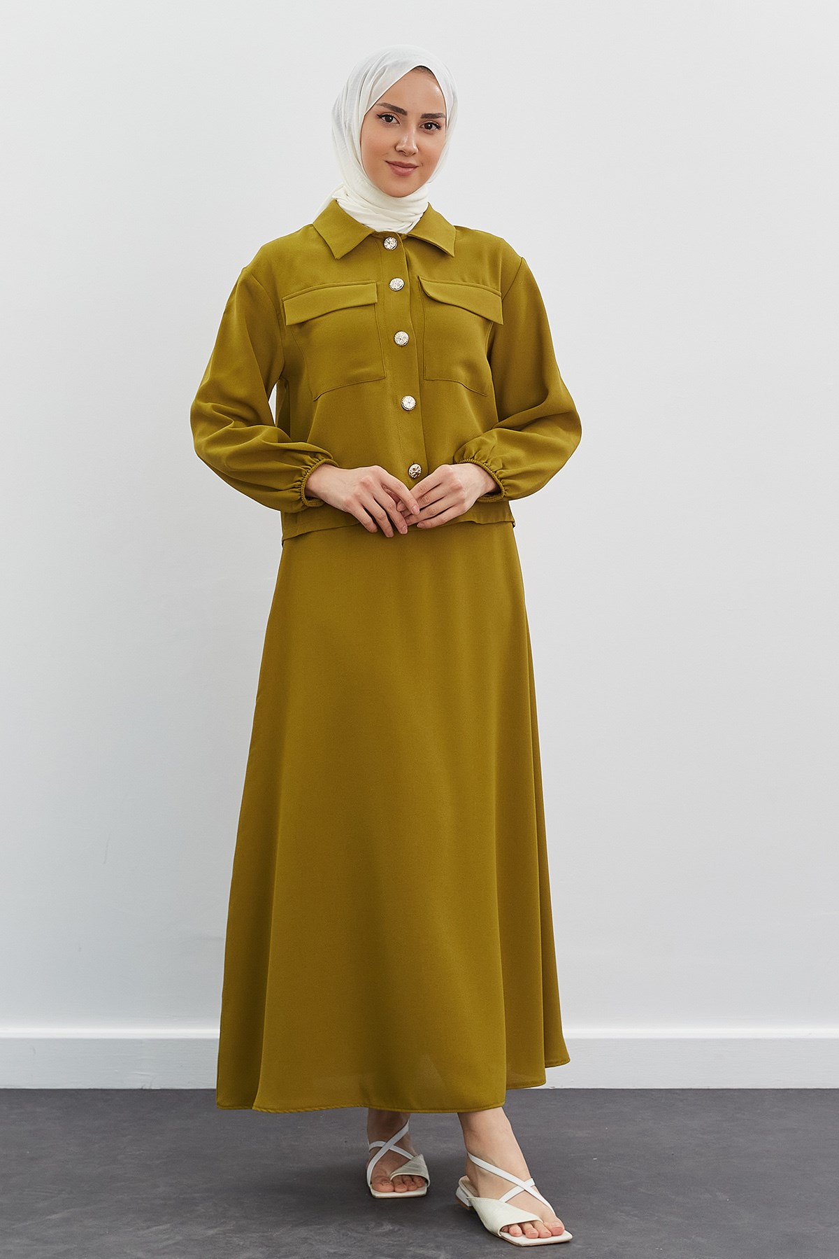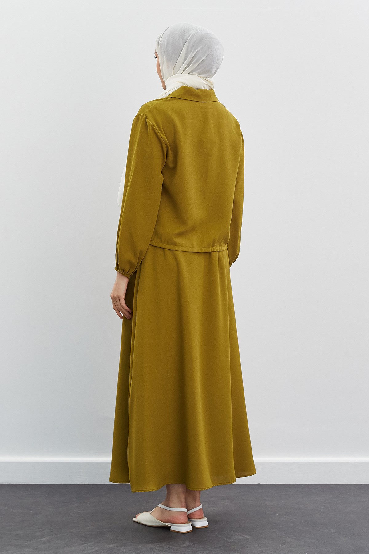 Modelin Ölçüleri: Boy: 173cm Kilo:58 Mankenin üzerindeki ürün (S) bedendir. Üst Boy: 51cm Göğüs: 53cm Omuz Genişliği: 44cm Bel: 52cm Etek Boy: 100cm Bel: 36cm Basen: 57cm Kumaş: Krep Etek beli lastiklidir.