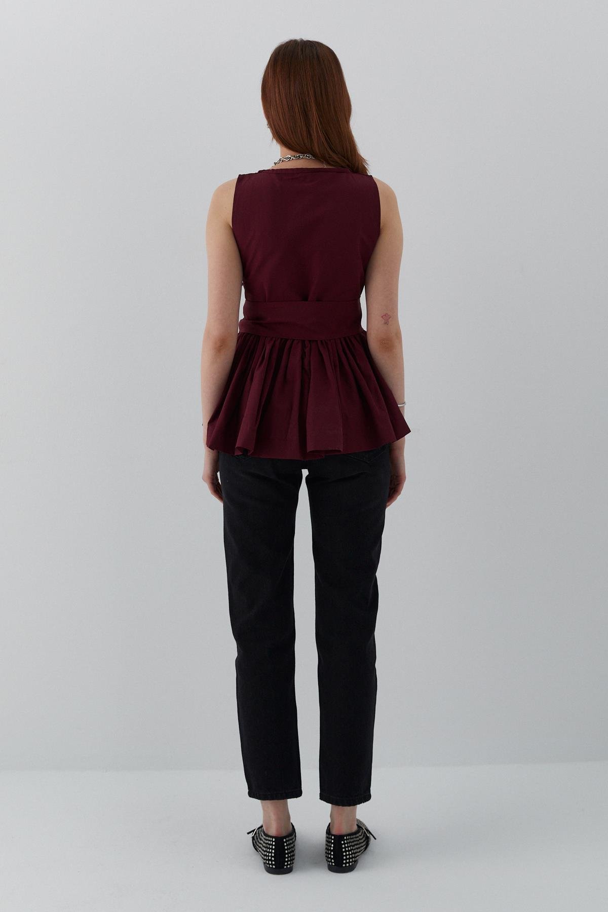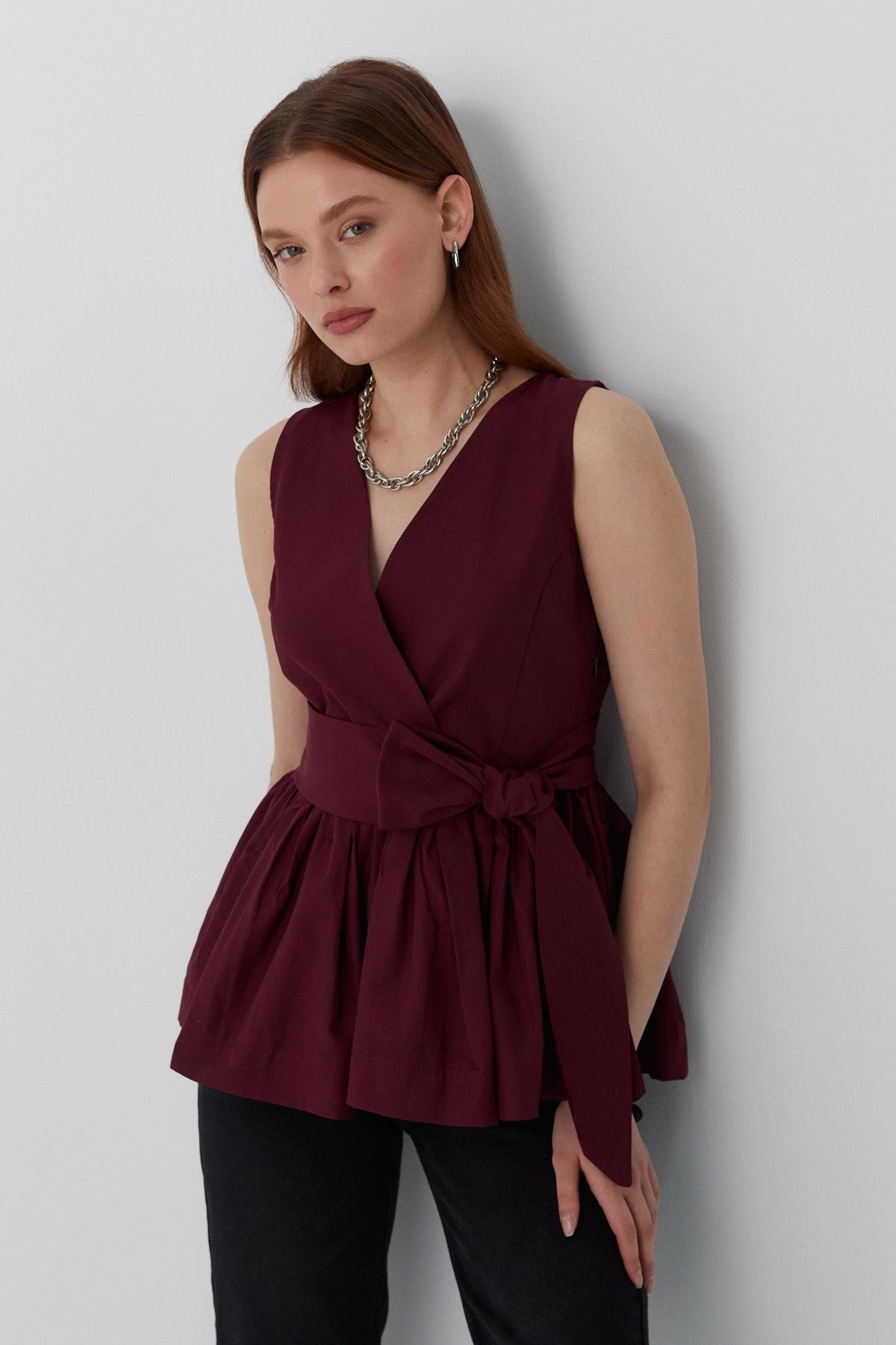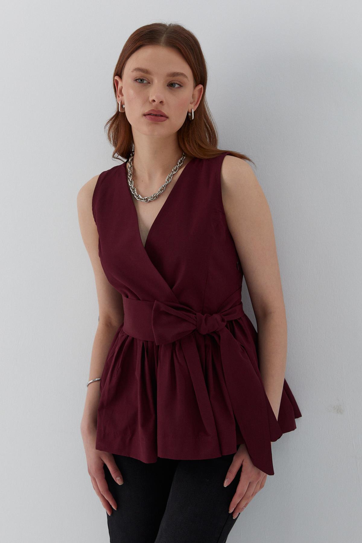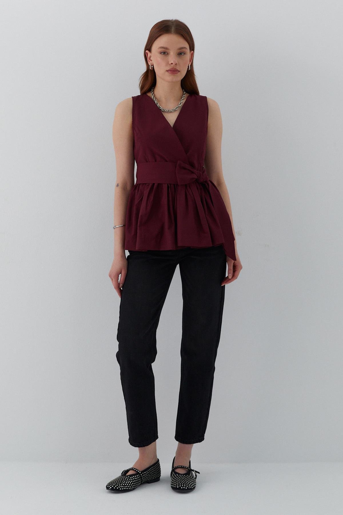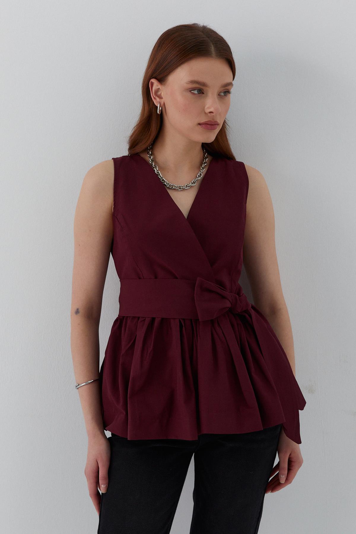 Kuşak Bağlamalı Kolsuz Bluz Bordo (MSY4046_033)