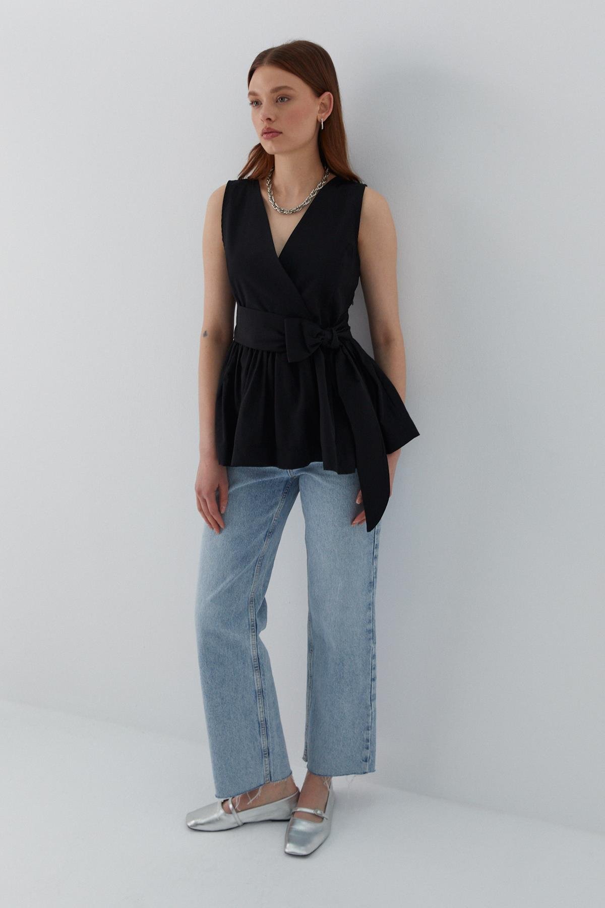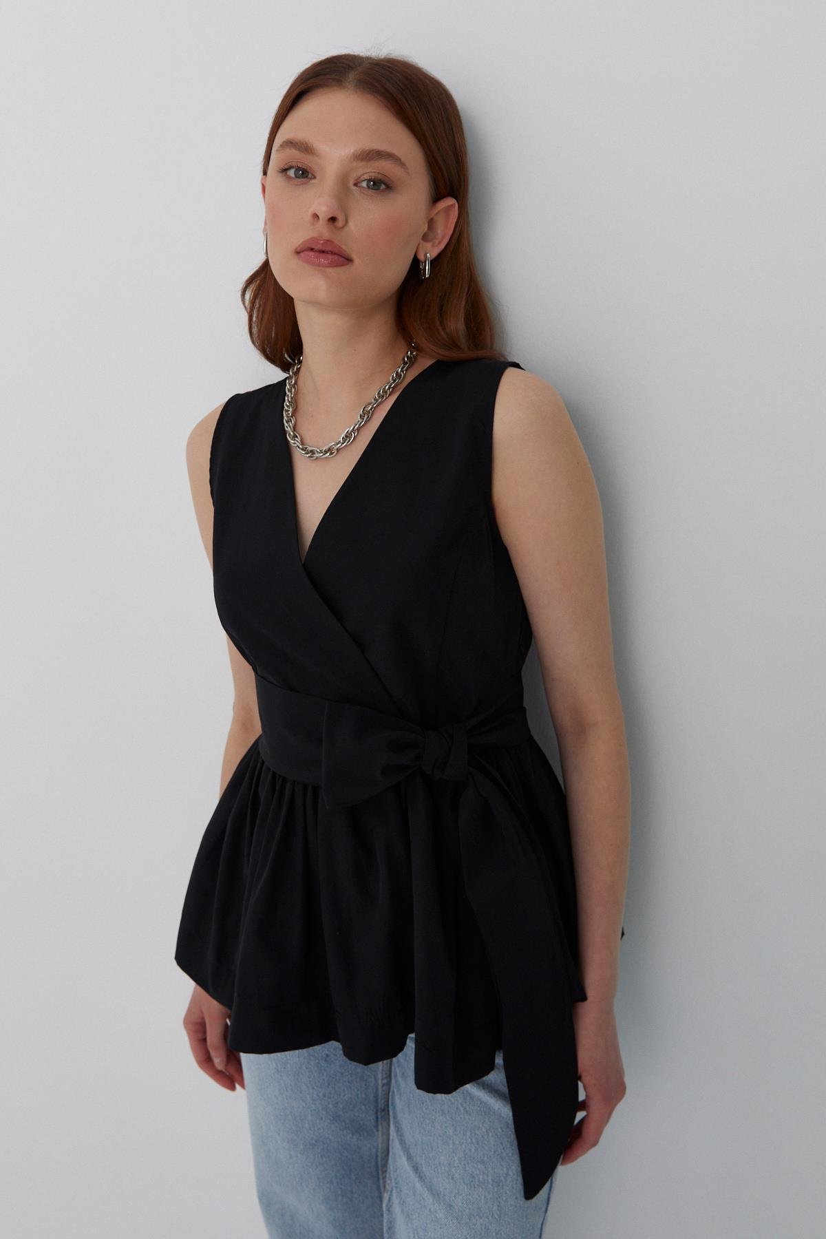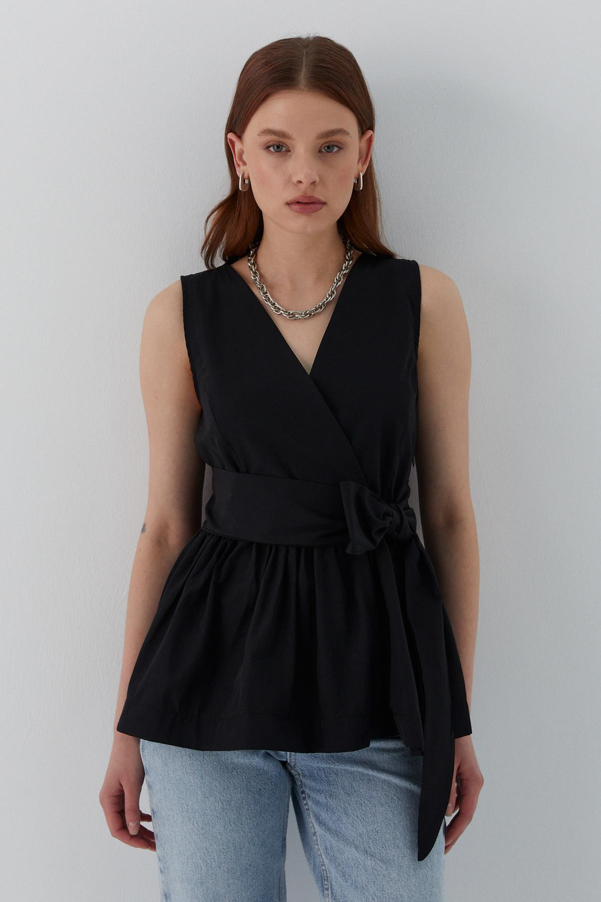 Kuşak Bağlamalı Kolsuz Bluz Siyah (MSY4046_001)
