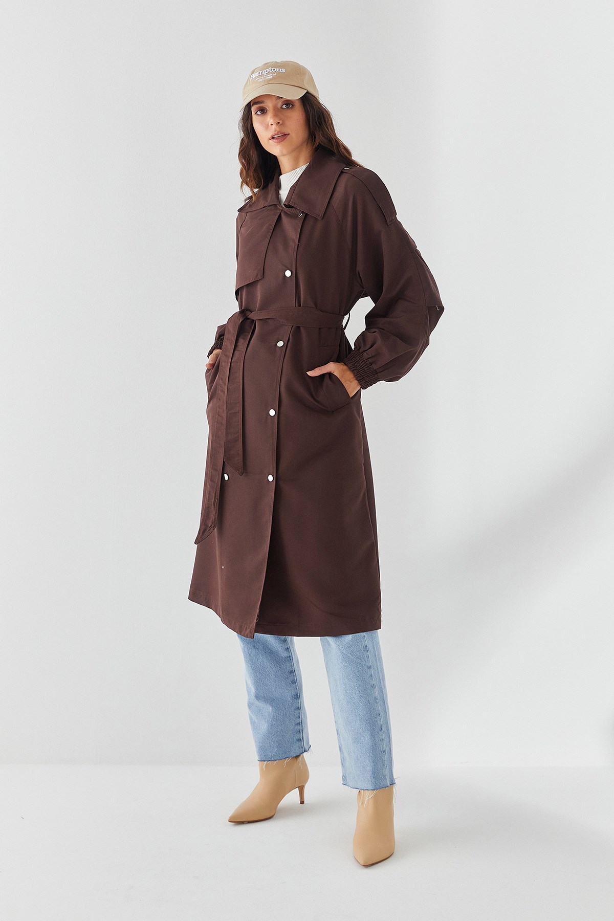 Modelin Ölçüleri: Boy: 175cm , Göğüs: 84 cm, Bel: 62cmdir, Kalça: 94cmdir. Mankenin üzerindeki ürün STD bedendir. Boy: Boy:100cm Omuz Genişliği:47cm Kol boyu: 56cm Göğüs: 63cm Bel:67cm Basen:68cm Kemer boyu:173 Kemer genişliği: 4.5 cm ( seyyar kemerli- astarsız)