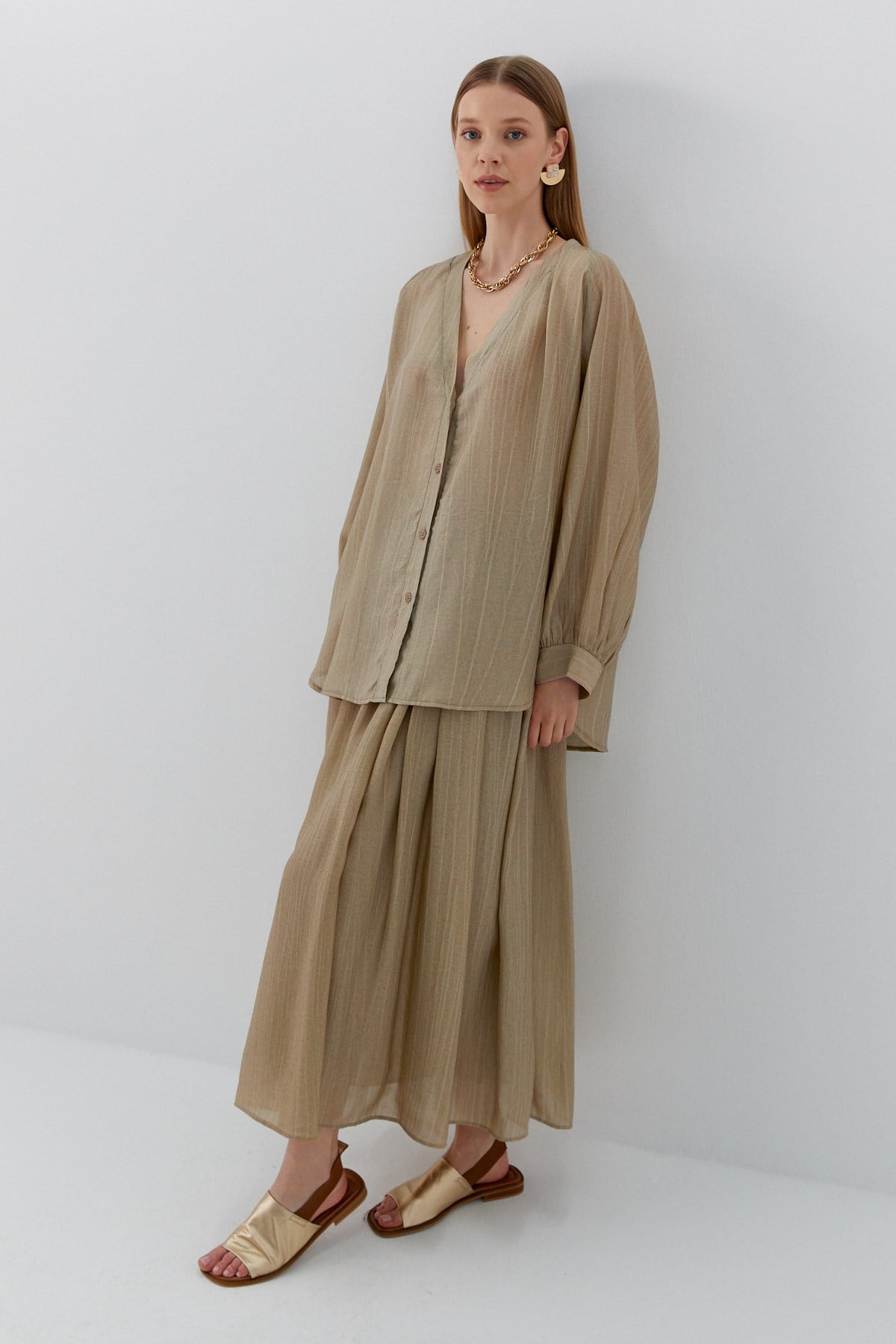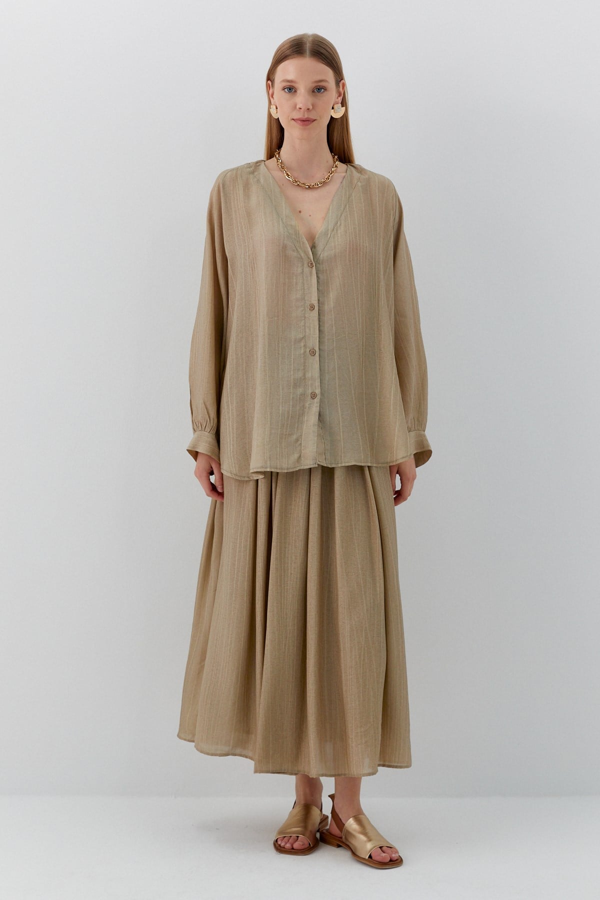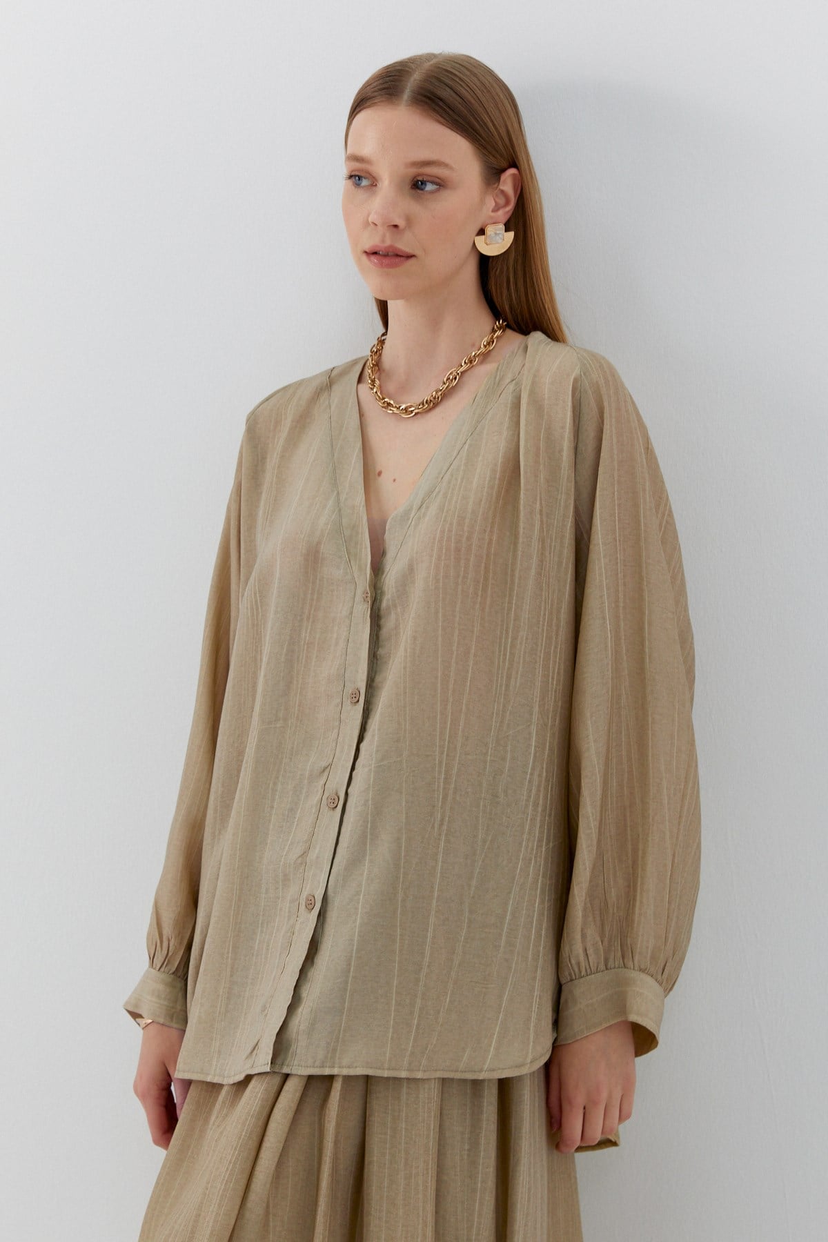 Oversize V Yaka Gömlek Çağla (FN9088_017)