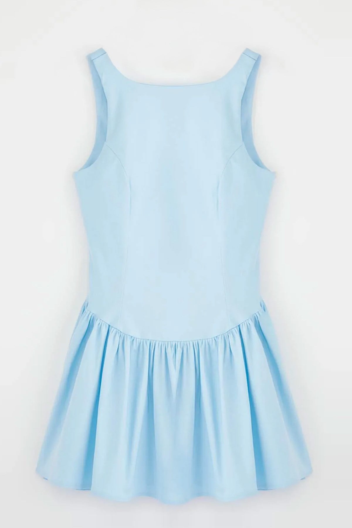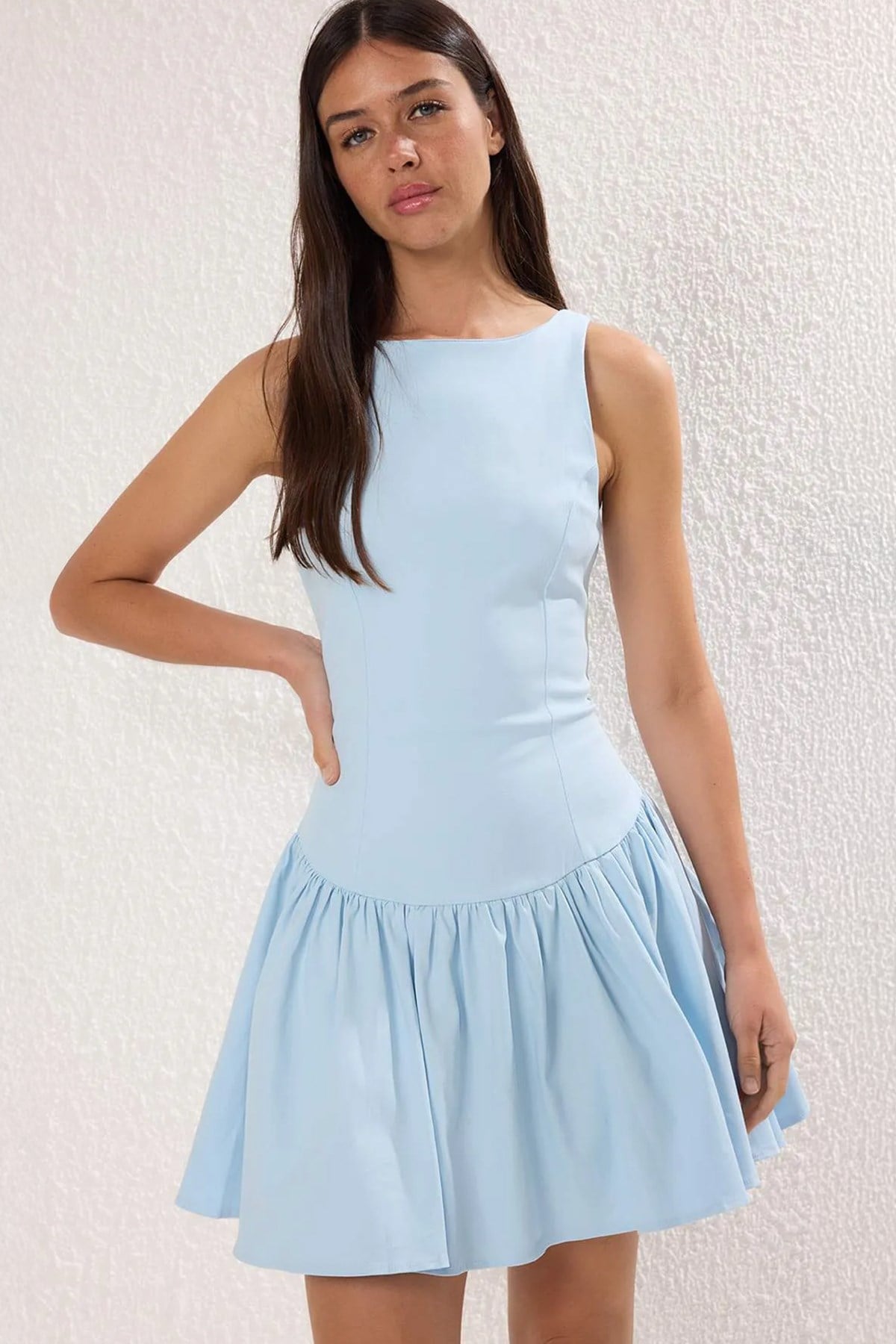 Pileli Kısa Elbise Mavi (HTF4143_003)