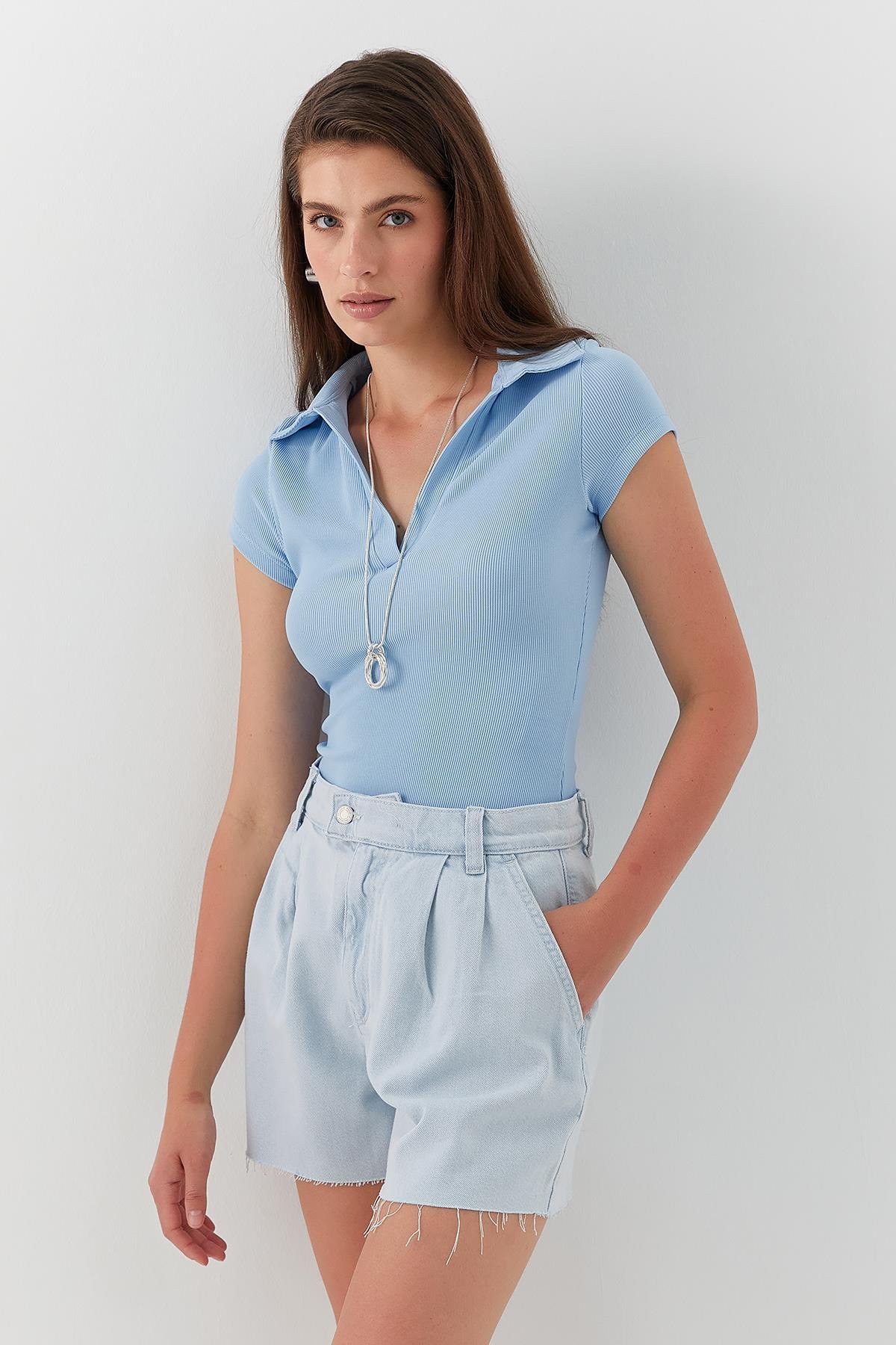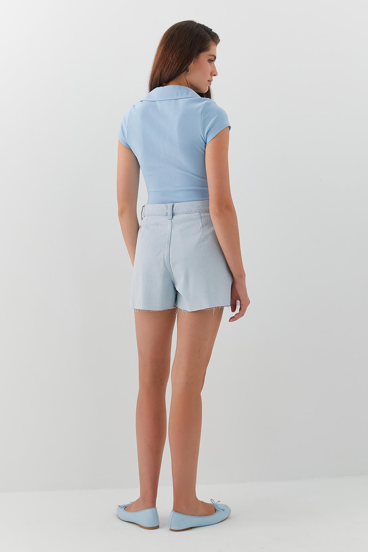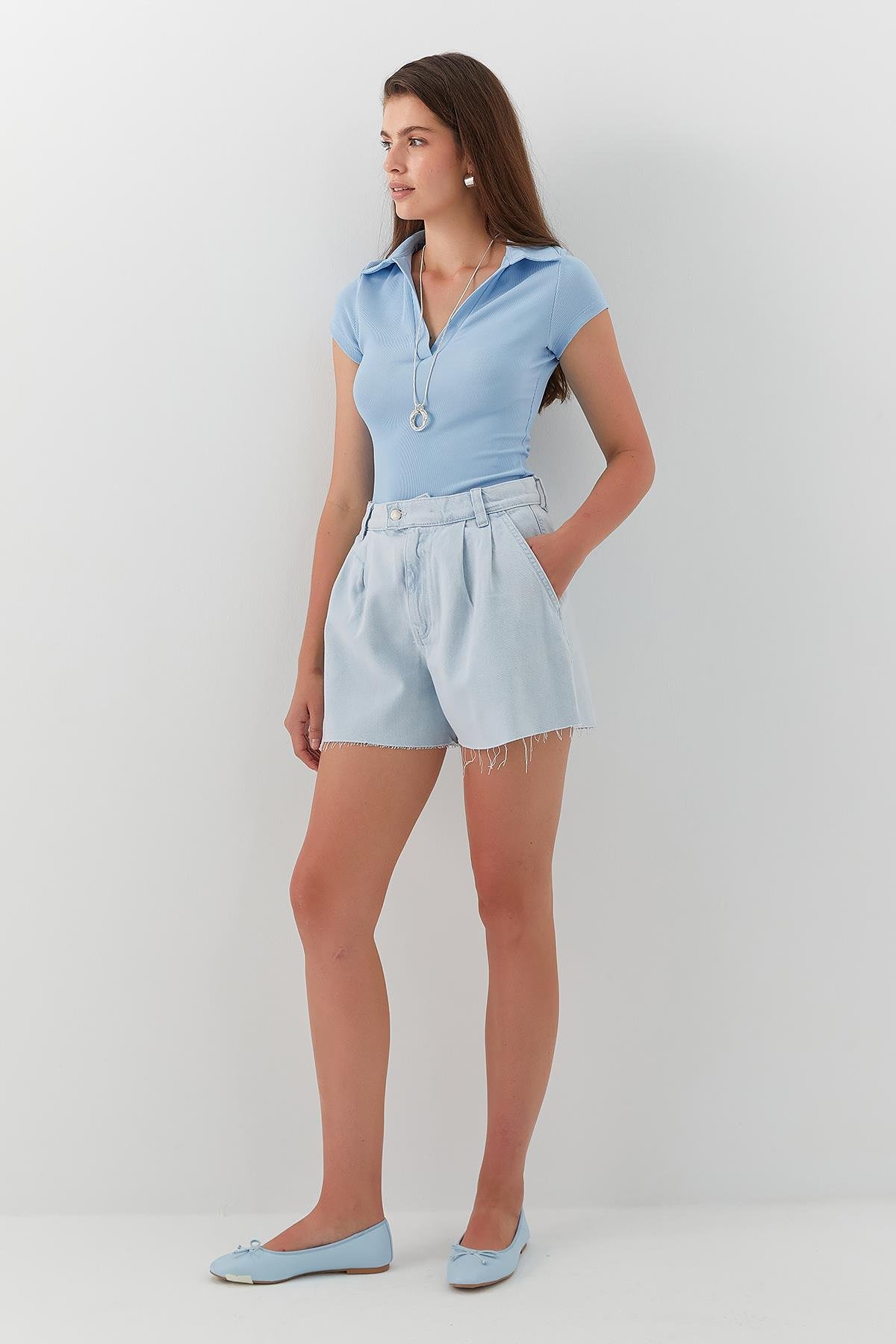 Pileli Yüksek Bel Şort Mavi (MSD0079_003)