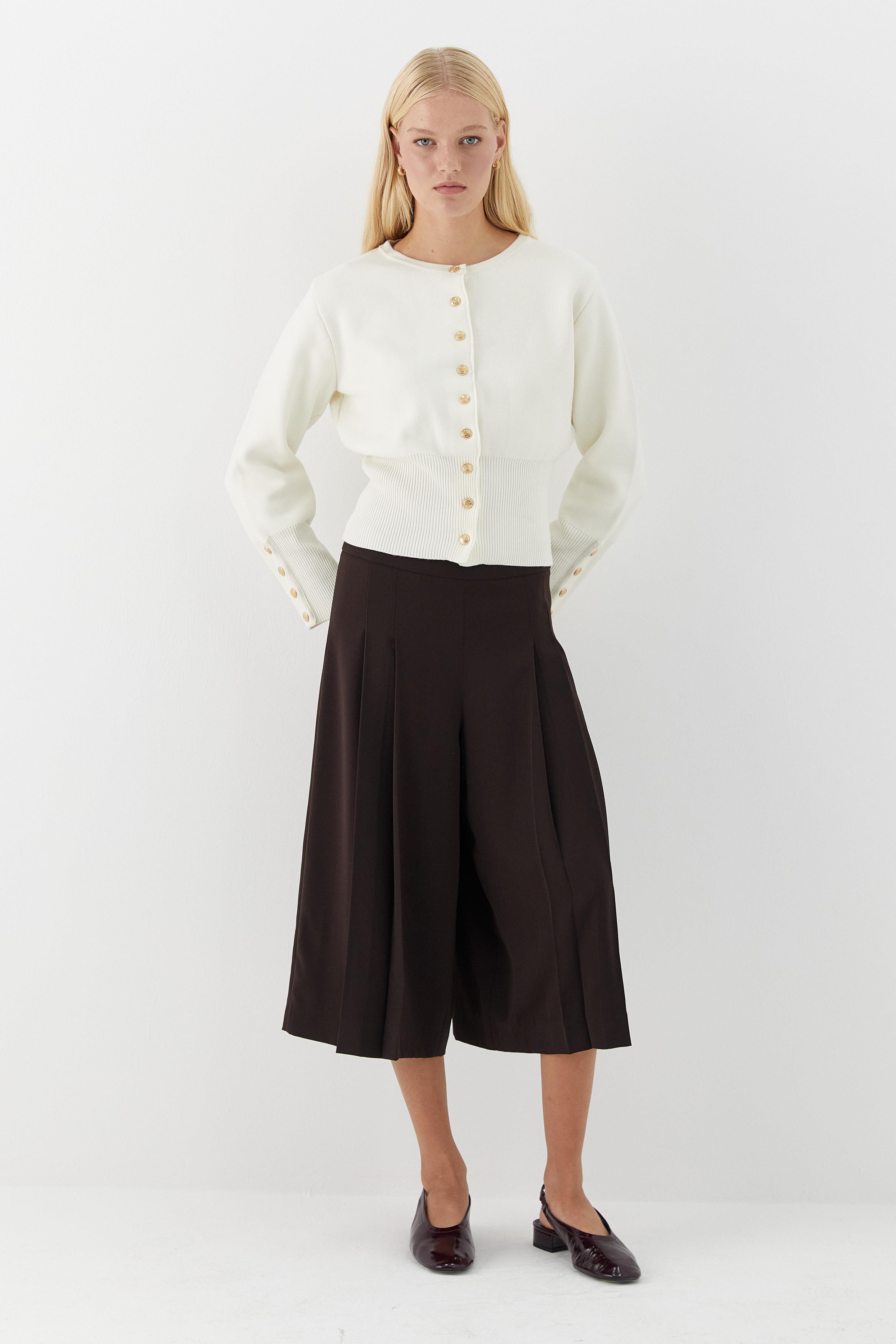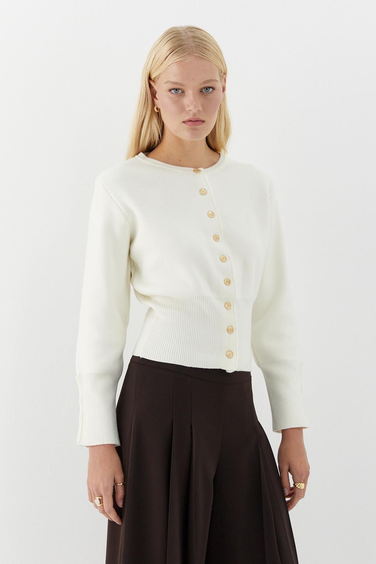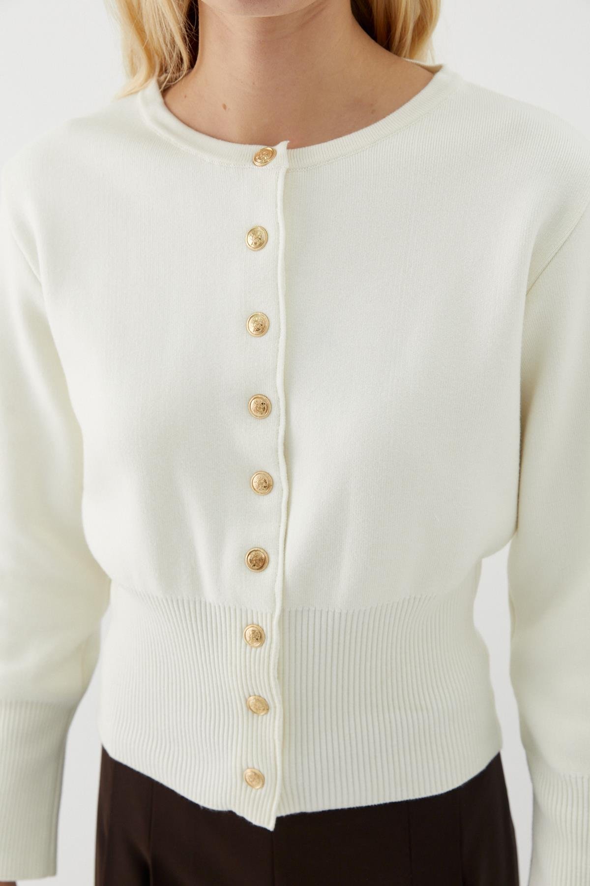 Premium Ribana Detaylı Triko Hırka Ekru (MLAW25HRK0001_019)
