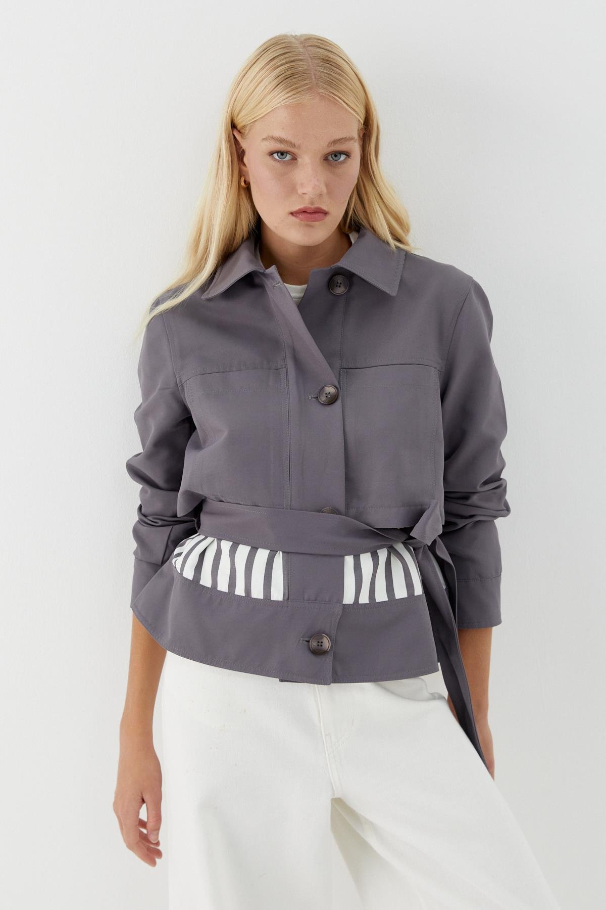 Şerit Detaylı Kuşaklı Ceket Antrasit (BGN0112_036)