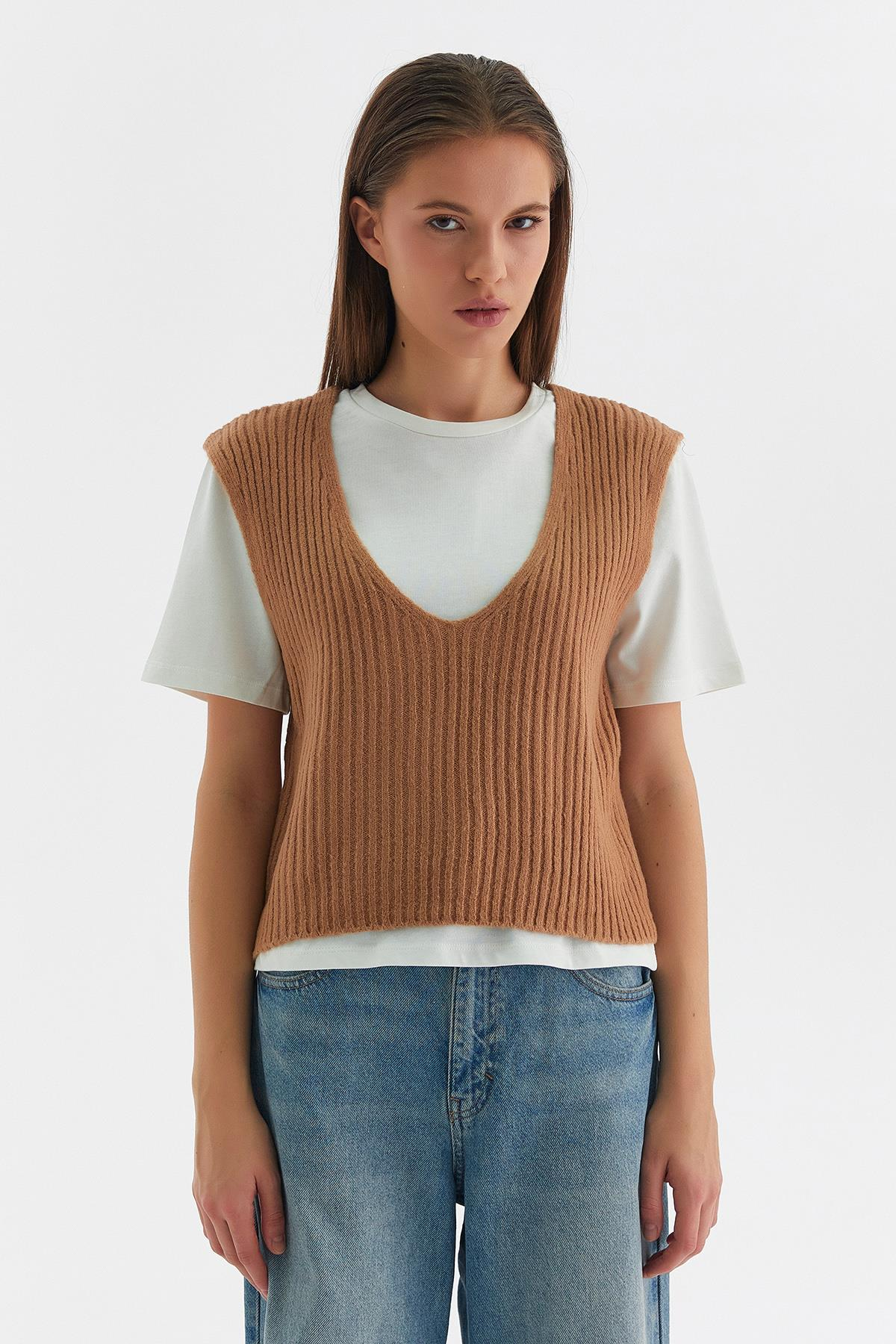 Süveterli Penye T-shirt Kahverengi (KLN2908_022)