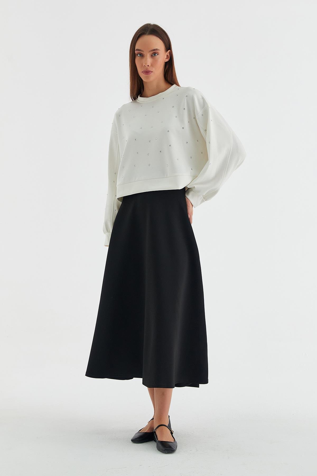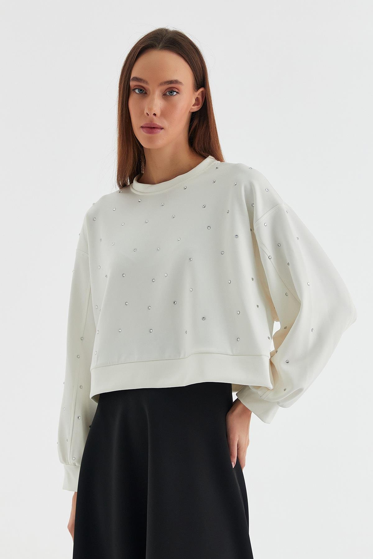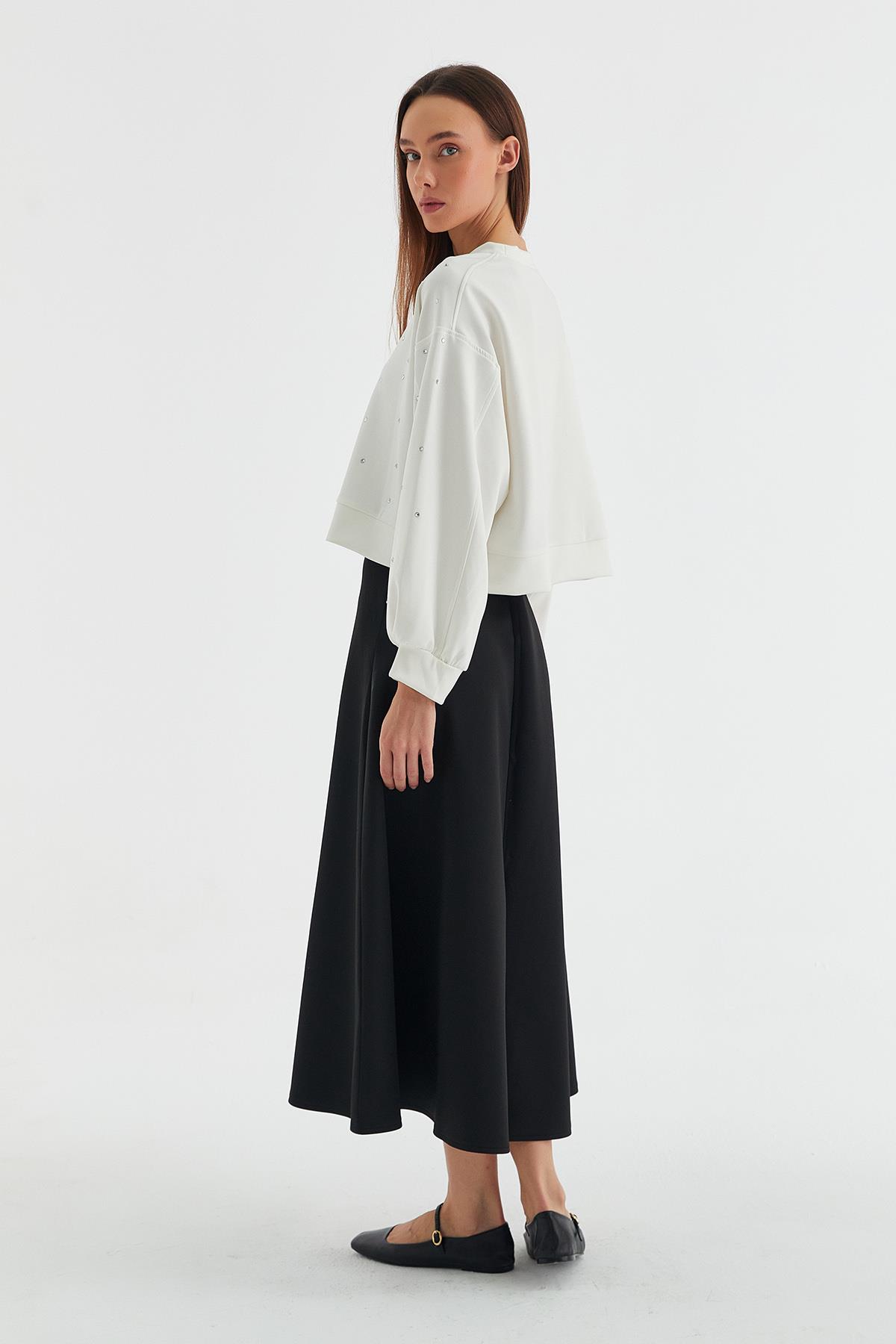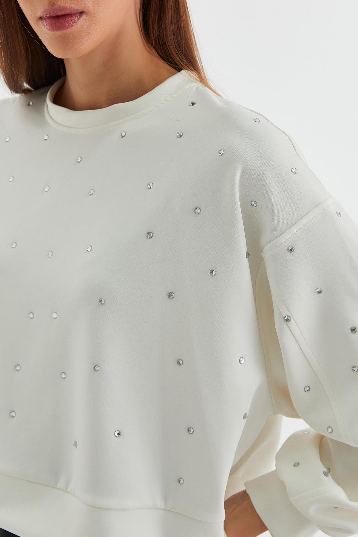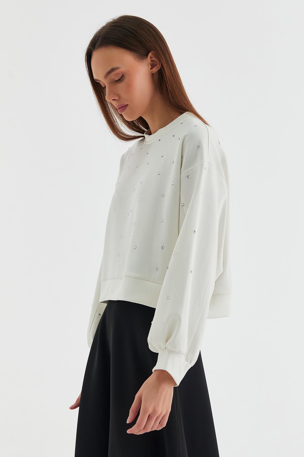 Taşlı Scuba Sweatshirt Ekru (HN8926_019)