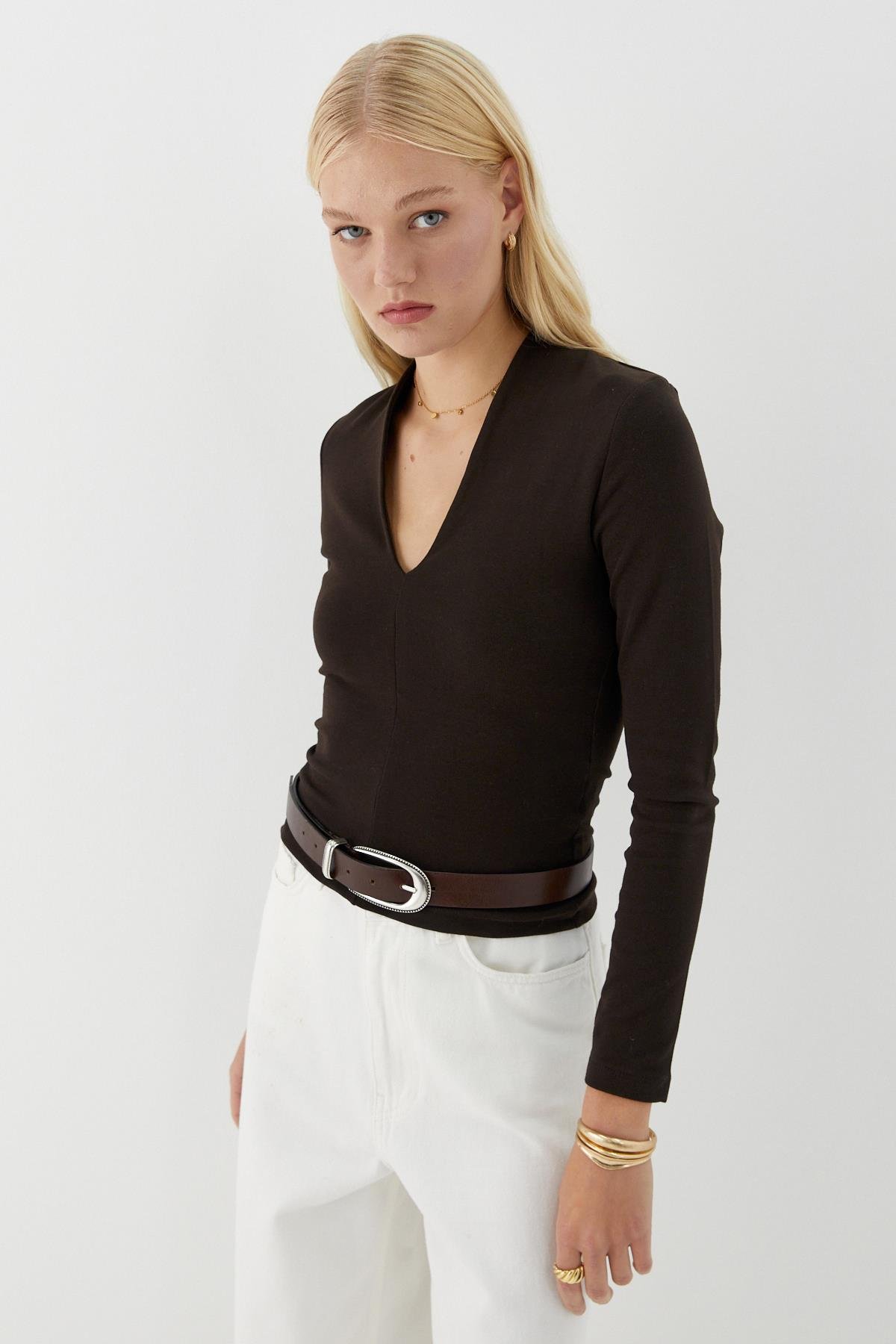 V Yaka Uzun Kollu Body Acı Kahve (ST1036_056)