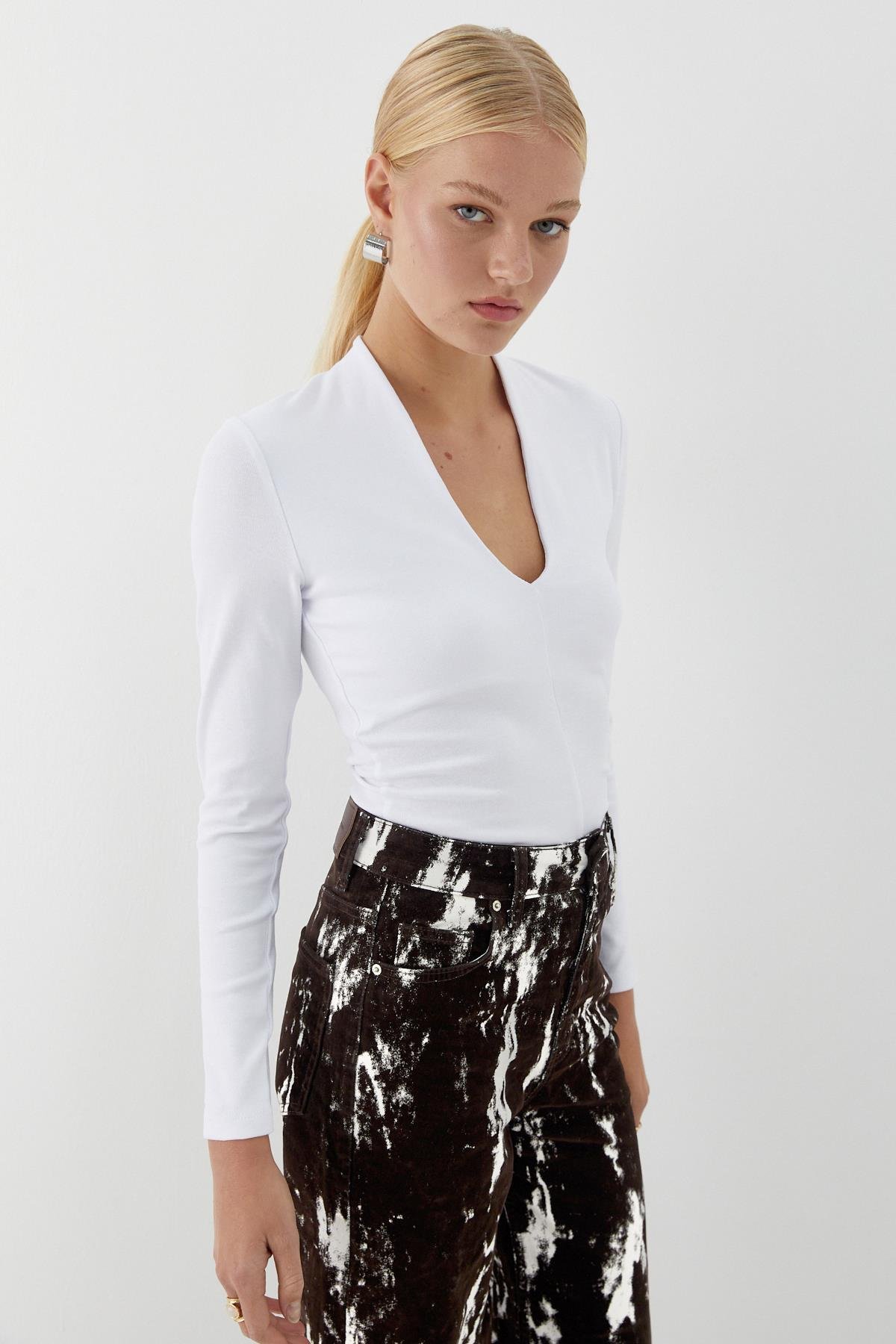 V Yaka Uzun Kollu Body Beyaz (ST1036_005)