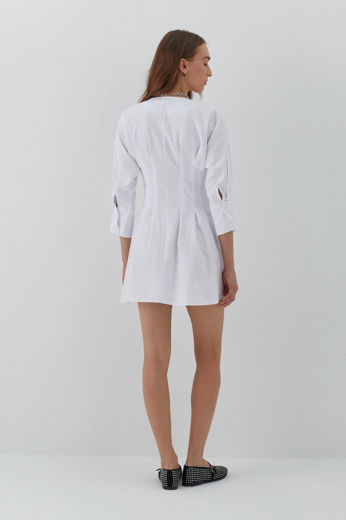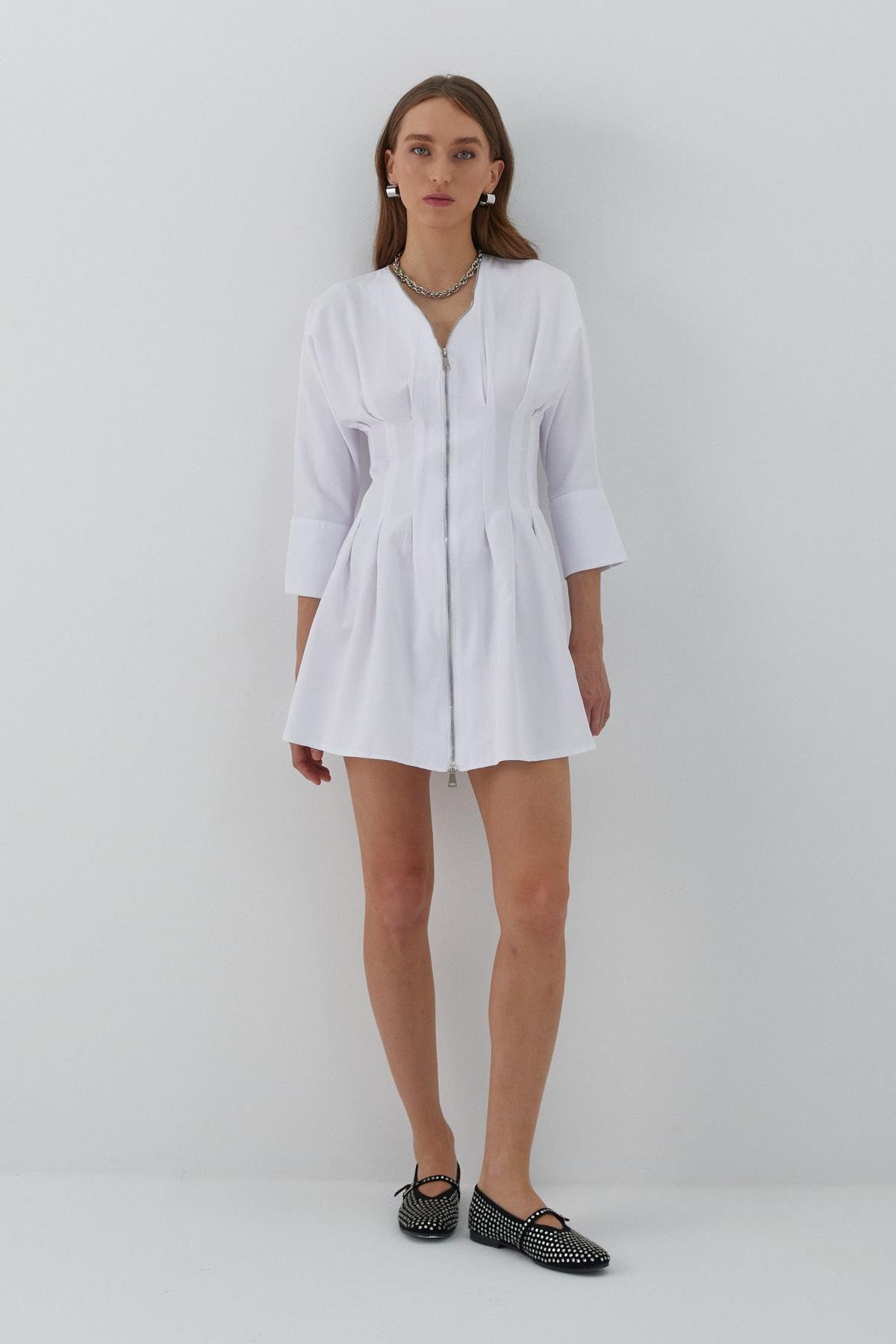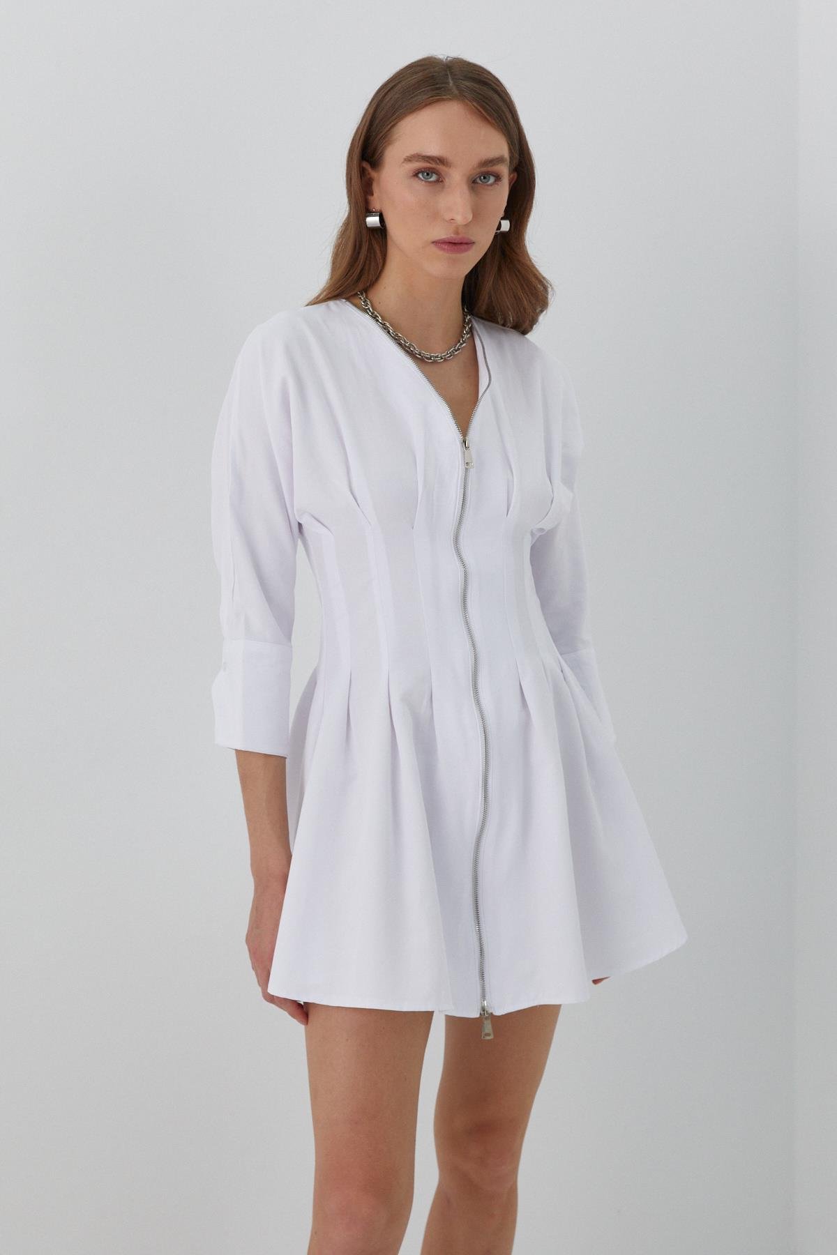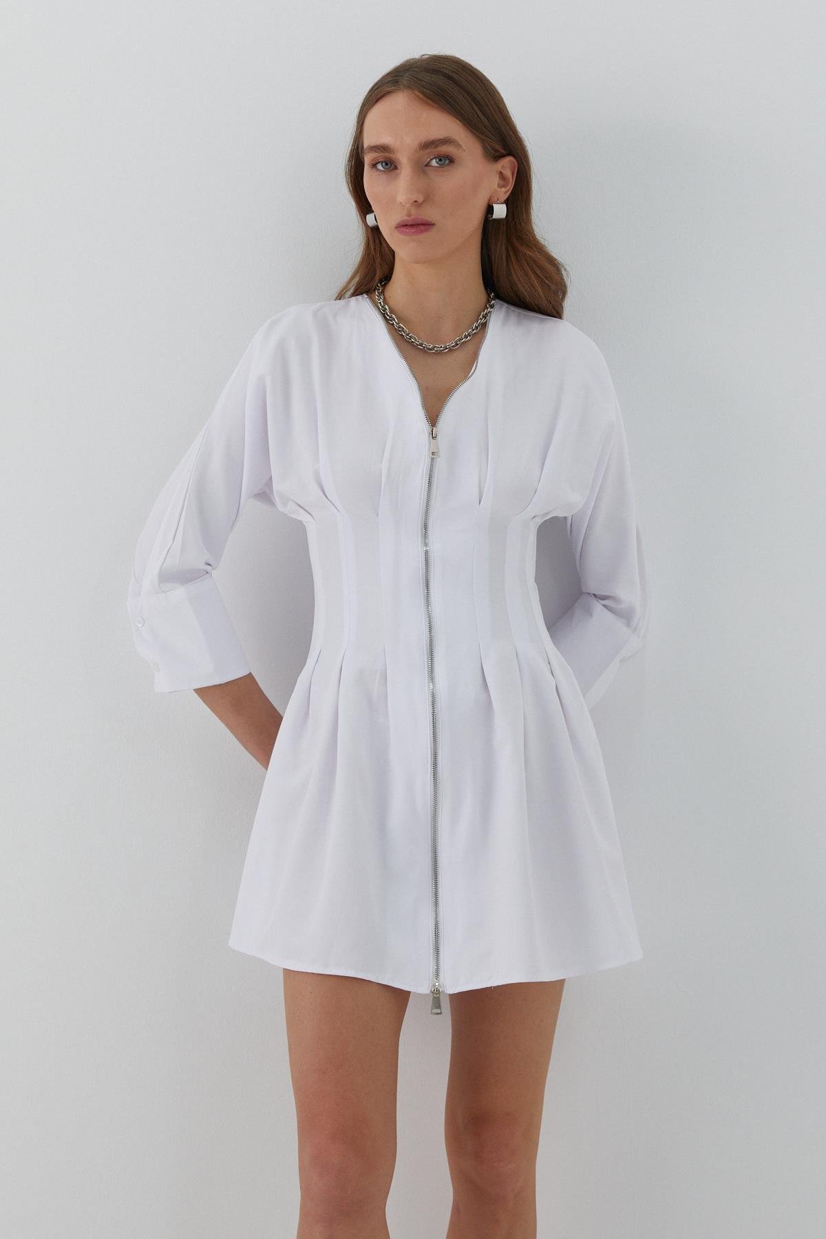 Uzun Kollu Fermuarlı Elbise Beyaz (MY4009_005)