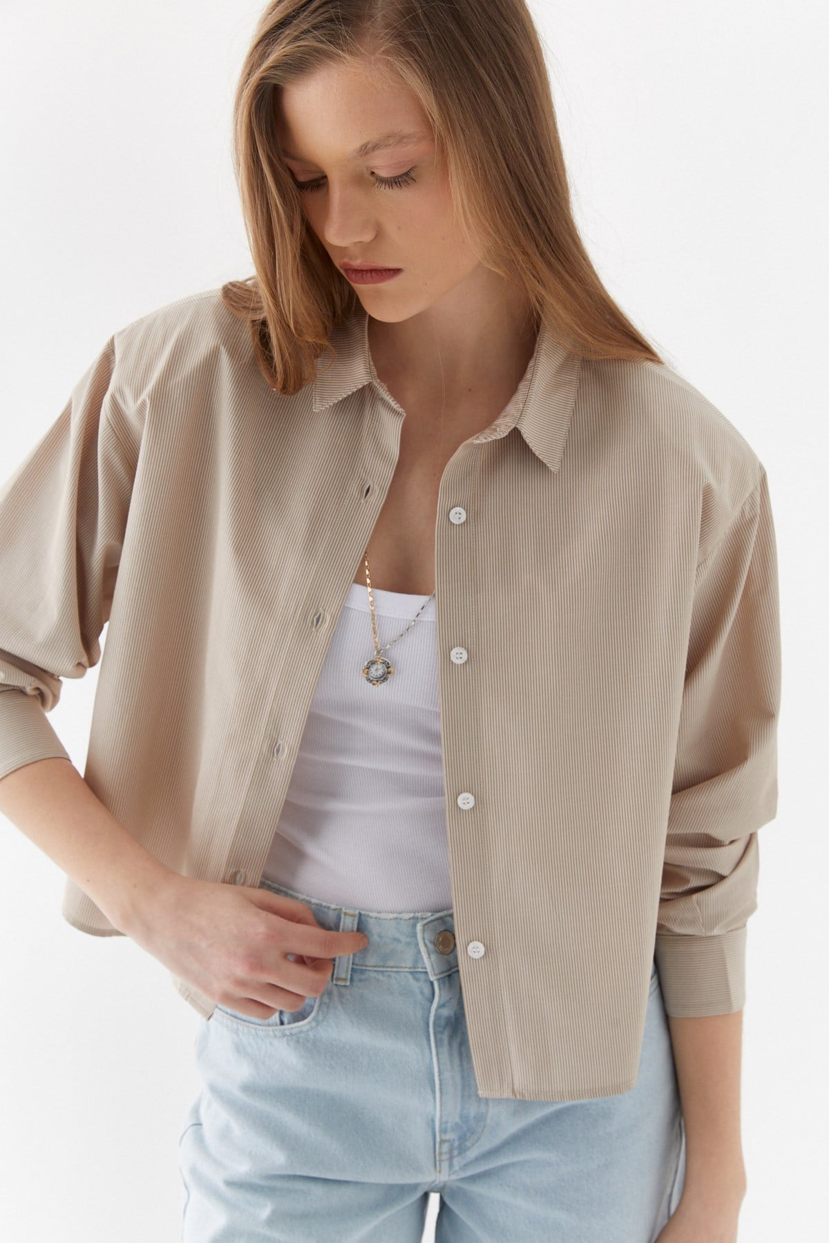 Vatkalı Çizgili Gömlek Bej (MLSS26GML0010_004)