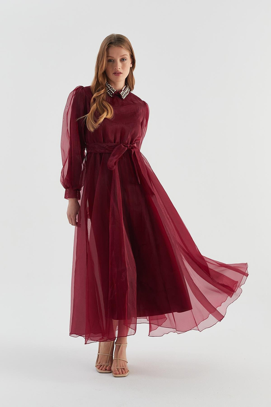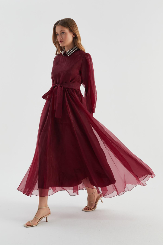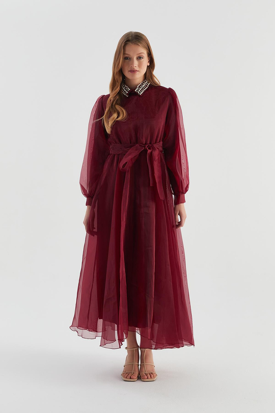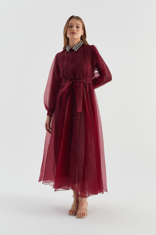 Yakası İnci Taşlı Abiye Bordo (TN86-4238_033)